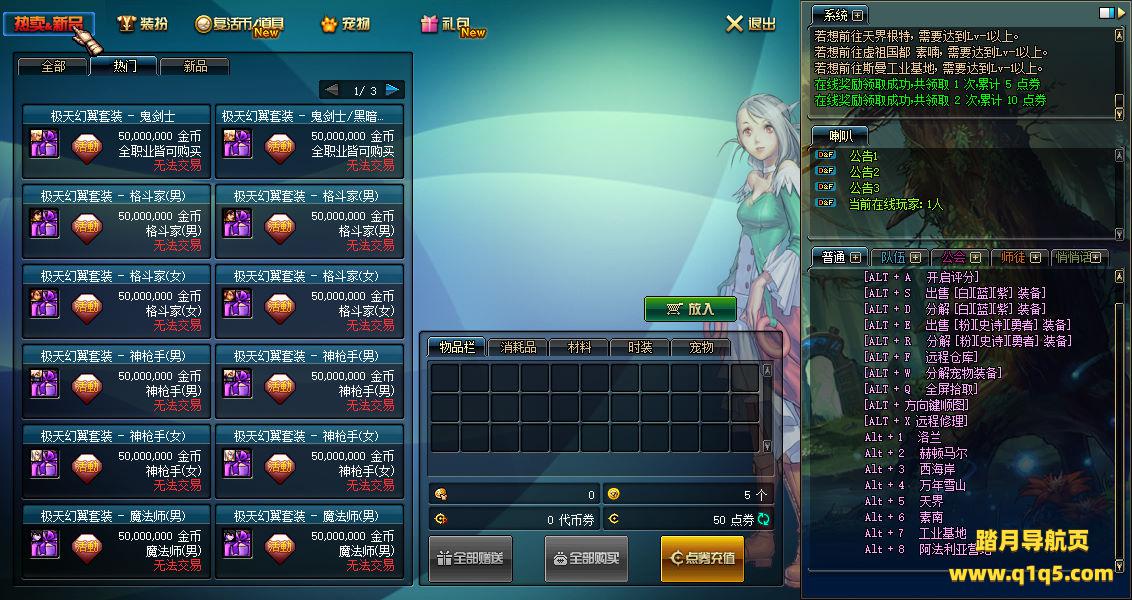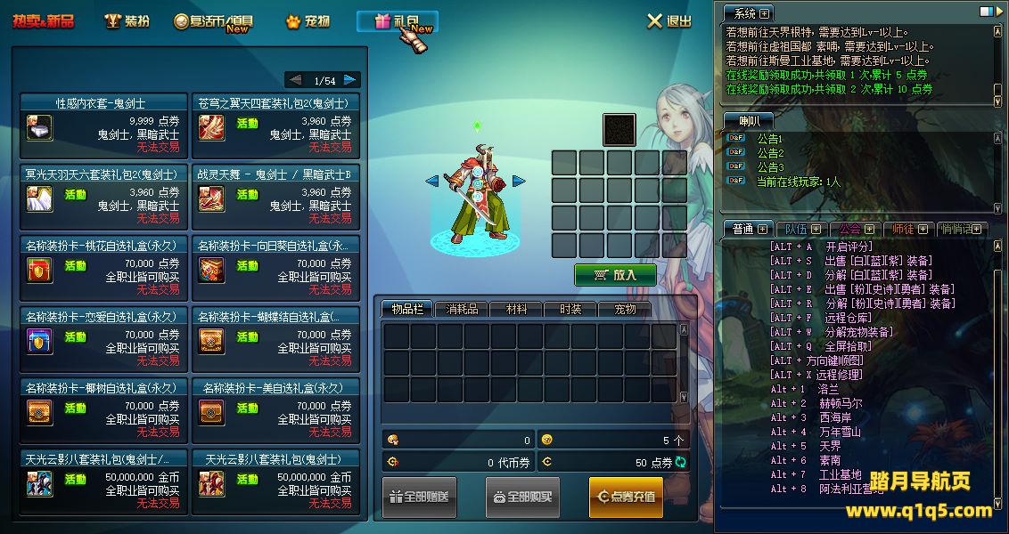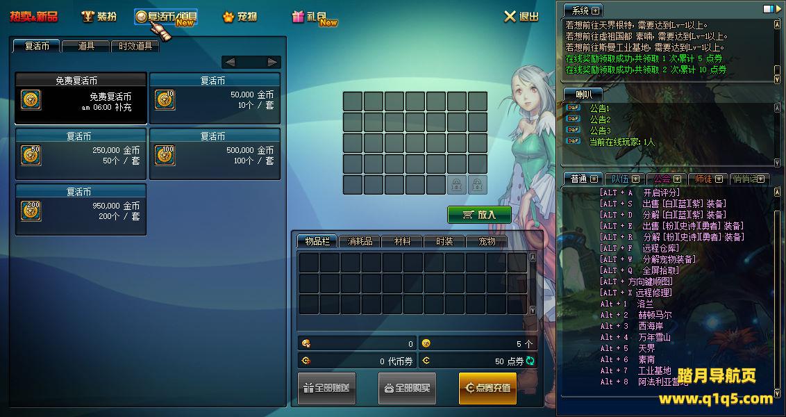 下面我们测试看看游戏里的功能。好了,其他功能就自行测试吧。更多的游戏资源可以访问www.q1q5.com下载,我们每款游戏资源均单独制作了独立的视频架设教程,让小白也可以快速上手游戏架设,快来体验自己做GM的乐趣吧!