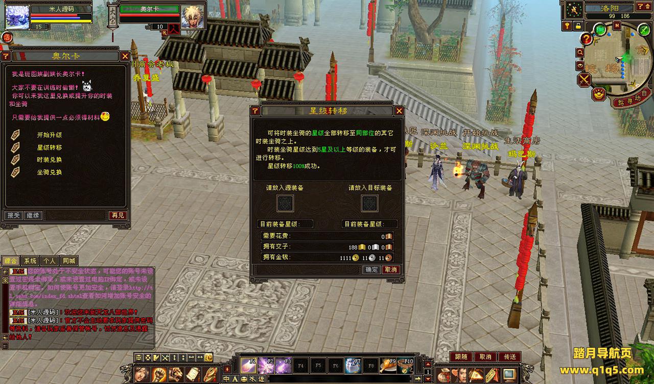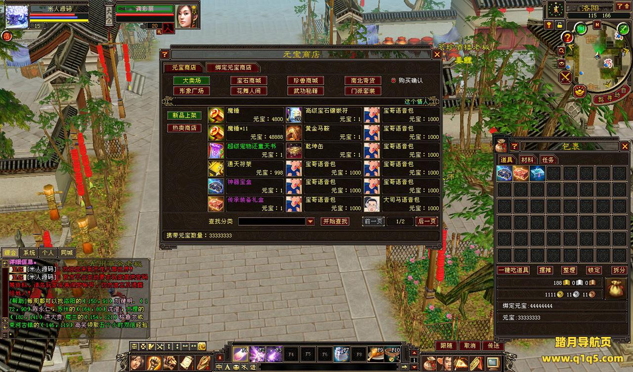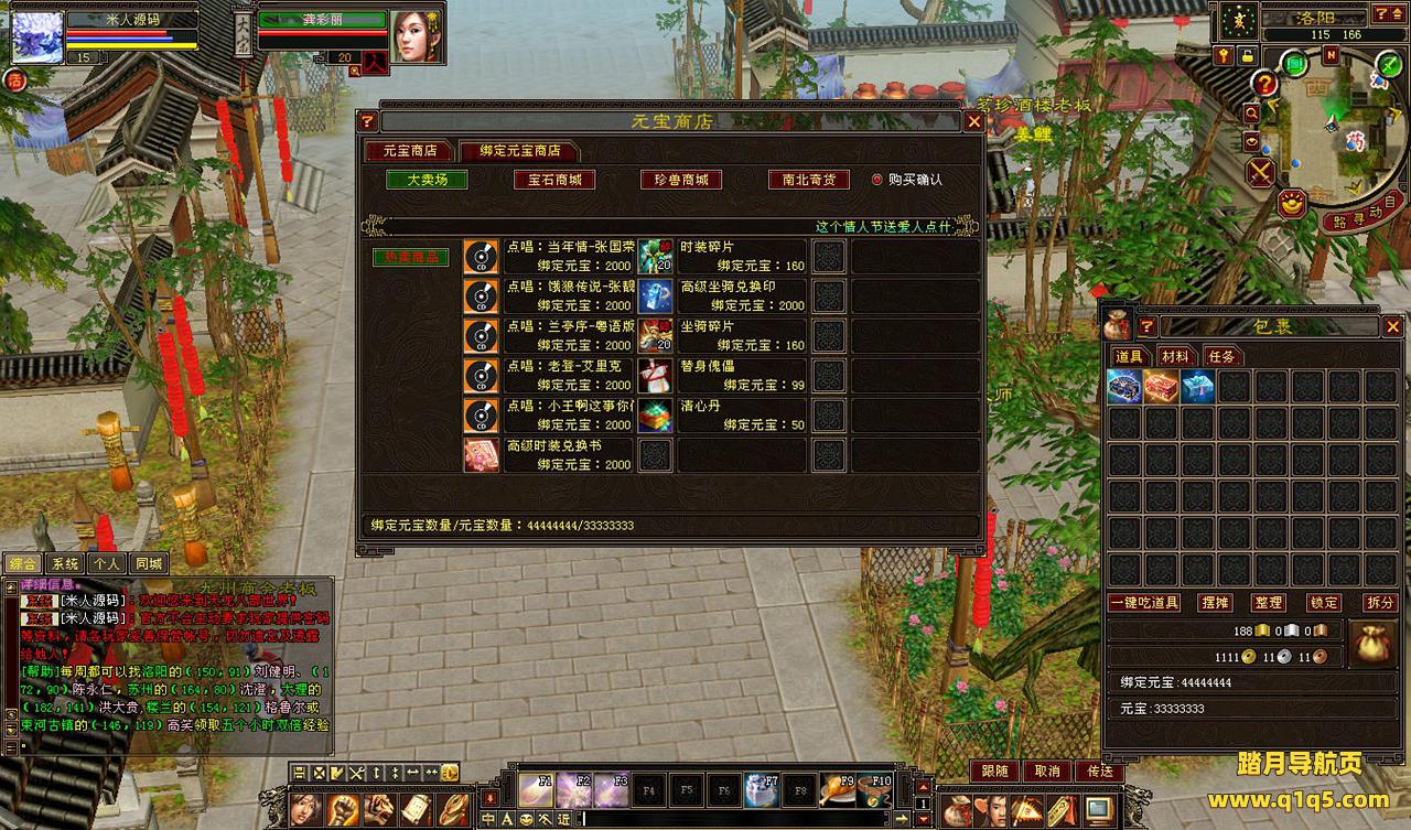 下面我们来测试下游戏里的功能看看。好了,其他功能就自行测试吧。更多的游戏资源可以访问www.q1q5.com下载,我们每款游戏资源均单独制作了独立的视频架设教程,让小白也可以快速上手游戏架设,快来体验自己做GM的乐趣吧!