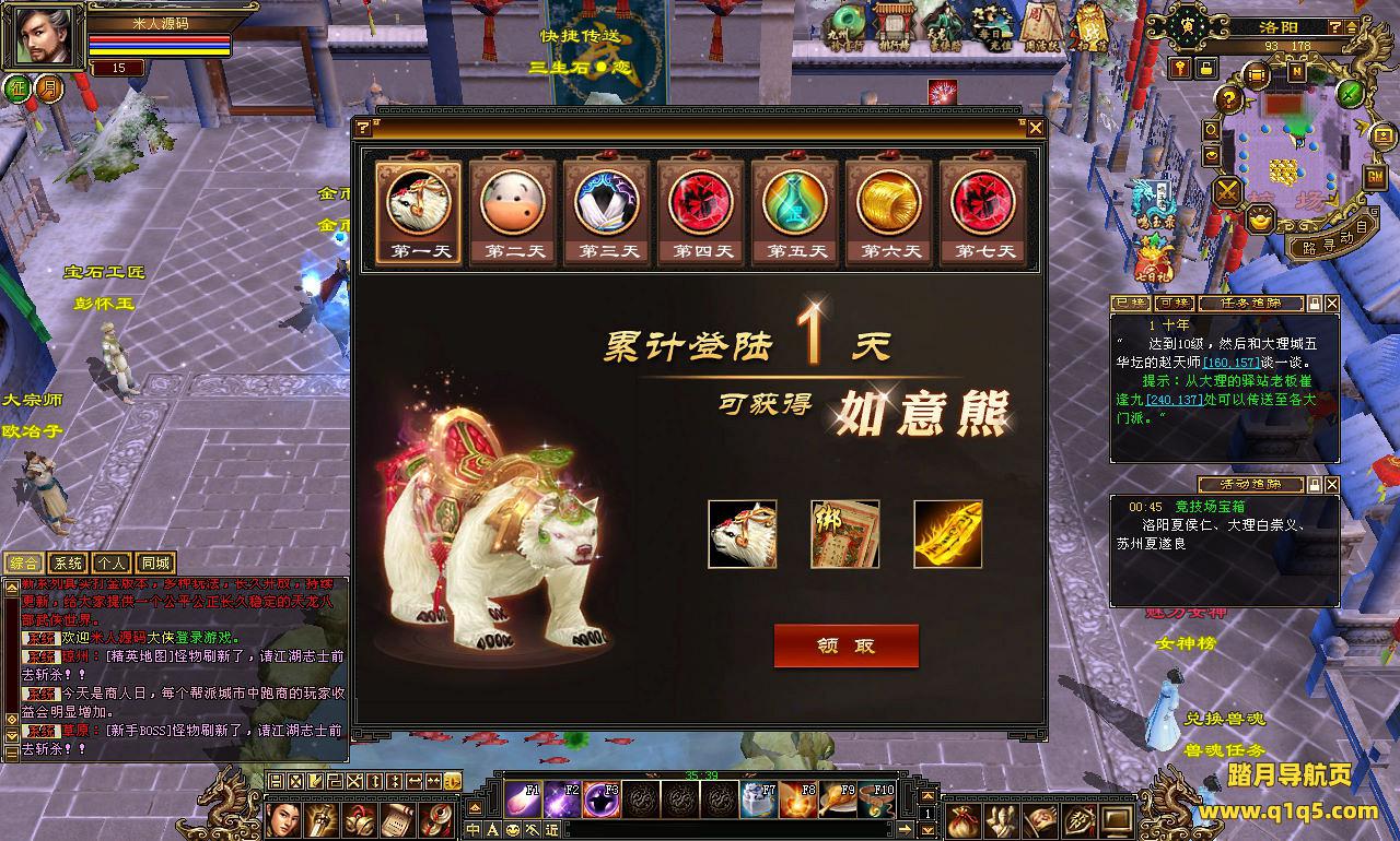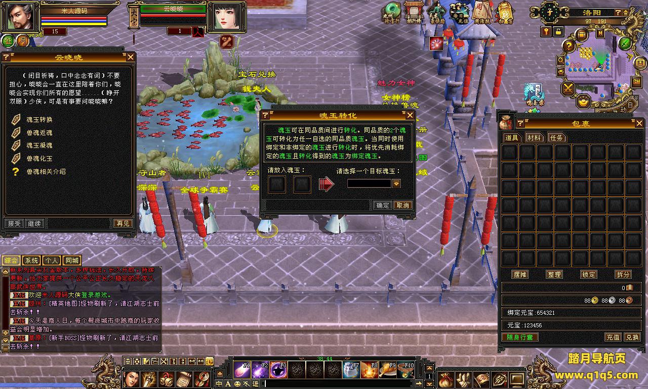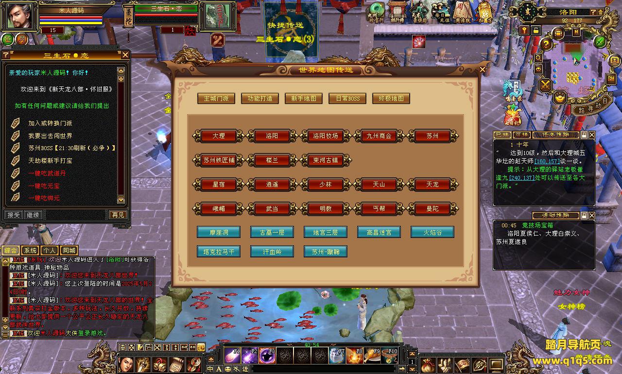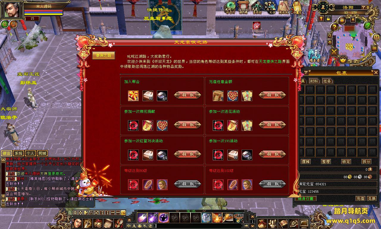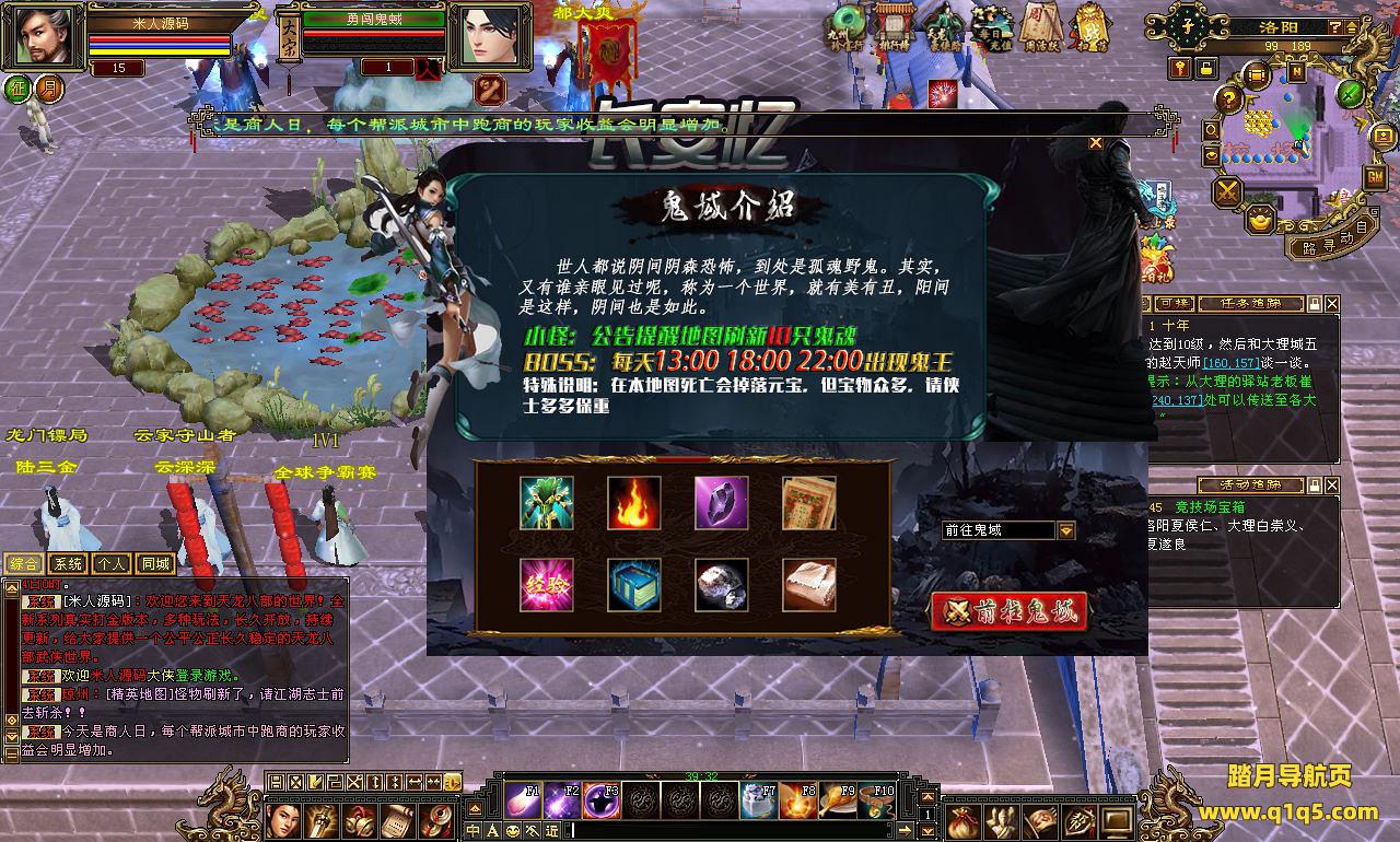 下面我们来测试下游戏里的功能看看。好了。其他功能就自行测试吧。更多的游戏资源可以访问www.q1q5.com下载,我们每款游戏资源均单独制作了独立的视频架设教程,让小白也可以快速上手游戏架设,快来体验自己做GM的乐趣吧!