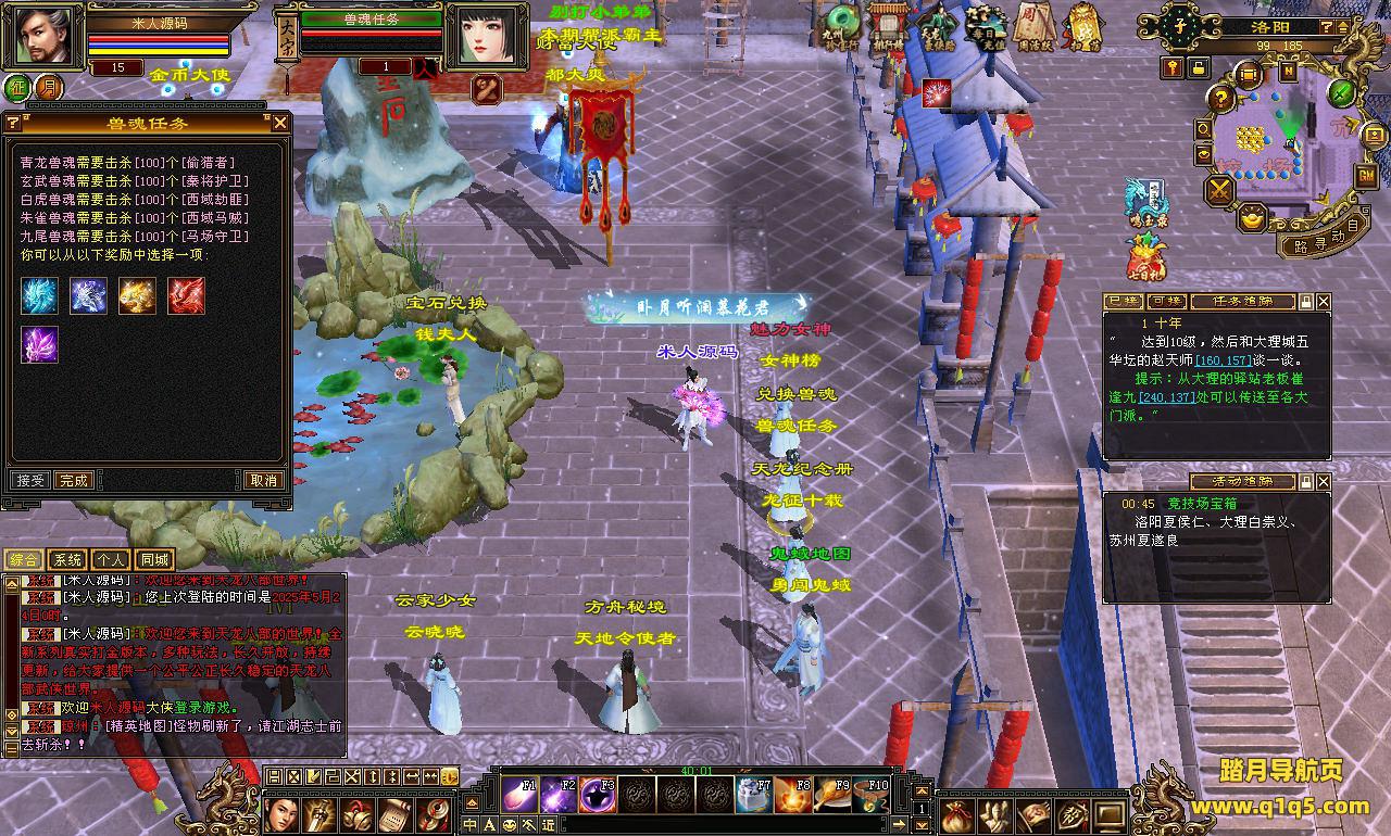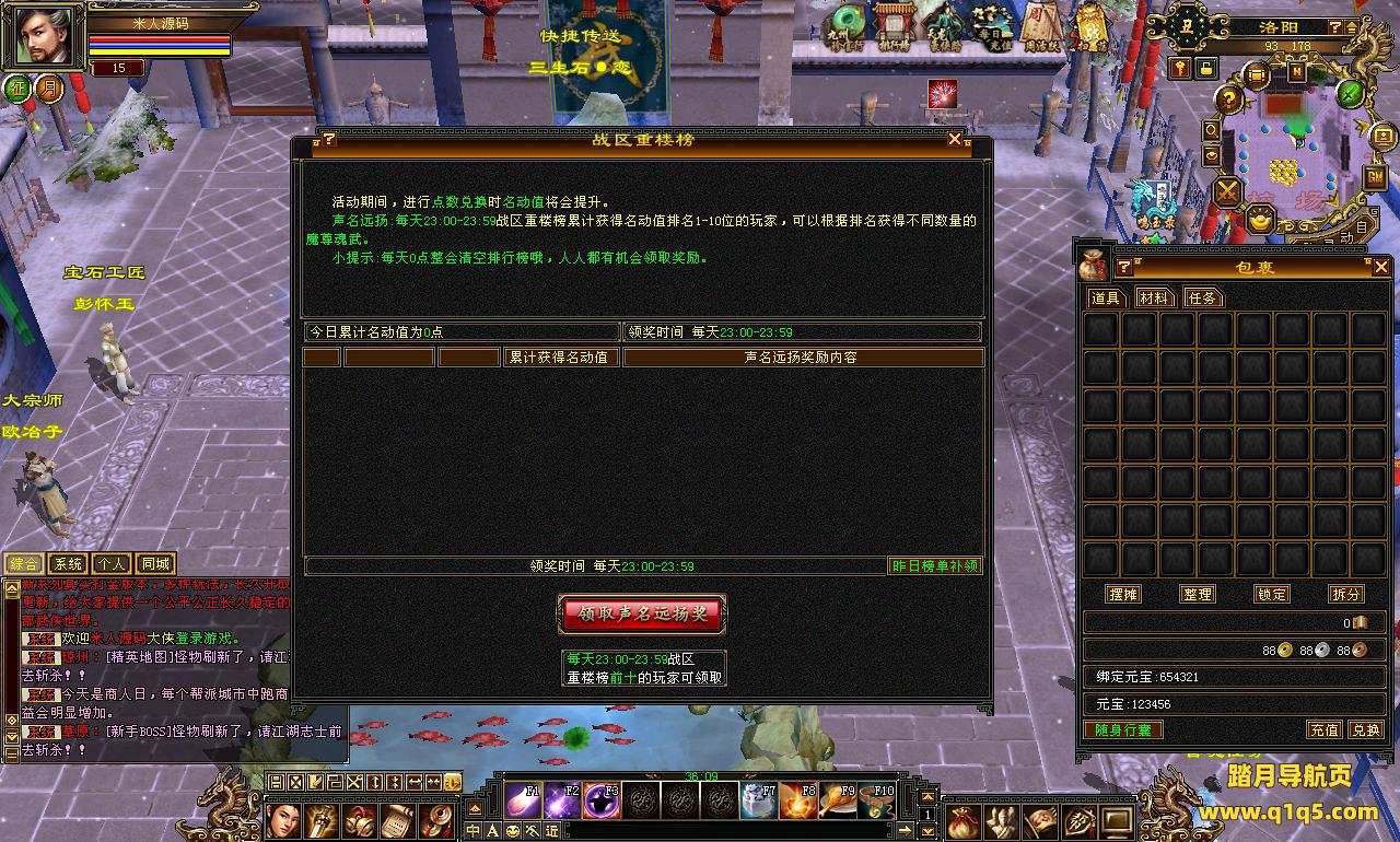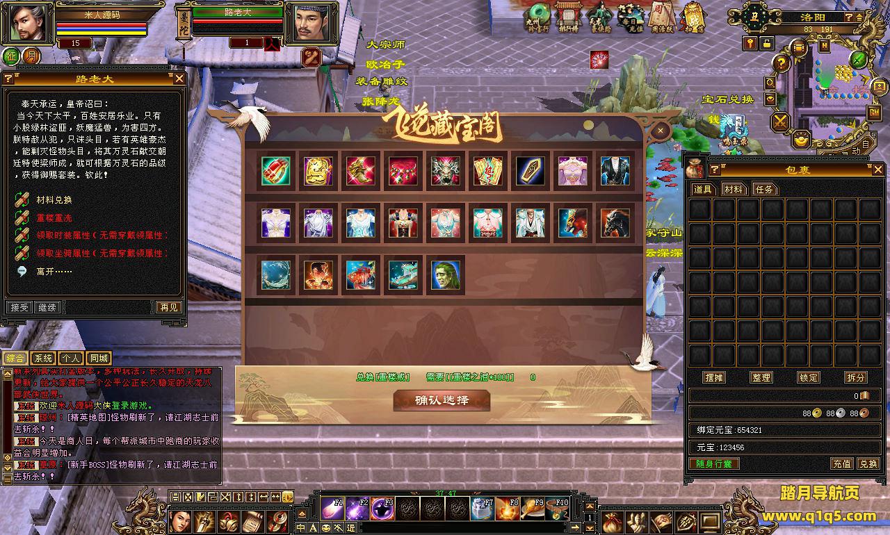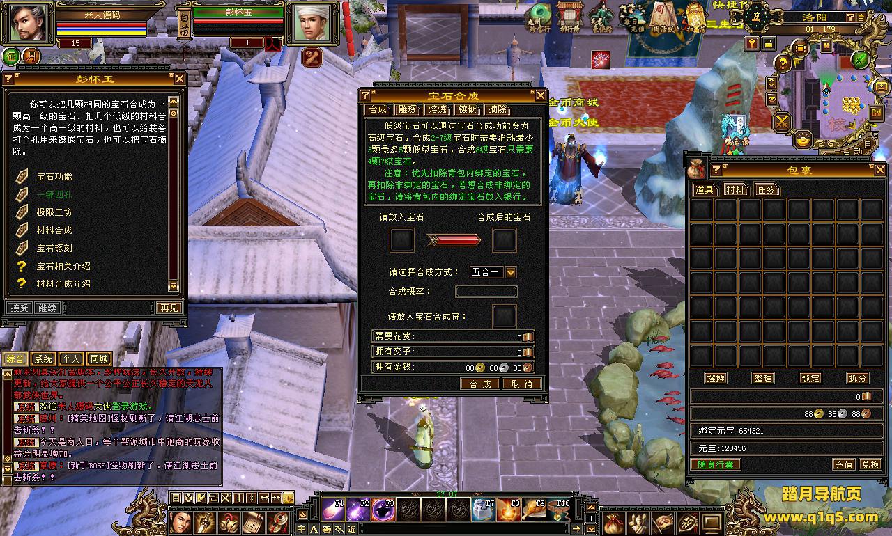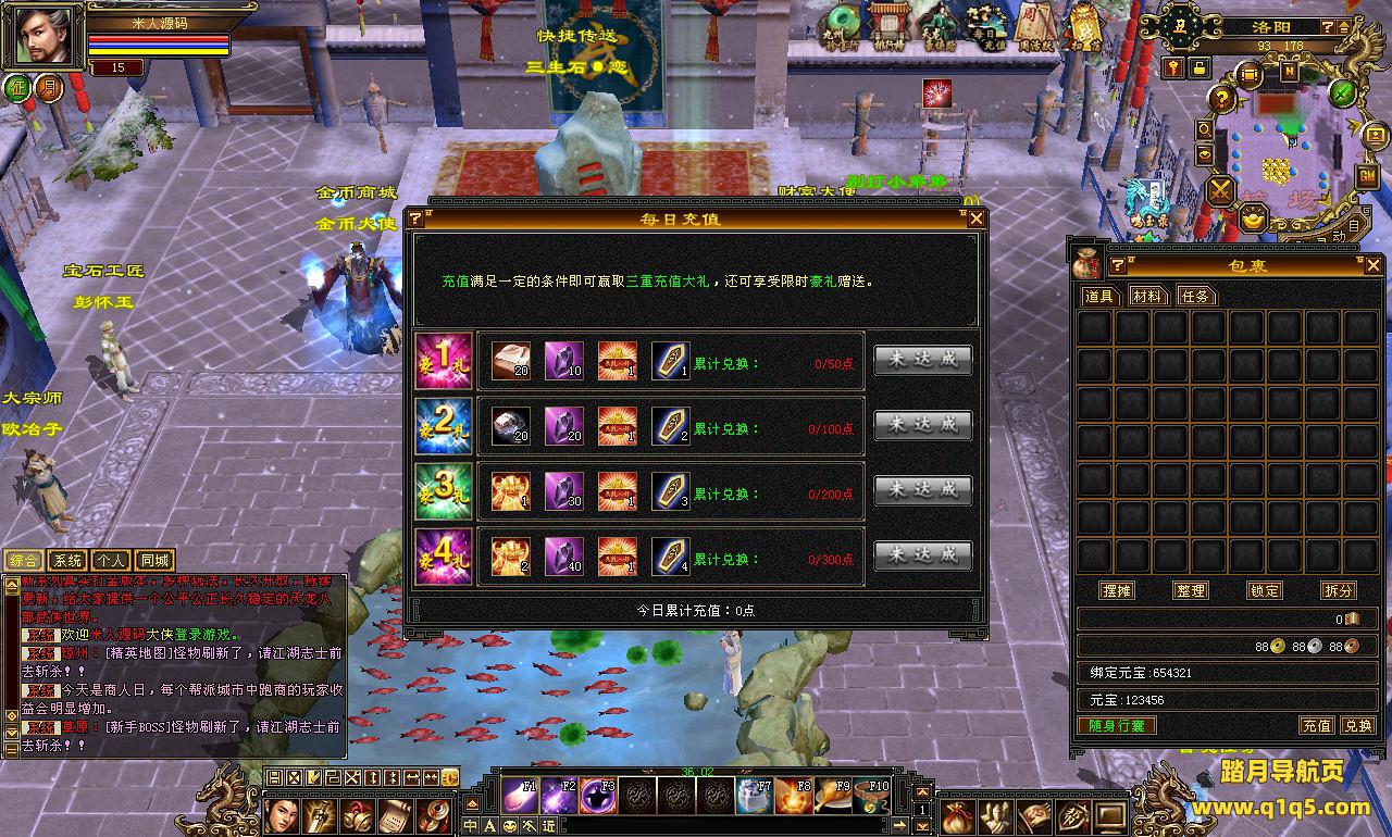 下面我们来测试下游戏里的功能看看。好了。其他功能就自行测试吧。更多的游戏资源可以访问www.q1q5.com下载,我们每款游戏资源均单独制作了独立的视频架设教程,让小白也可以快速上手游戏架设,快来体验自己做GM的乐趣吧!