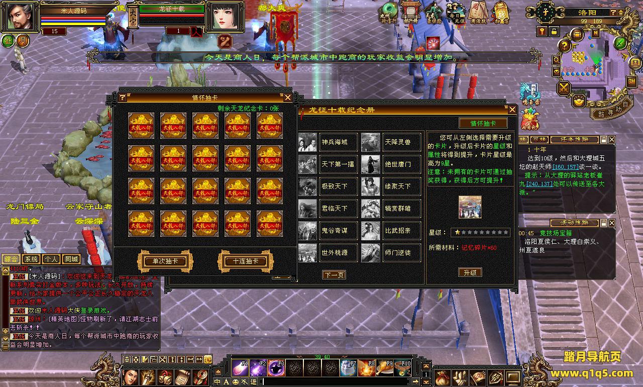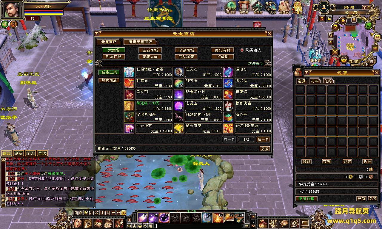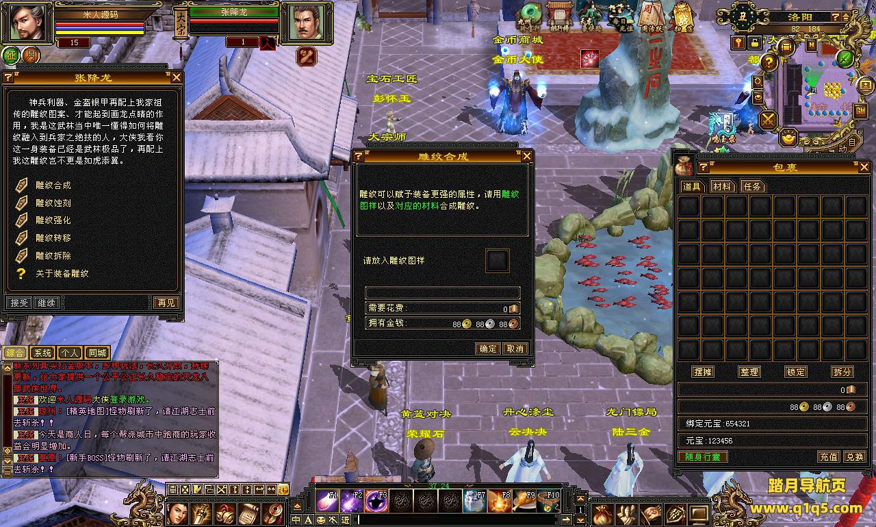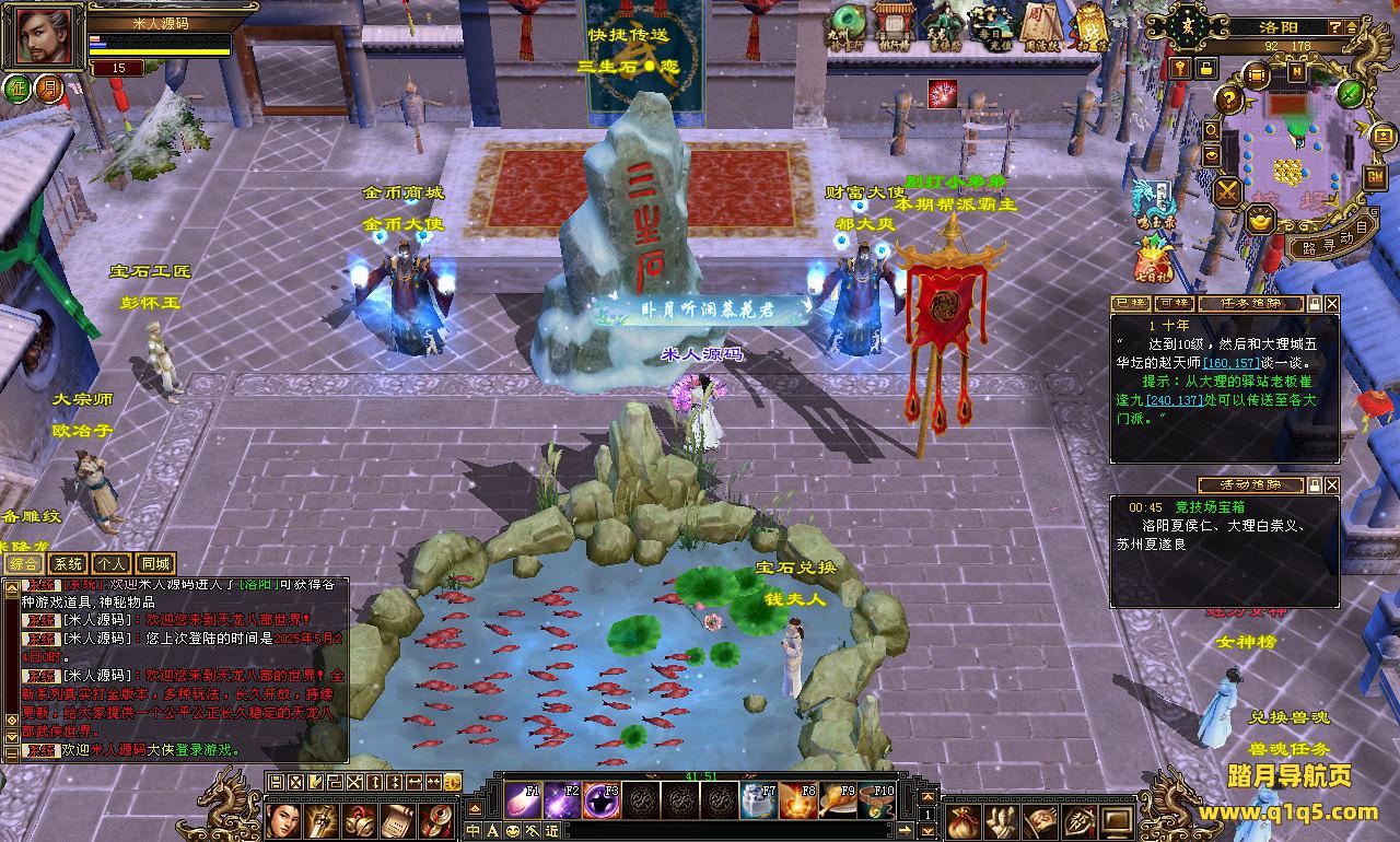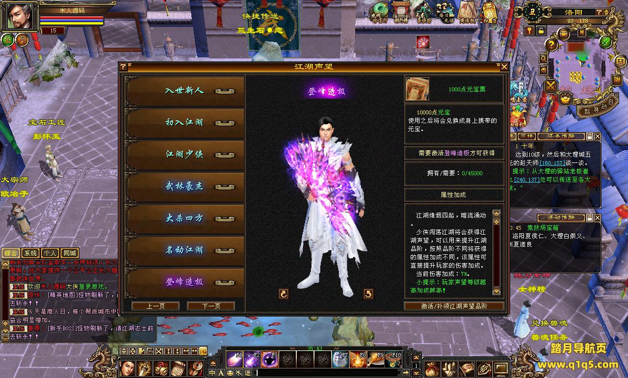 下面我们来测试下游戏里的功能看看。好了。其他功能就自行测试吧。更多的游戏资源可以访问www.q1q5.com下载,我们每款游戏资源均单独制作了独立的视频架设教程,让小白也可以快速上手游戏架设,快来体验自己做GM的乐趣吧!