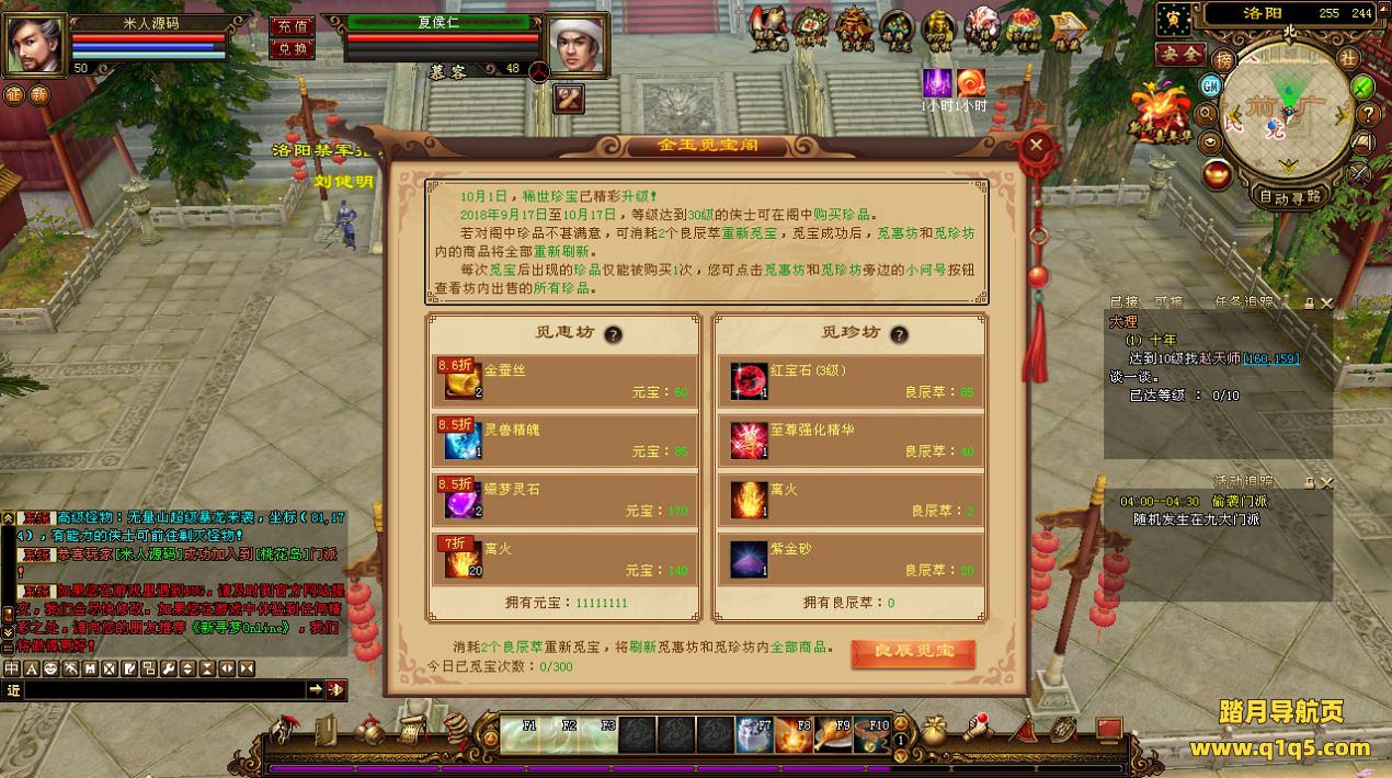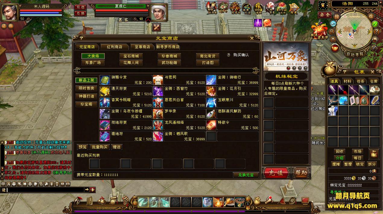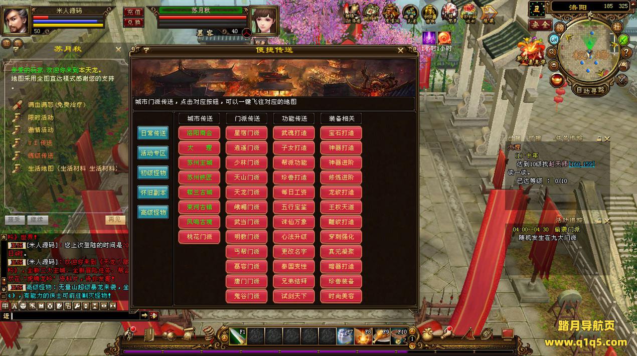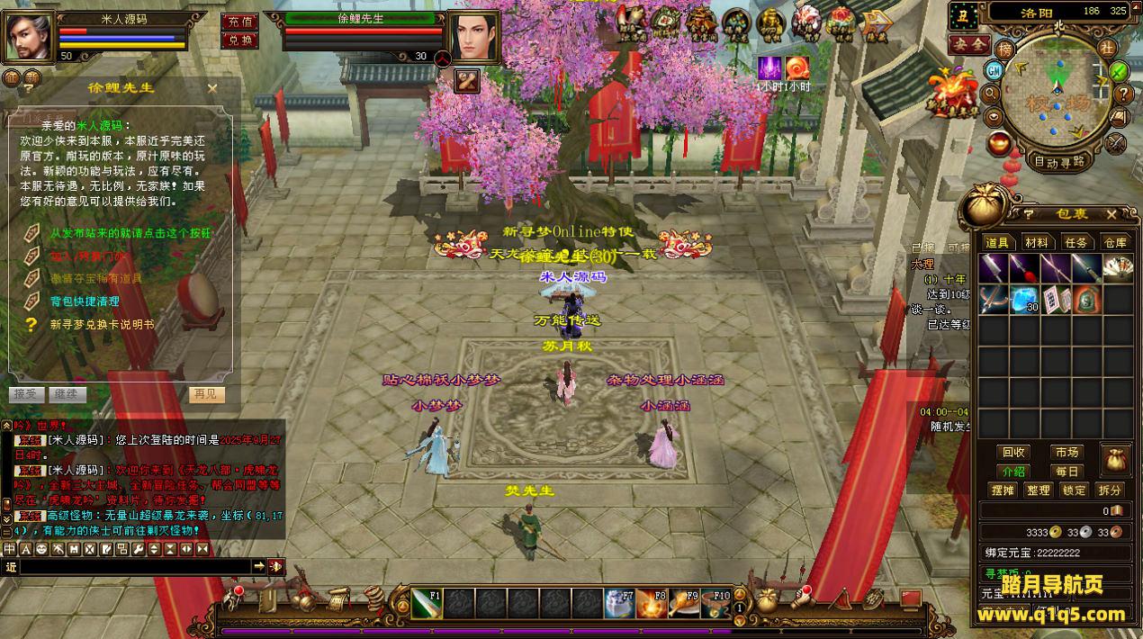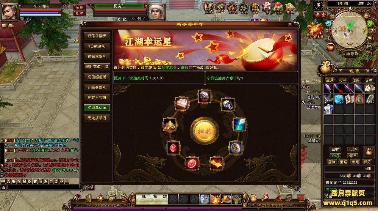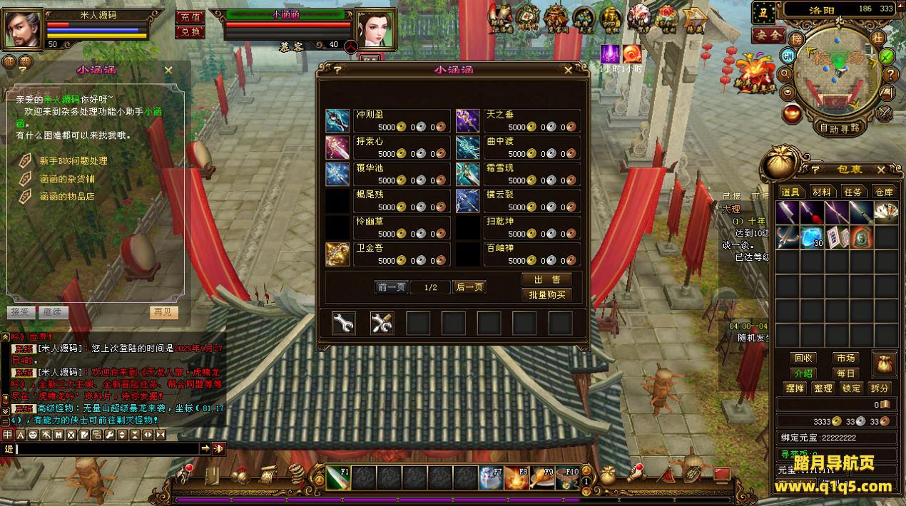 下面我们来测试下游戏里的功能看看。好了,其他功能就自行测试吧。更多的游戏资源可以访问www.q1q5.com下载,我们每款游戏资源均单独制作了独立的视频架设教程,让小白也可以快速上手游戏架设,快来体验自己做GM的乐趣吧!
