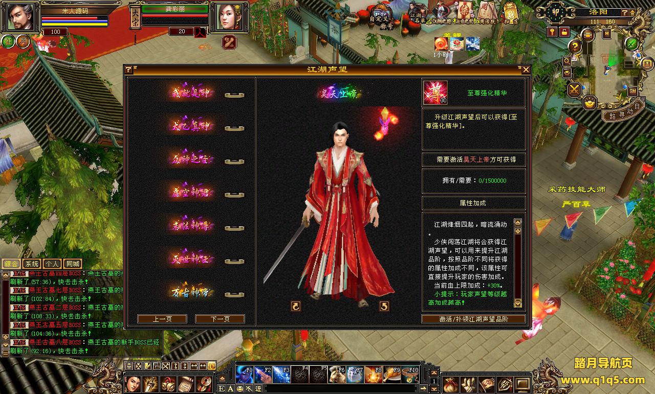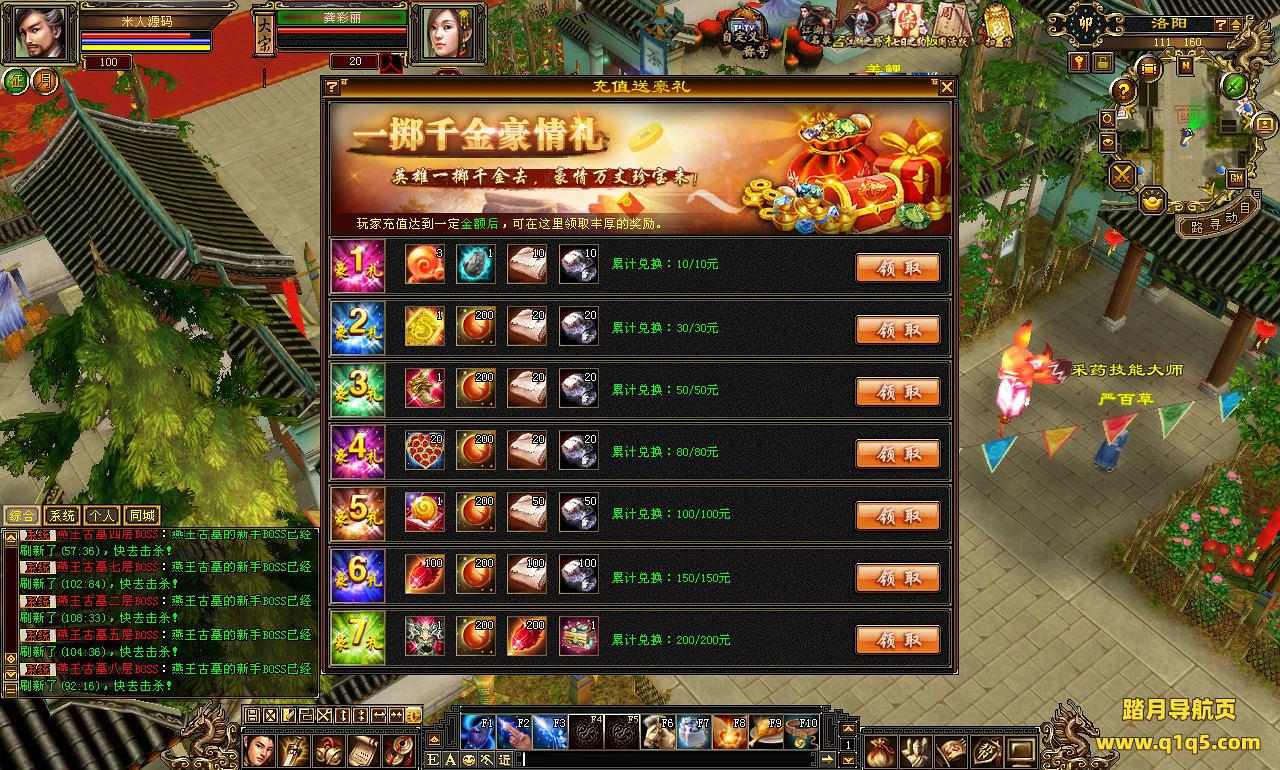 下面我们来测试下游戏里的功能看看。我们用GM工具提升点等级。好了。其他功能自行测试吧。更多的游戏资源可以访问www.q1q5.com下载,我们每款游戏资源均单独制作了独立的视频架设教程,让小白也可以快速上手游戏架设,快来体验自己做GM的乐趣吧!