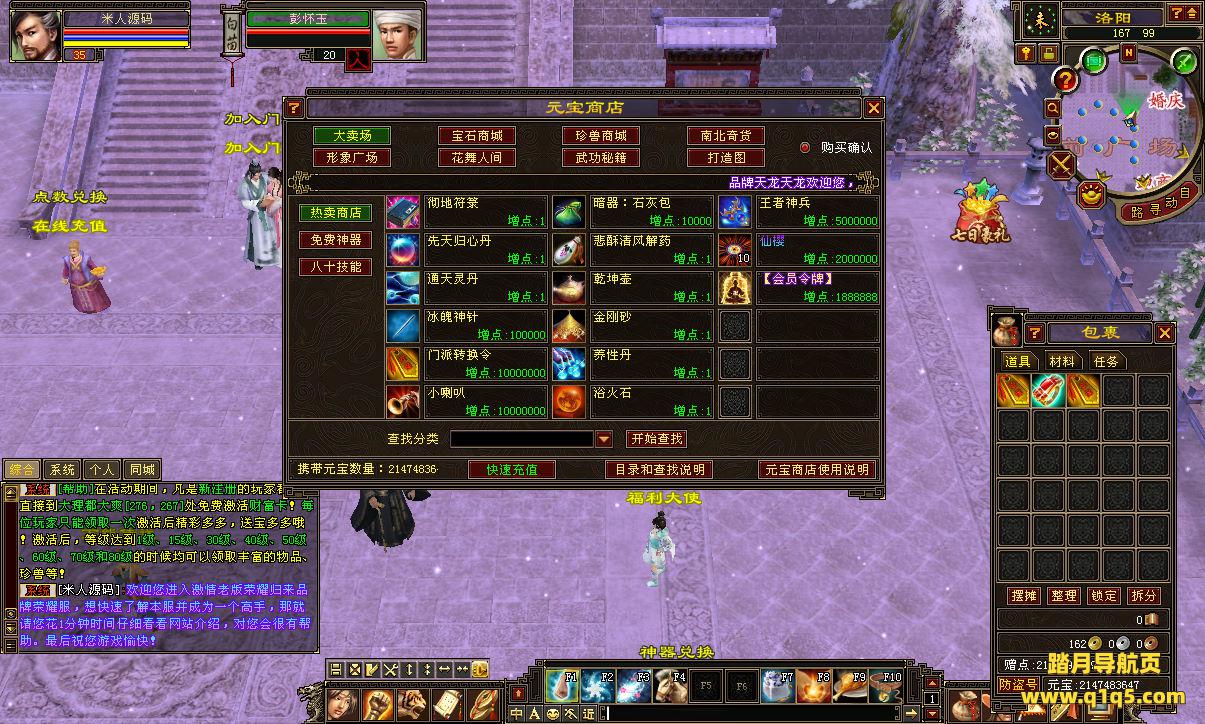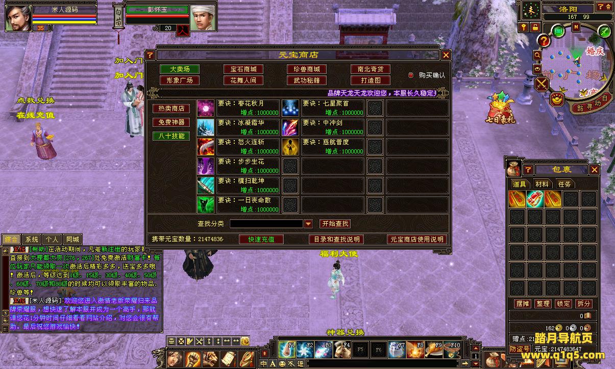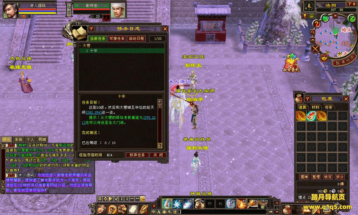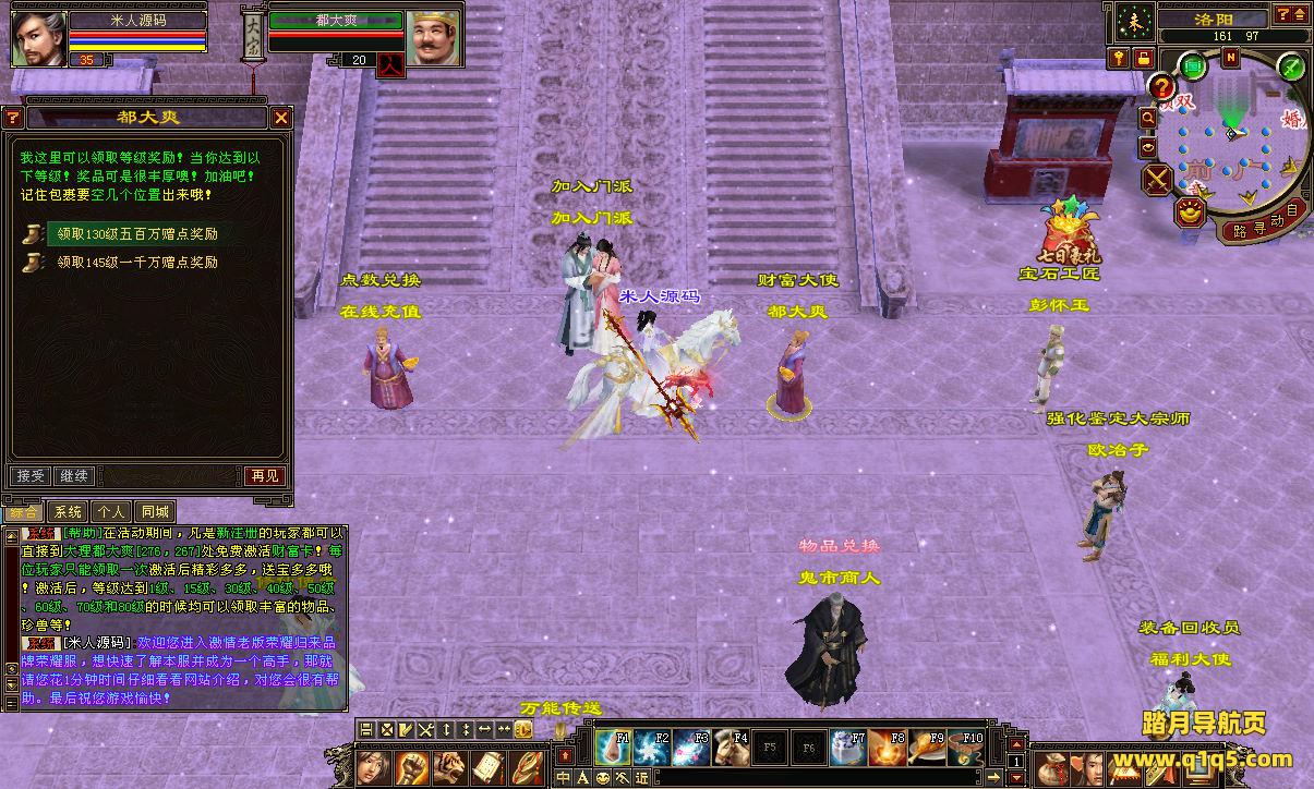 好了,下面我们测试下游戏里的功能看看。好了,其他功能就自行测试吧。更多的游戏资源可以访问www.q1q5.com下载,我们每款游戏资源均单独制作了独立的视频架设教程,让小白也可以快速上手游戏架设,快来体验自己做GM的乐趣吧!