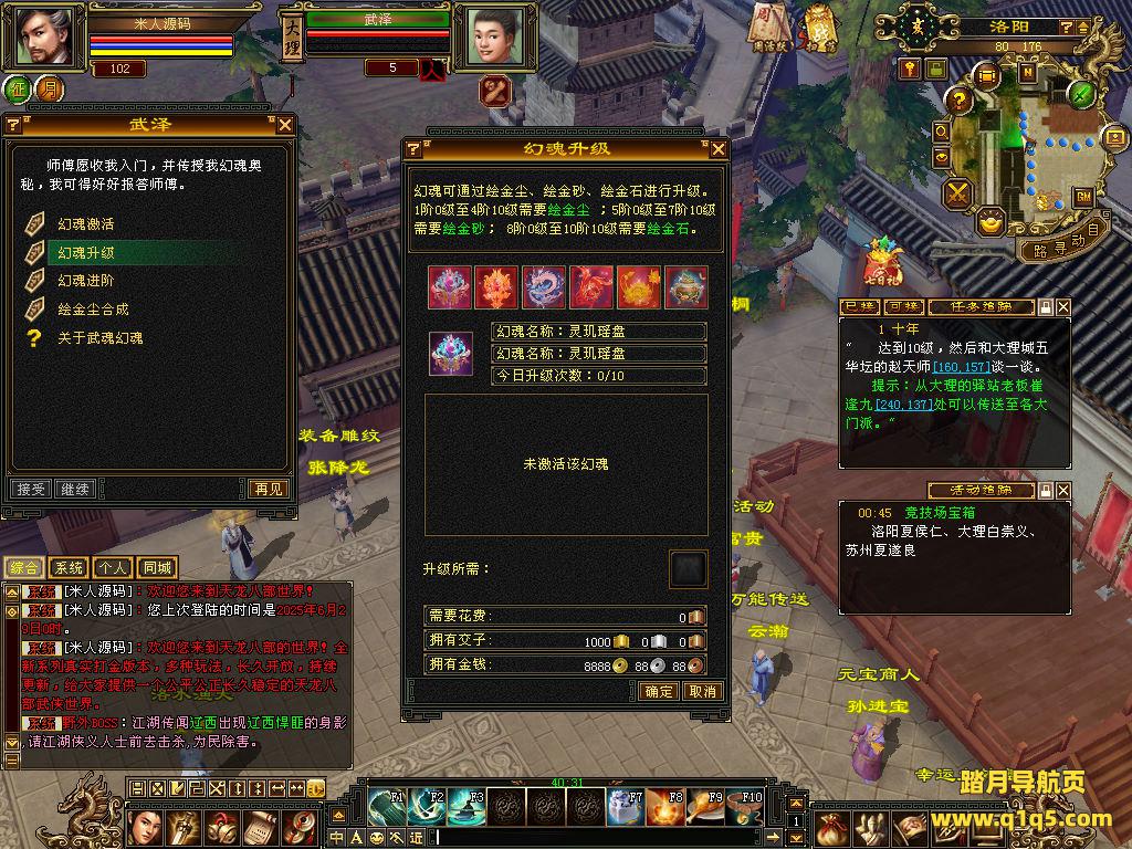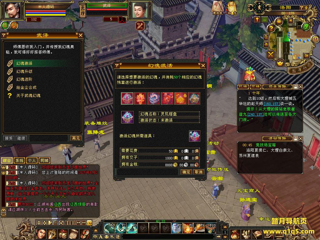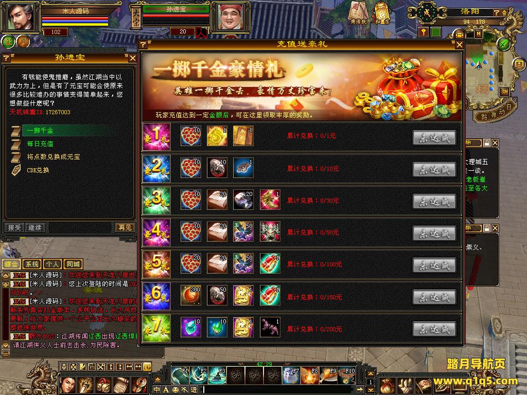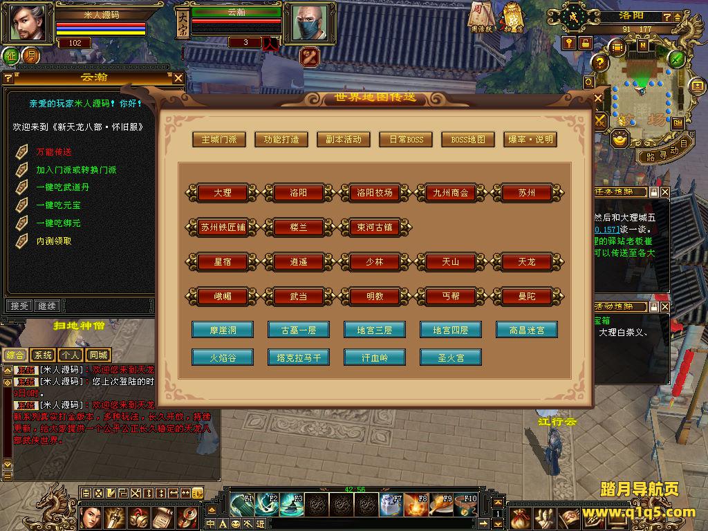 下面我们来测试下游戏里的功能看看。好了,其他功能就自行测试吧。更多的游戏资源可以访问www.q1q5.com下载,我们每款游戏资源均单独制作了独立的视频架设教程,让小白也可以快速上手游戏架设,快来体验自己做GM的乐趣吧!