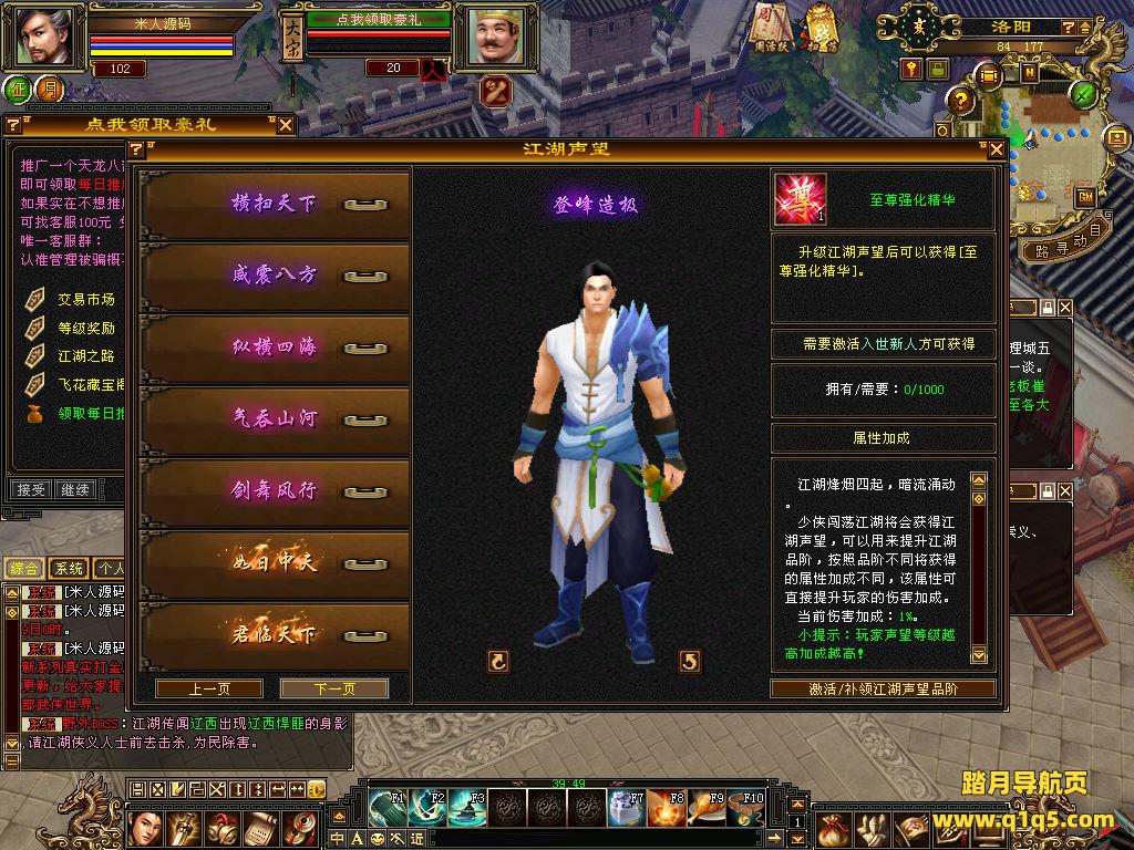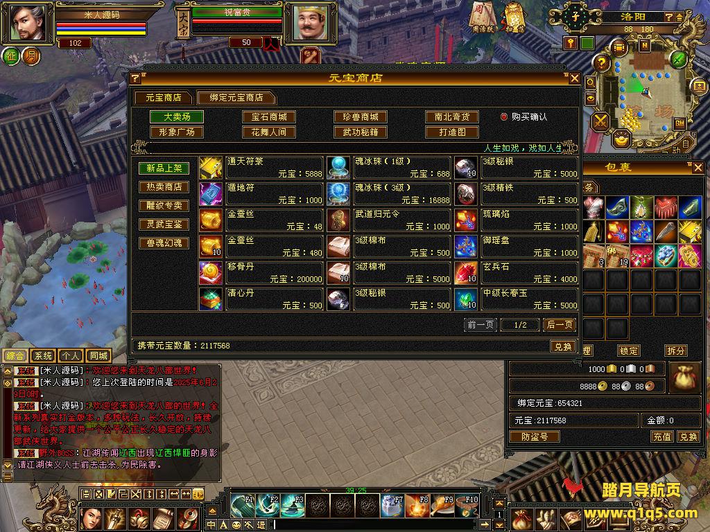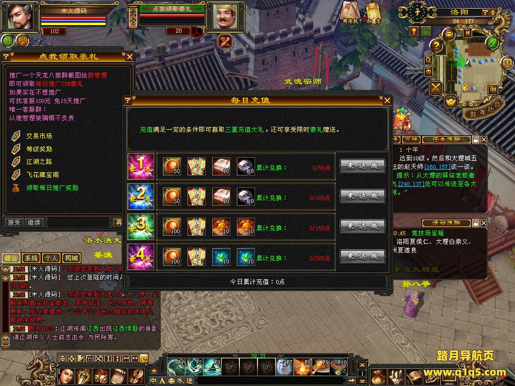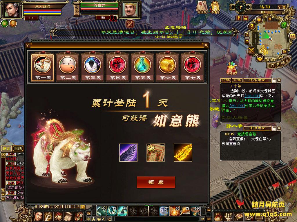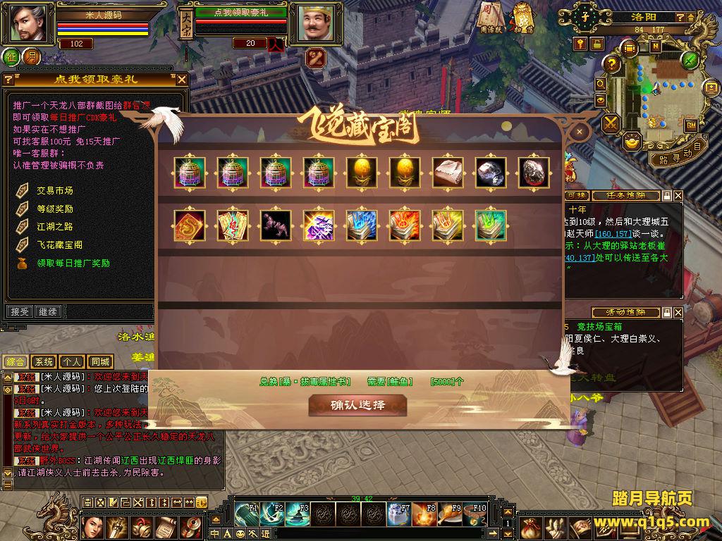 下面我们来测试下游戏里的功能看看。好了,其他功能就自行测试吧。更多的游戏资源可以访问www.q1q5.com下载,我们每款游戏资源均单独制作了独立的视频架设教程,让小白也可以快速上手游戏架设,快来体验自己做GM的乐趣吧!