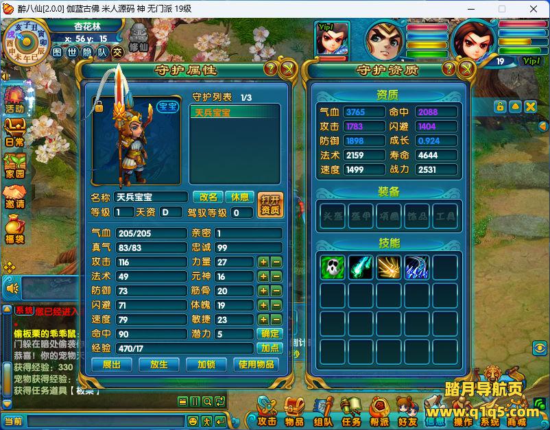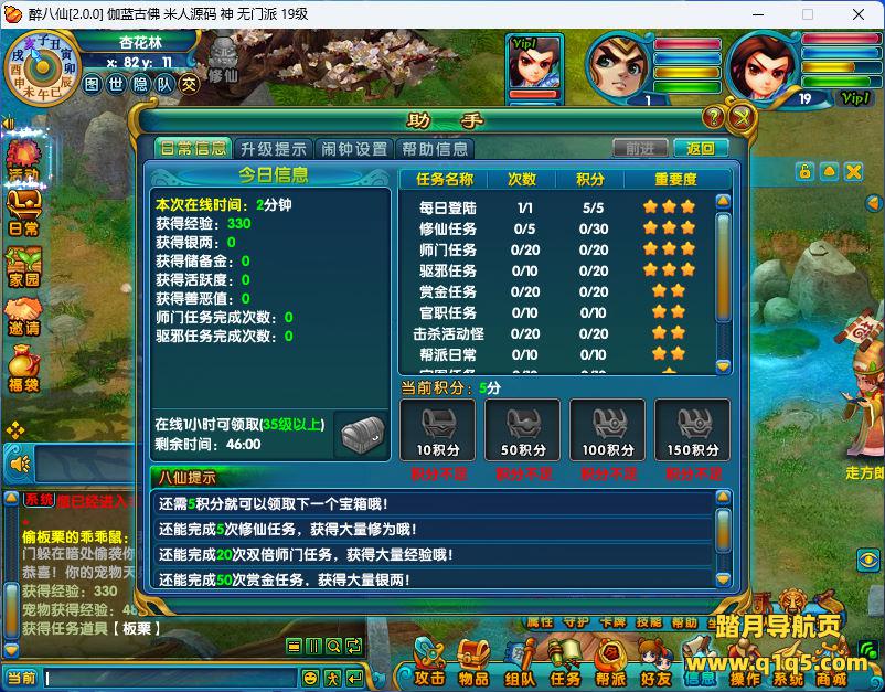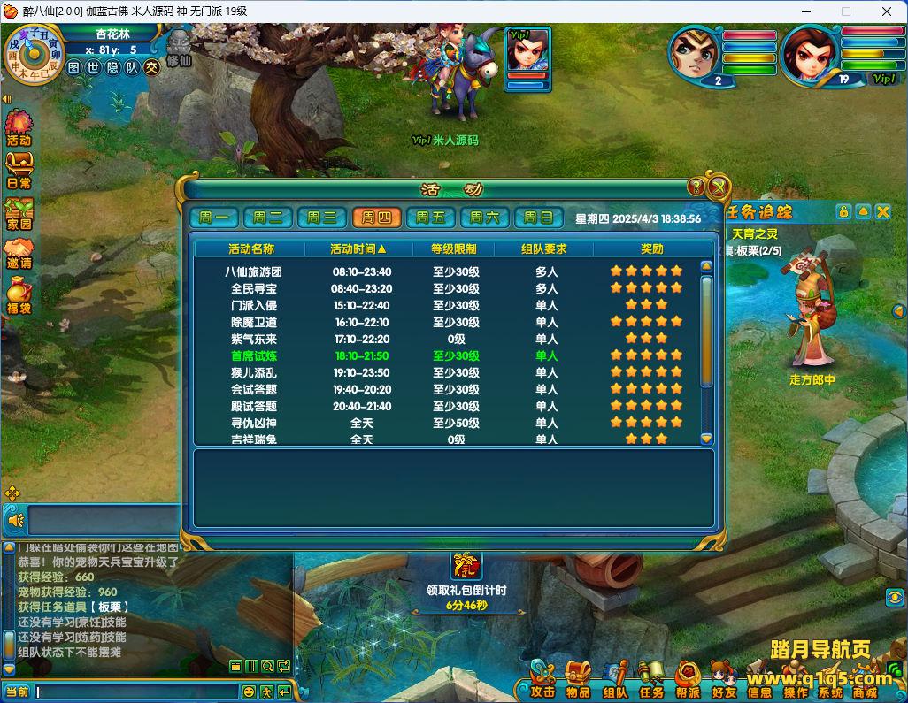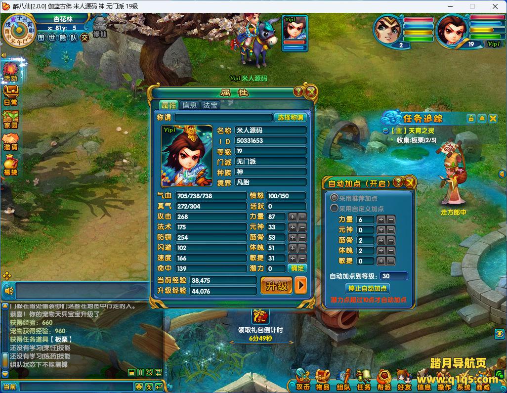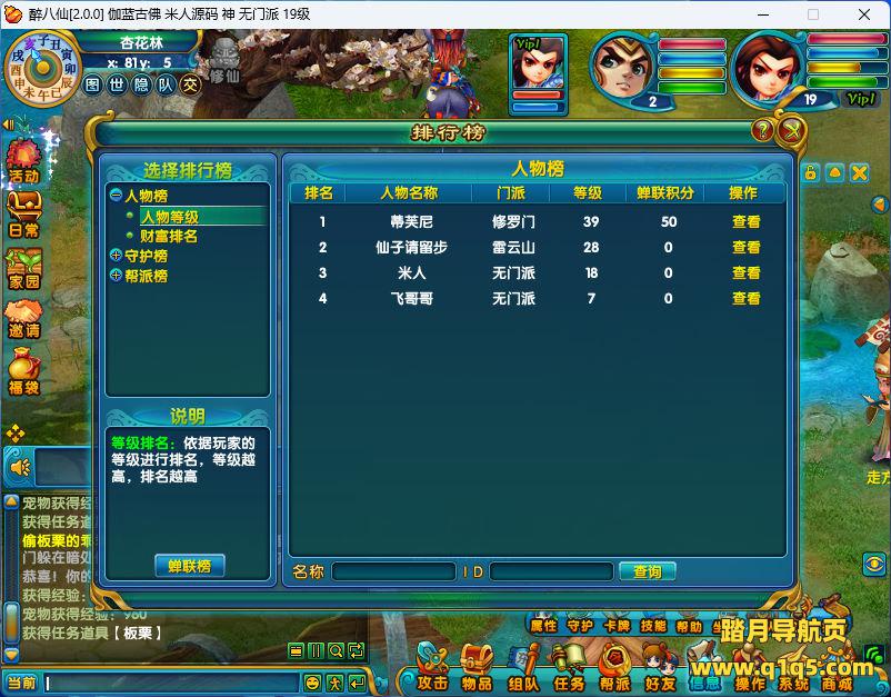 下面我们来测试下游戏里的功能看看。好了。其他功能就自行测试吧。更多的游戏资源可以访问www.q1q5.com下载,我们每款游戏资源均单独制作了独立的视频架设教程,让小白也可以快速上手游戏架设,快来体验自己做GM的乐趣吧!