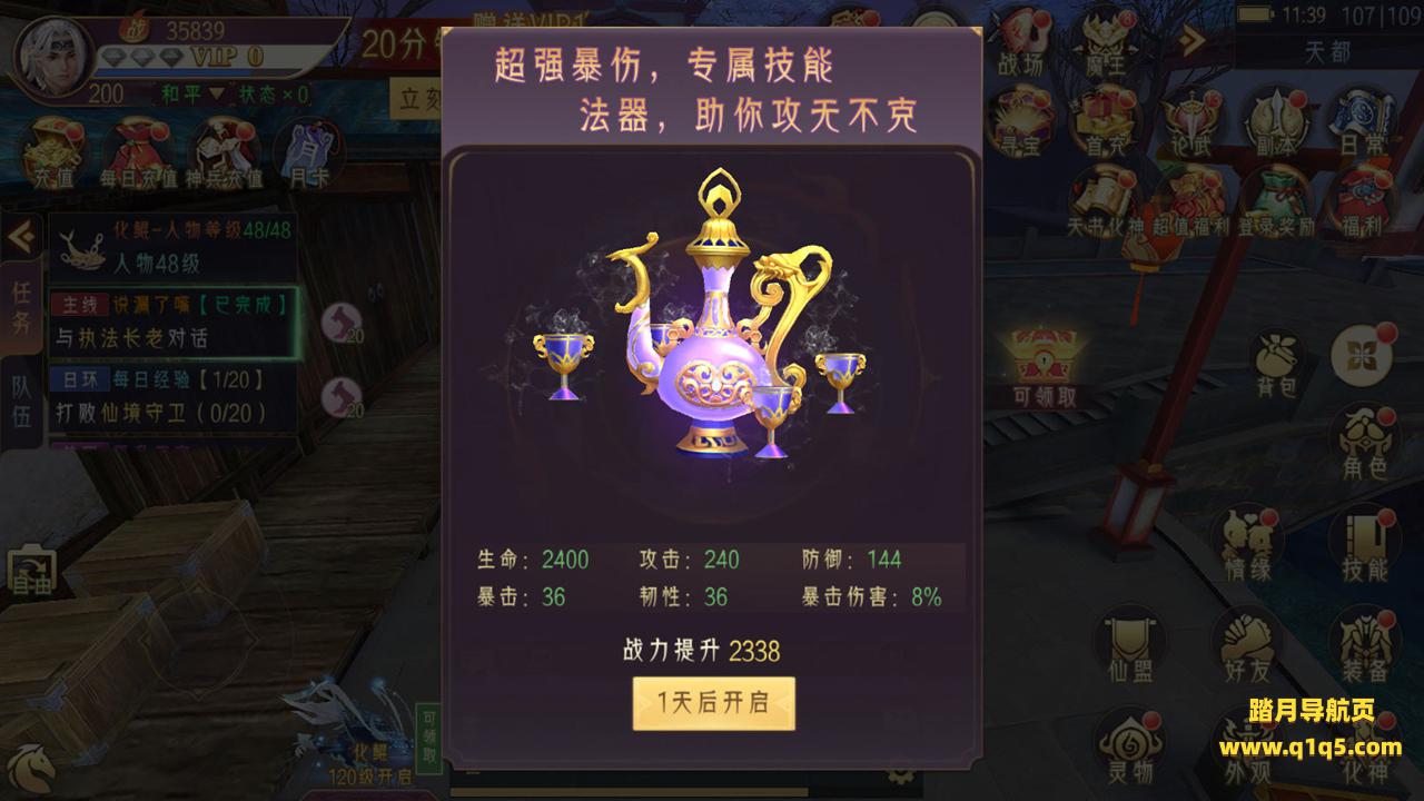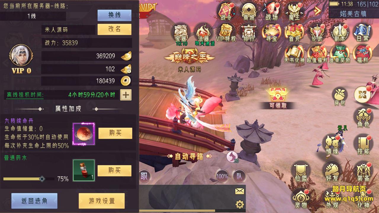 好了,我们在测试看看游戏里的功能内容。好了,其它的功能自行测试了吧。更多游戏资源请访问www.q1q5.com 我们每款游戏资源均单独制作了独立的视频架设教程,让小白也可以快速上手游戏架设,体验做GM的乐趣!