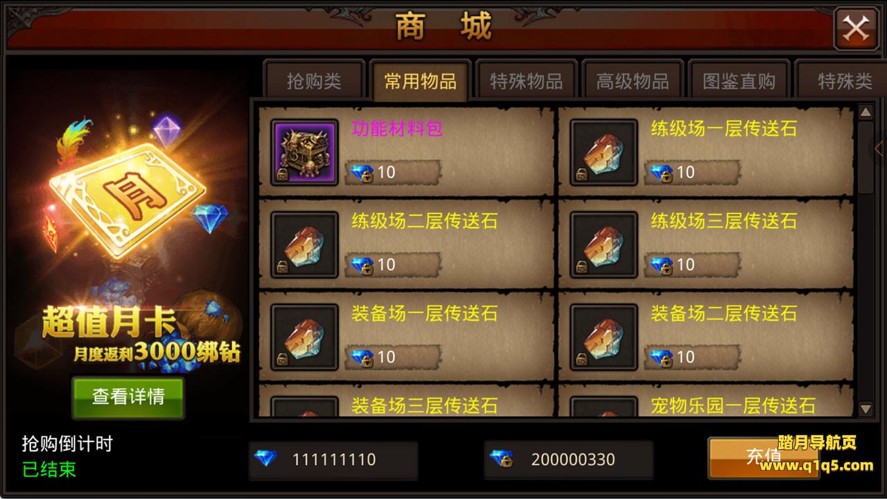 下面我们来测试下游戏里的功能看看。好了,其他功能就自行测试吧。更多的游戏资源可以访问www.q1q5.com下载,我们每款游戏资源均单独制作了独立的视频架设教程,让小白也可以快速上手游戏架设,快来体验自己做GM的乐趣吧!