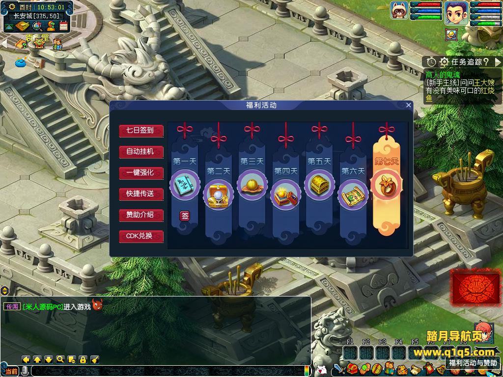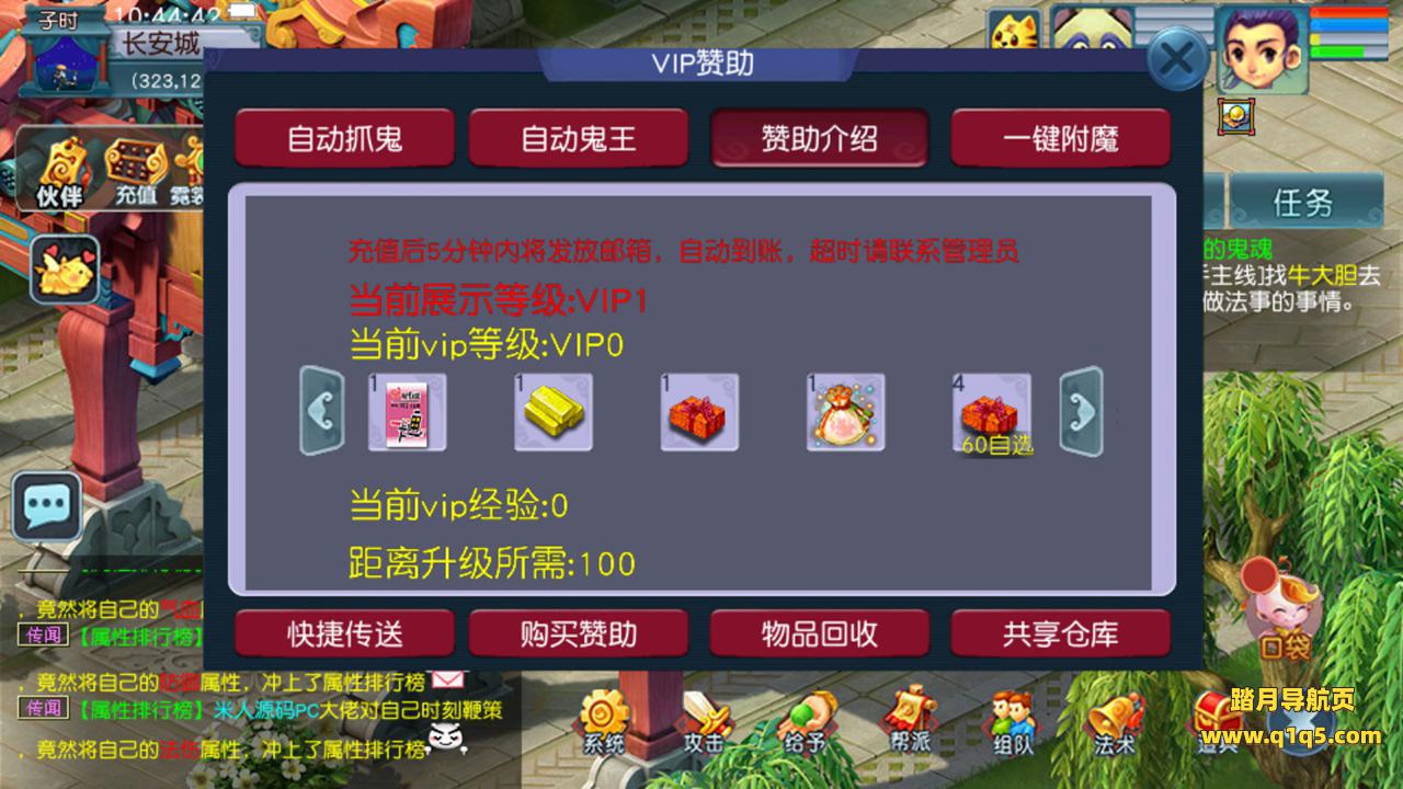好了,下面我们来测试看看游戏里的功能了。好了,其他功能就自行研究吧。更多的游戏资源可访问www.q1q5.com下载,我们每款游戏资源均单独制作了独立的视频架设教程,让小白也可以快速上手游戏架设,快来体验做GM的乐趣吧!