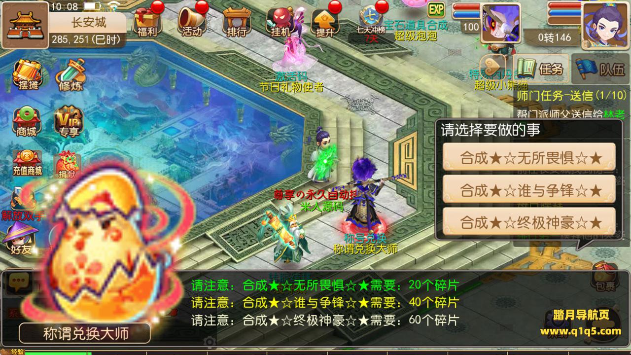 下面我们来测试下游戏里的功能看看吧。好了,其他功能就自行测试吧。更多的游戏资源可以访问www.q1q5.com下载,我们每款游戏资源均单独制作了独立的视频架设教程,让小白也可以快速上手游戏架设,快来体验自己做GM的乐趣吧!