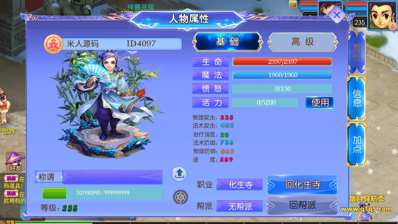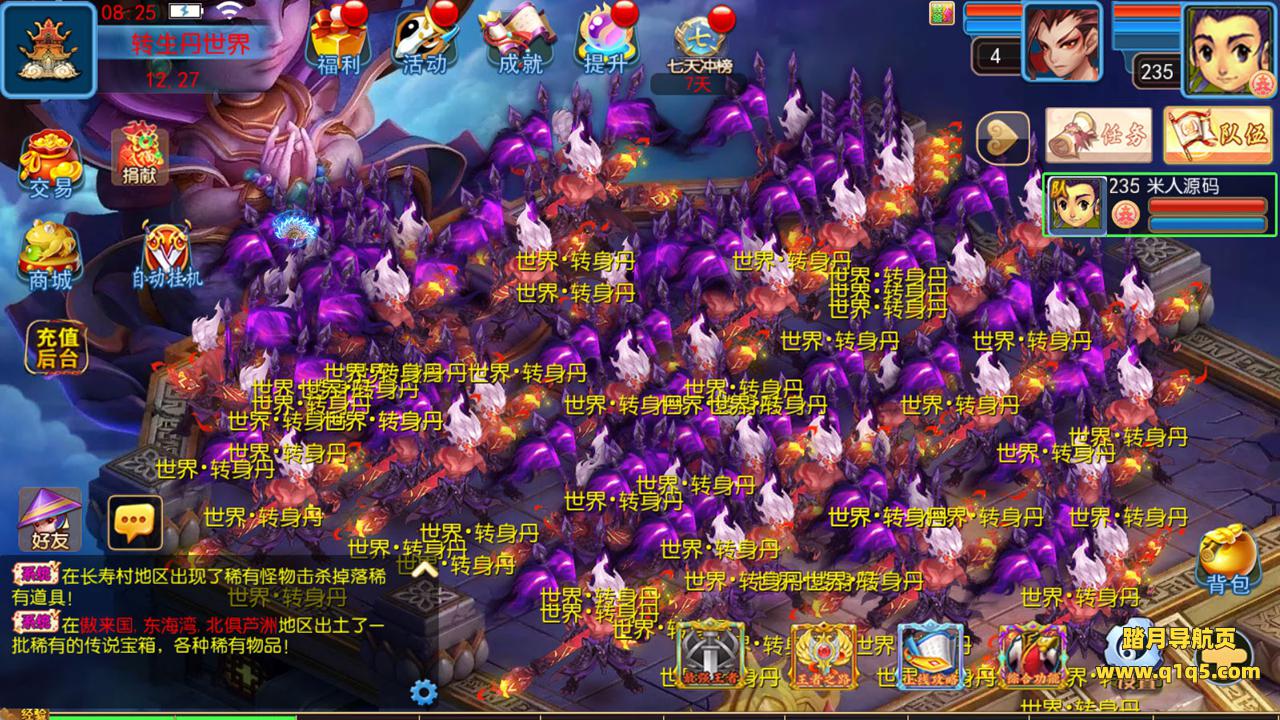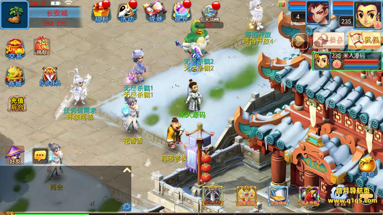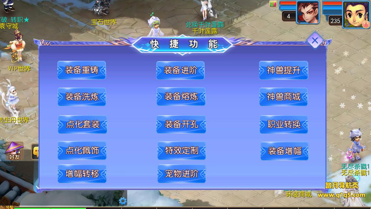 下面我们来测试下游戏里的功能看看。宝宝发送有问题需自行解决。好了,其他功能就自行测试吧。更多的游戏资源可以访问www.q1q5.com下载,我们每款游戏资源均单独制作了独立的视频架设教程,让小白也可以快速上手游戏架设,快来体验自己做GM的乐趣吧!