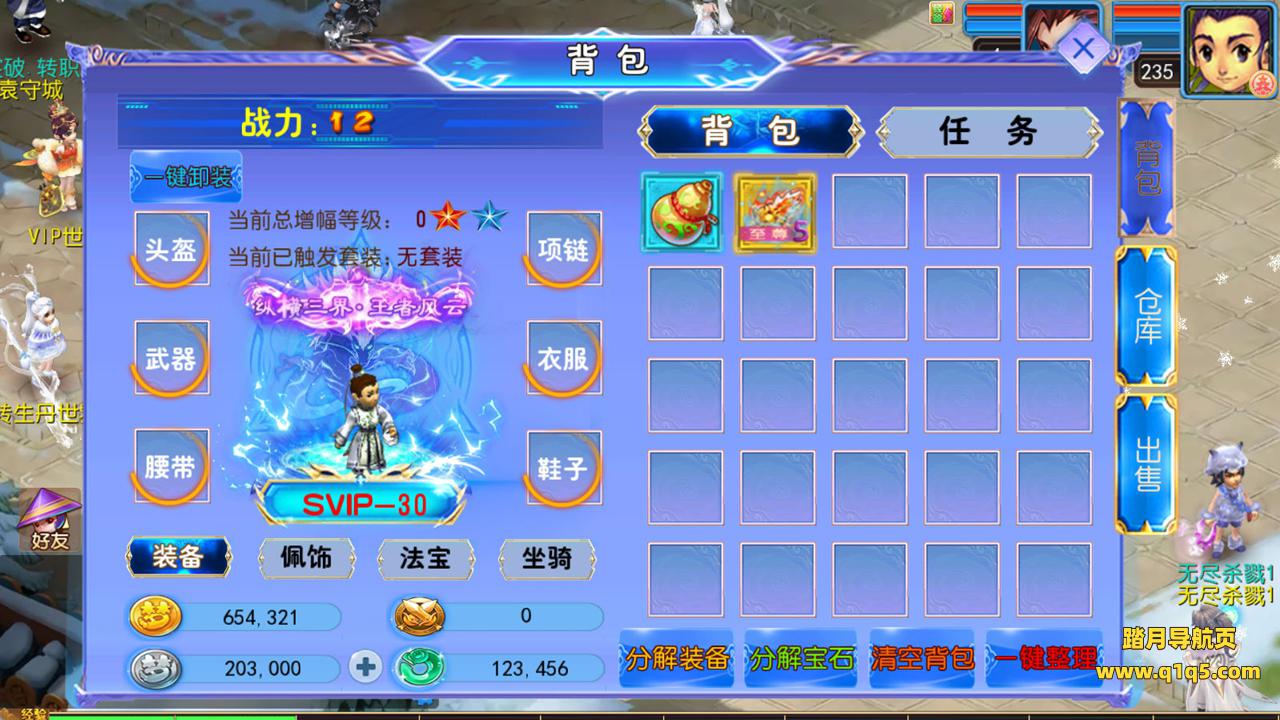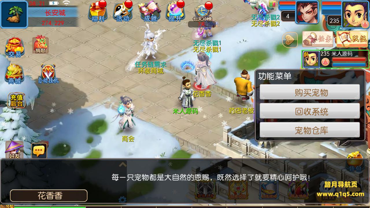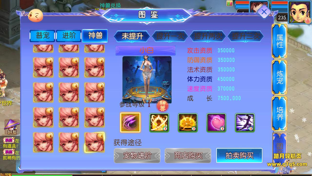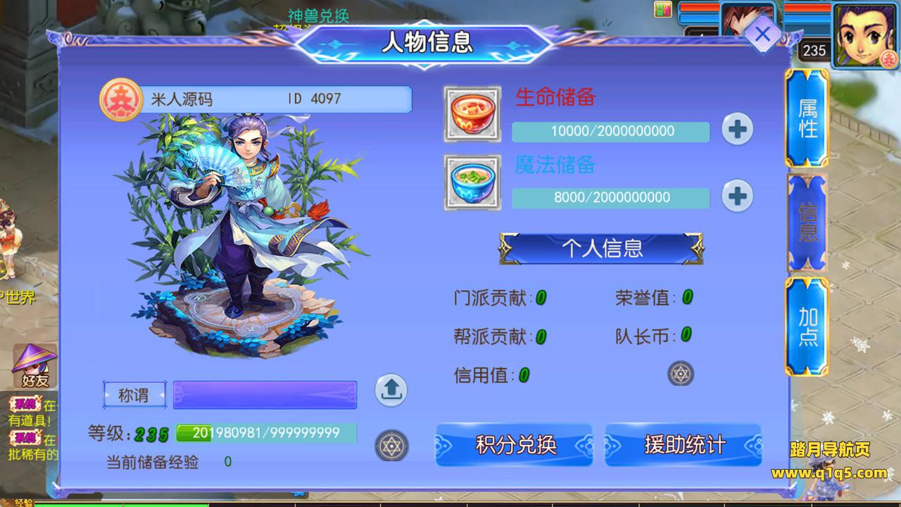 下面我们来测试下游戏里的功能看看。宝宝发送有问题需自行解决。好了,其他功能就自行测试吧。更多的游戏资源可以访问www.q1q5.com下载,我们每款游戏资源均单独制作了独立的视频架设教程,让小白也可以快速上手游戏架设,快来体验自己做GM的乐趣吧!