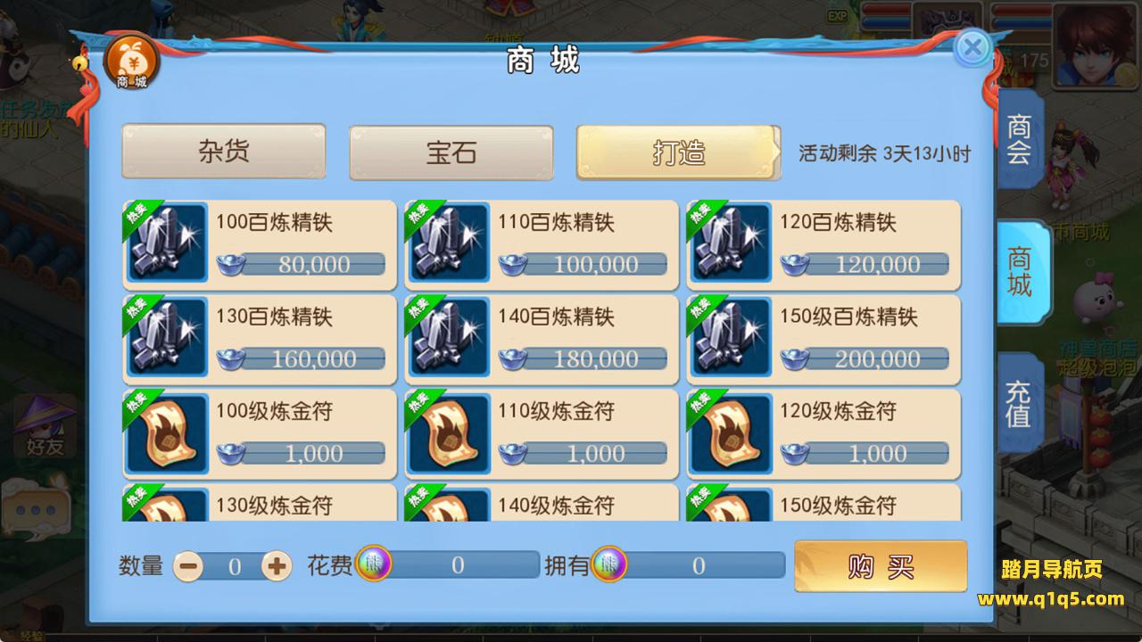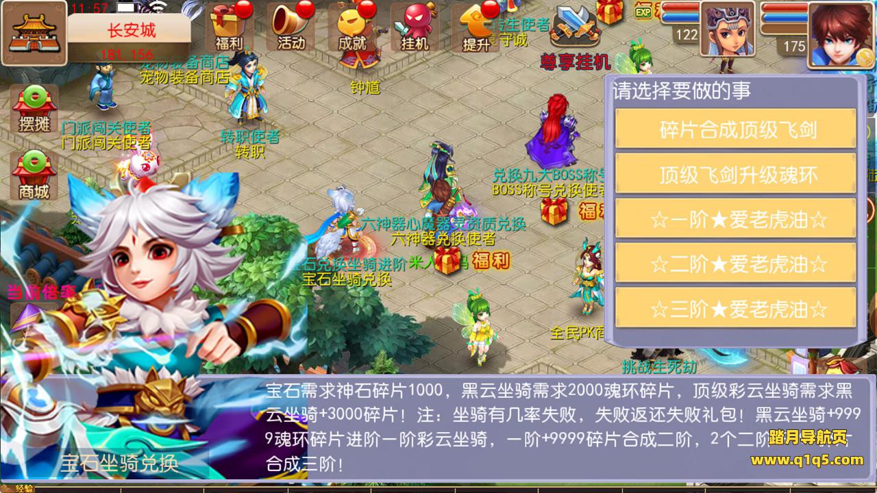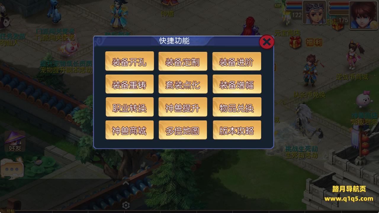 下面我们测试下游戏里的功能看看。好了,其他功能自行测试吧。更多的游戏资源请访问www.q1q5.com下载,我们每款游戏资源均单独制作了独立的视频架设教程,让小白也可以快速上手游戏架设,快来体验自己做GM的乐趣吧!