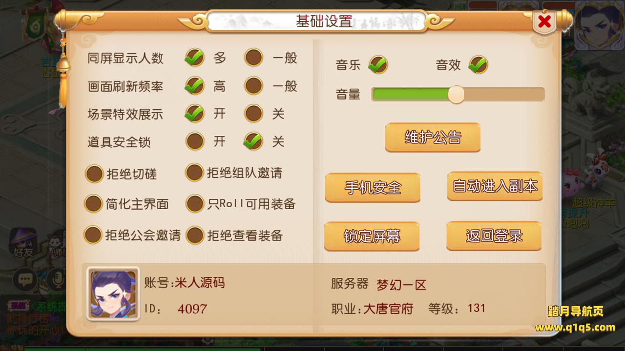 下面我们来测试下游戏里的功能。刚刚弹出的网址里修改IP地址后可以绑定自己的账号和角色。弹出网址位置在充值的地方。此网址如果想自行修改请查看源码,修改源码里的IP地址后,重新生成res然后替换到客户端里即可。好了,其他功能就自行测试吧。更多的游戏资源可访问www.q1q5.com下载,我们每款游戏资源均单独制作了独立的视频教程,让小白也可以快速上手游戏架设,体验做GM的乐趣!