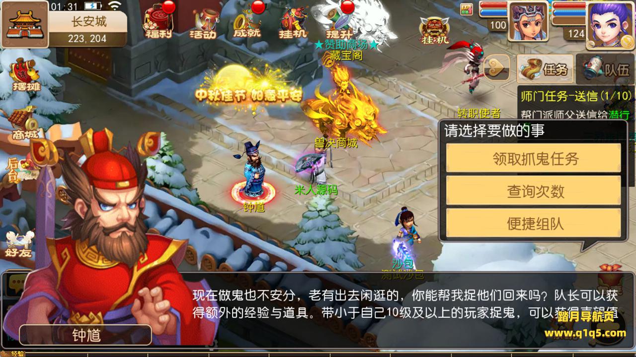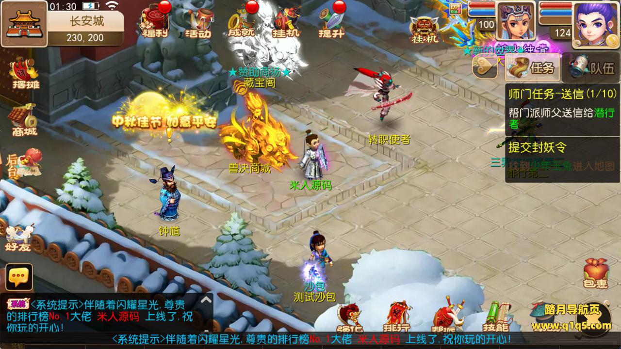 好了,下面我们来测试下游戏里的功能吧。其他功能就自行测试吧。更多的游戏资源可以访问www.q1q5.com下载,我们每款游戏资源均单独制作了独立的视频架设教程,让小白也可以快速上手游戏架设,快来体验自己做GM的乐趣吧!