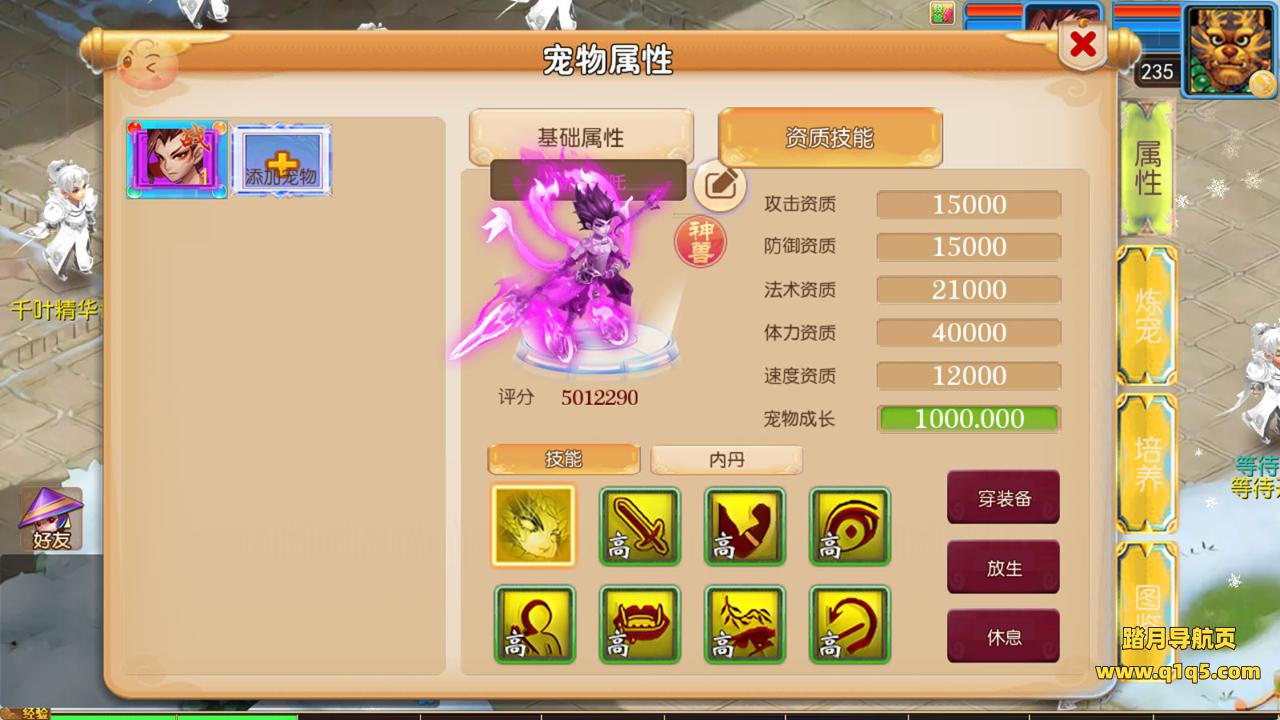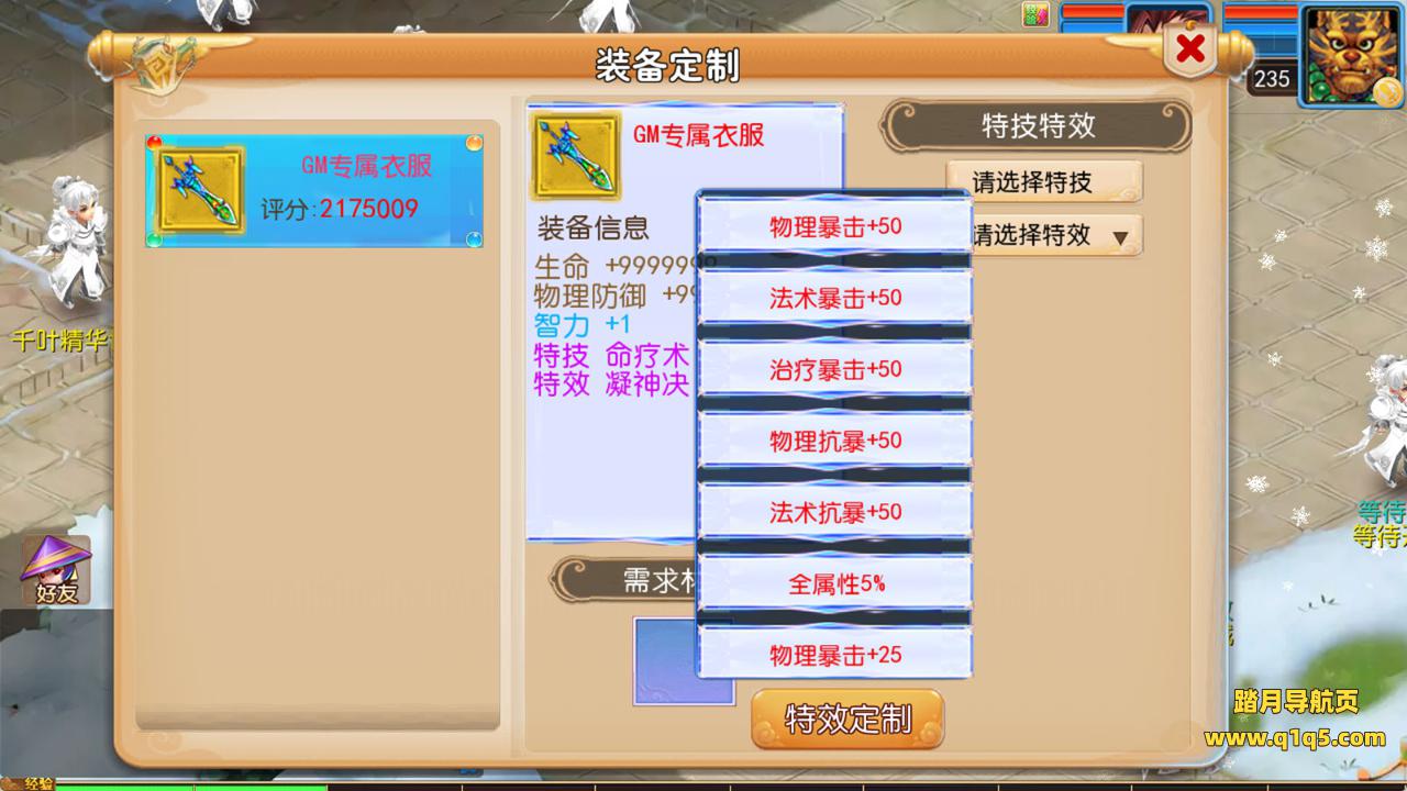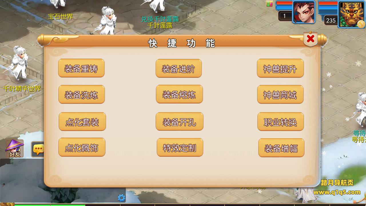 好了。下面我们测试下游戏里的功能看看。好了。其他功能就自行测试吧。更多的游戏资源可以访问www.q1q5.com下载,我们每款游戏资源均单独制作了独立的视频架设教程,让小白也可以快速上手游戏架设,快来体验自己做GM的乐趣吧!