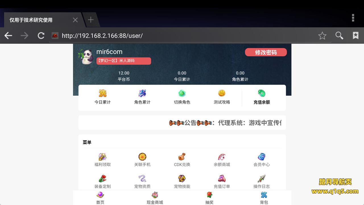 下面我们来测试下游戏里的功能看看。好了,其他功能就自行测试吧。更多的游戏资源可以访问www.q1q5.com下载,我们每款游戏资源均单独制作了独立的视频架设教程,让小白也可以快速上手游戏架设,快来体验自己做GM的乐趣吧!