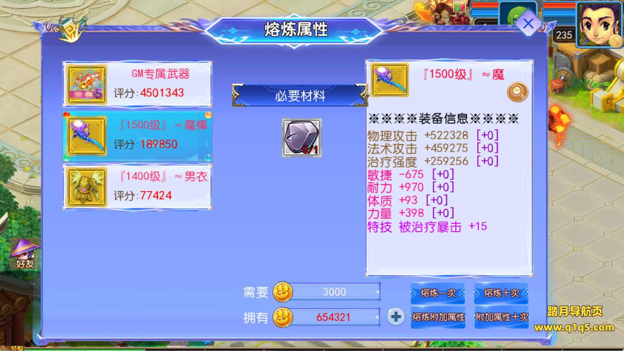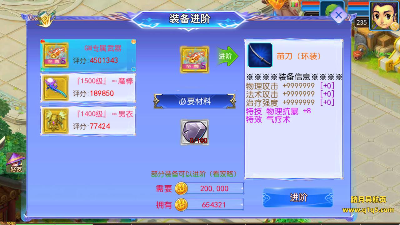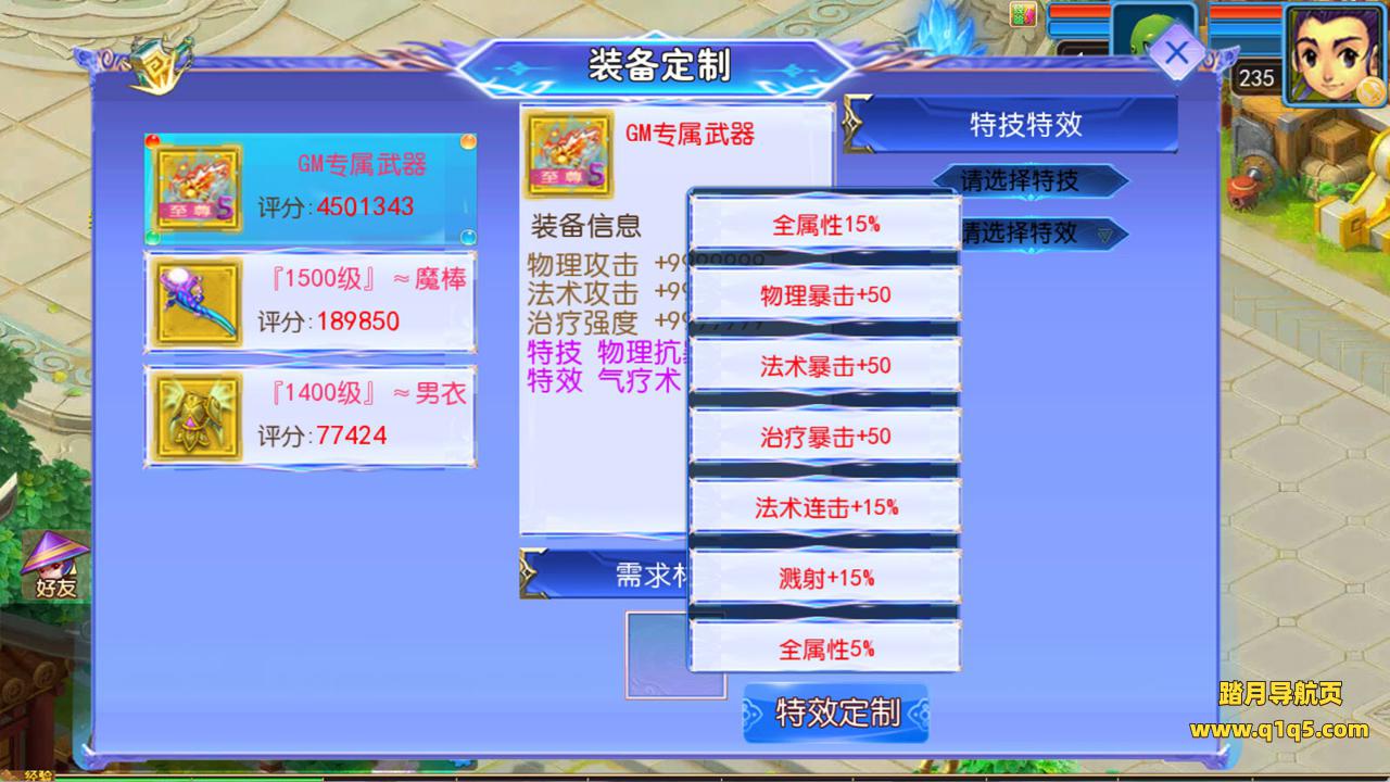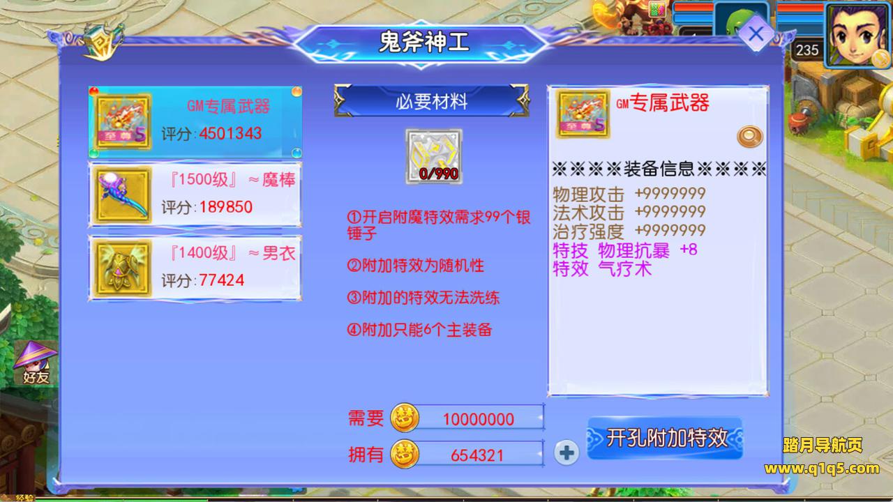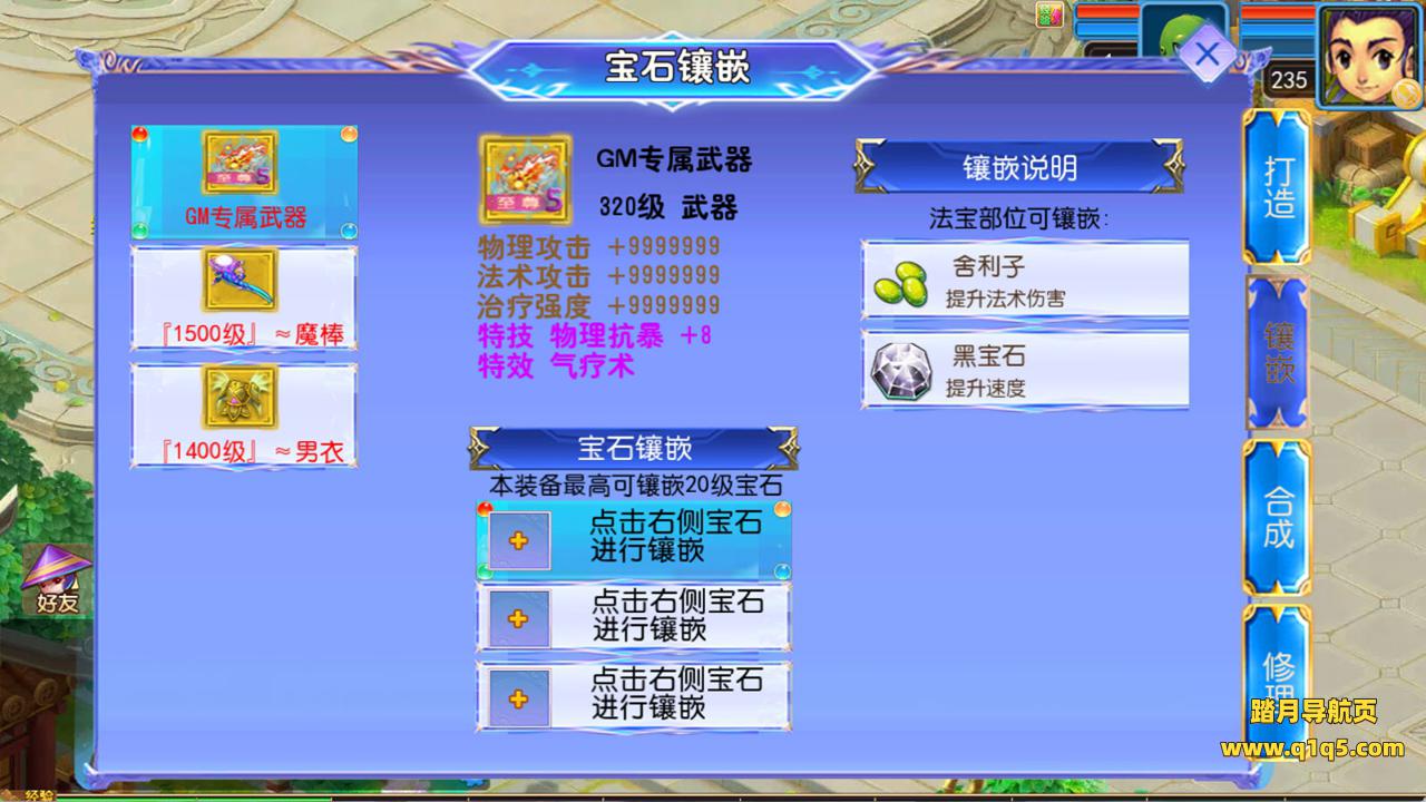 下面我们测试下游戏里的功能看看。好了,其他功能就自行测试吧。更多的游戏资源可以访问www.q1q5.com下载,我们每款游戏资源均单独制作了独立的视频架设教程,让小白也可以快速上手游戏架设,快来体验自己做GM的乐趣吧!