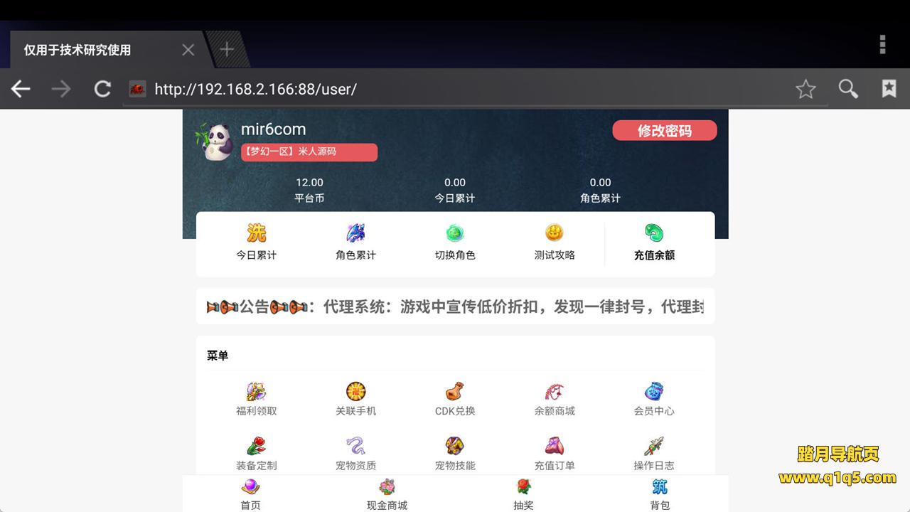 下面我们来测试下游戏里的功能看看。好了,其他功能就自行测试吧。更多的游戏资源可以访问www.q1q5.com下载,我们每款游戏资源均单独制作了独立的视频架设教程,让小白也可以快速上手游戏架设,快来体验自己做GM的乐趣吧!