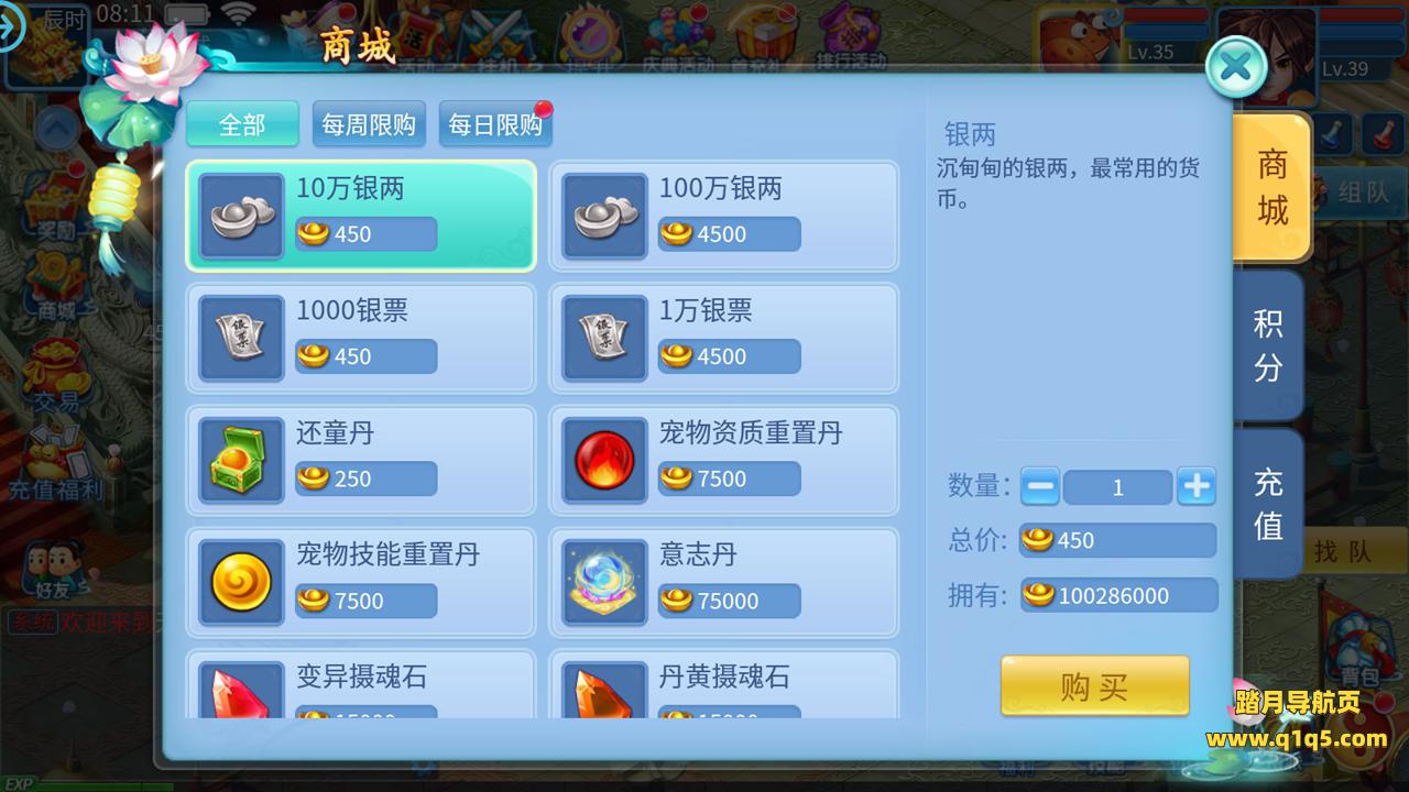 14.商城增加部分道具,白浅和夜华碎片每次购买100个,永久限购1次!
