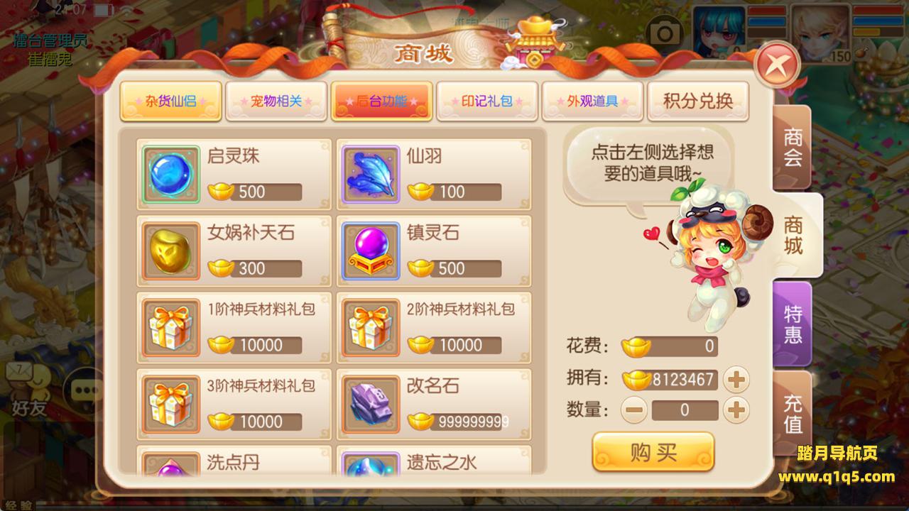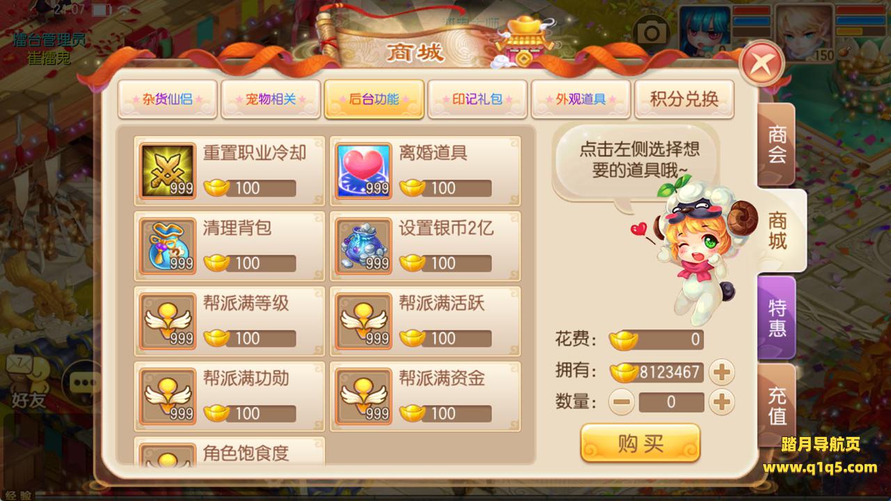 下面我们来测试下游戏里的功能看看吧。好了,其他功能就自行测试吧。更多的游戏资源可以访问www.q1q5.com下载,我们每款游戏资源均单独制作了独立的视频架设教程,让小白也可以快速上手游戏架设,快来体验自己做GM的乐趣吧!