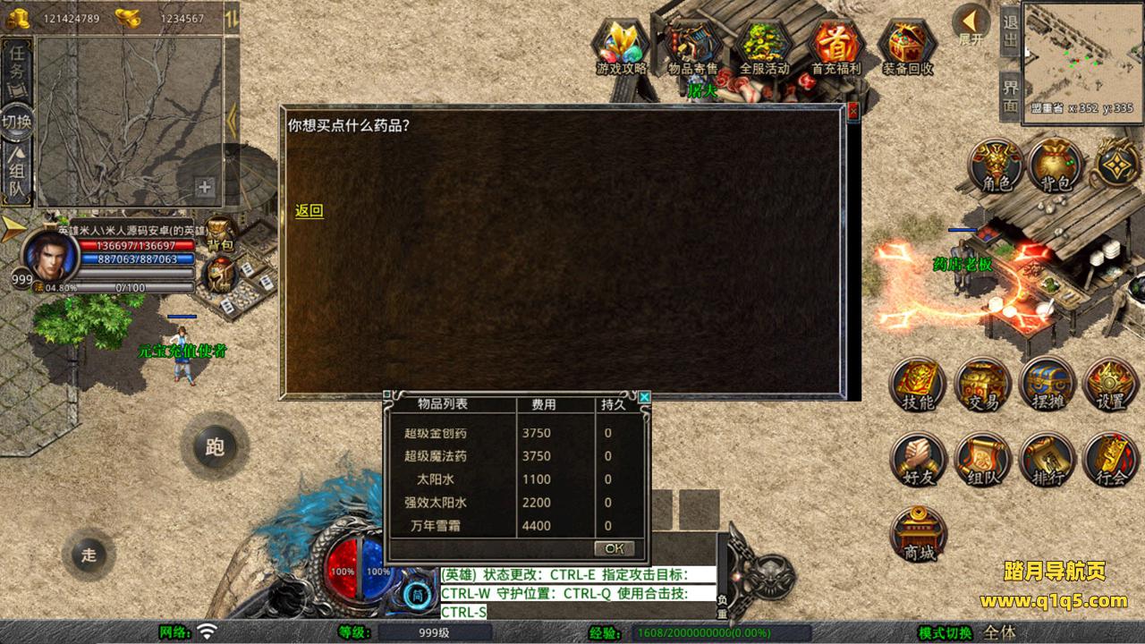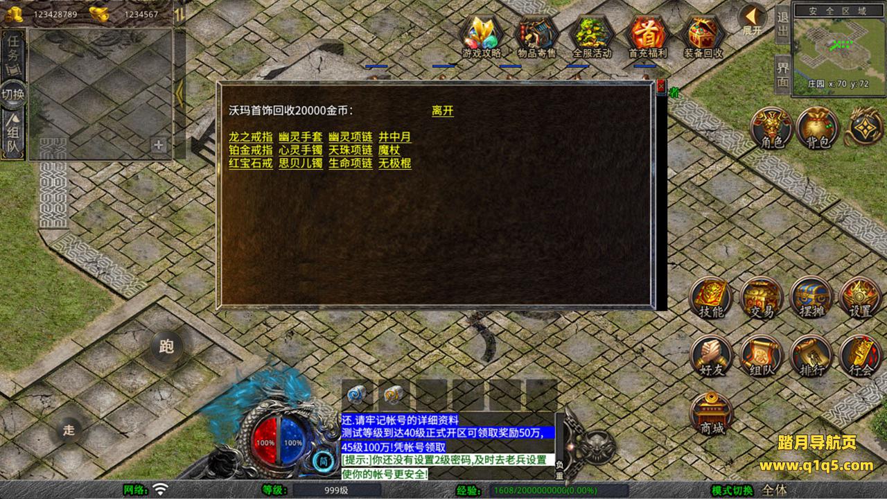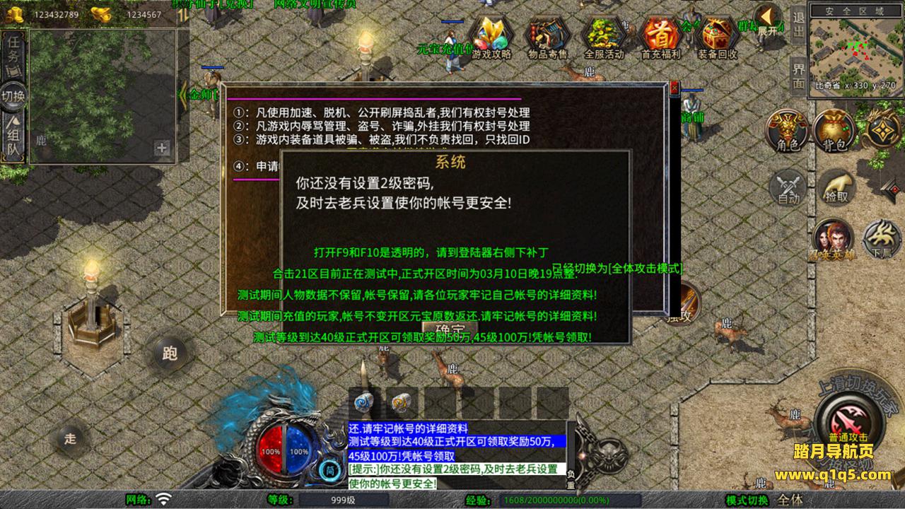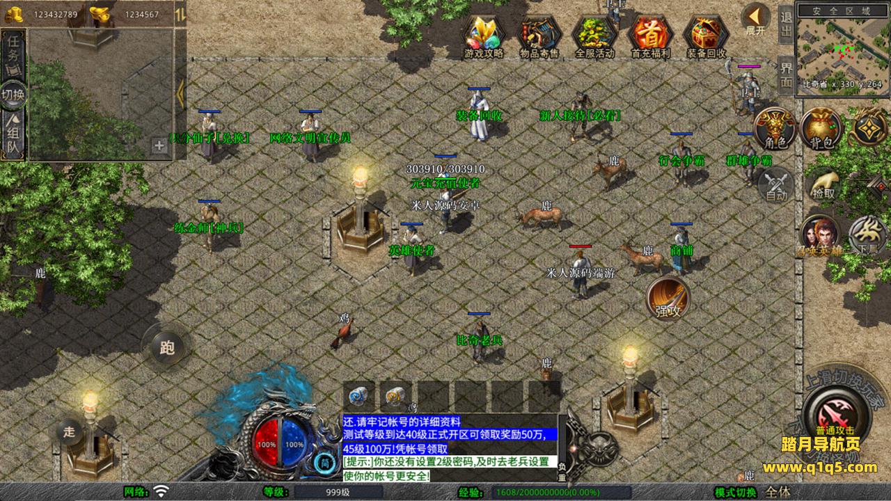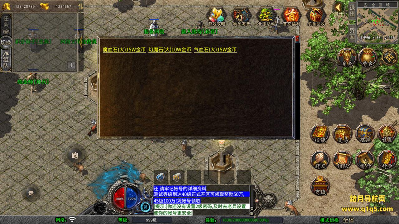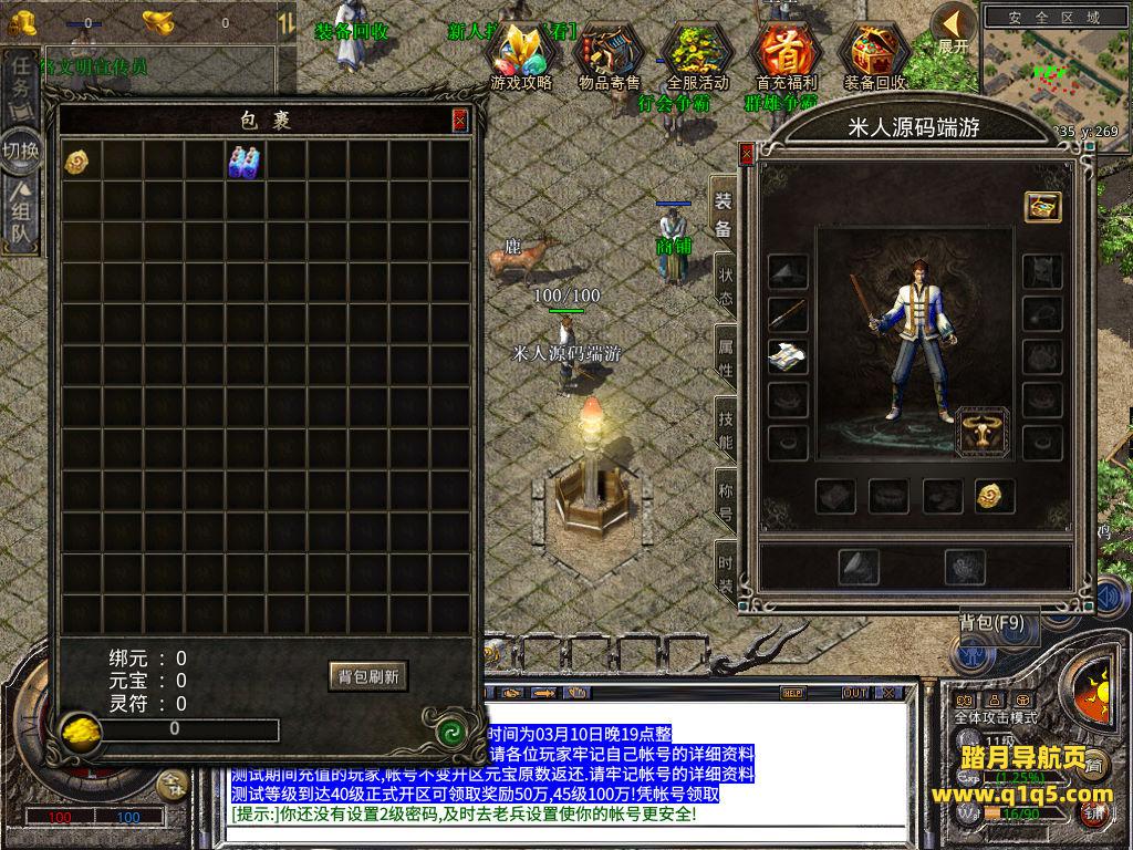 下面我们来测试下游戏里的功能看看。好了,其他功能就自行测试吧。更多的游戏资源可以访问www.q1q5.com下载,我们每款游戏资源均单独制作的有独立的视频架设教程,让小白也可以快速上手游戏架设,快来体验自己做GM的乐趣吧!