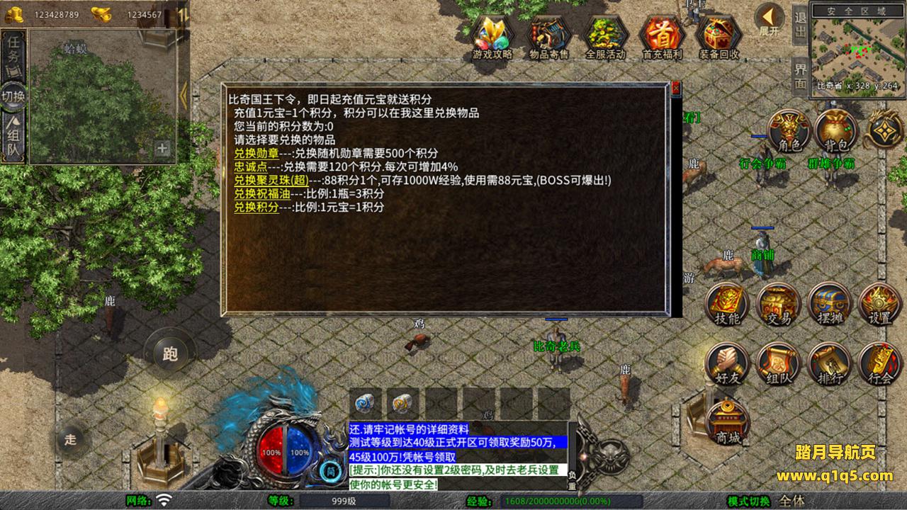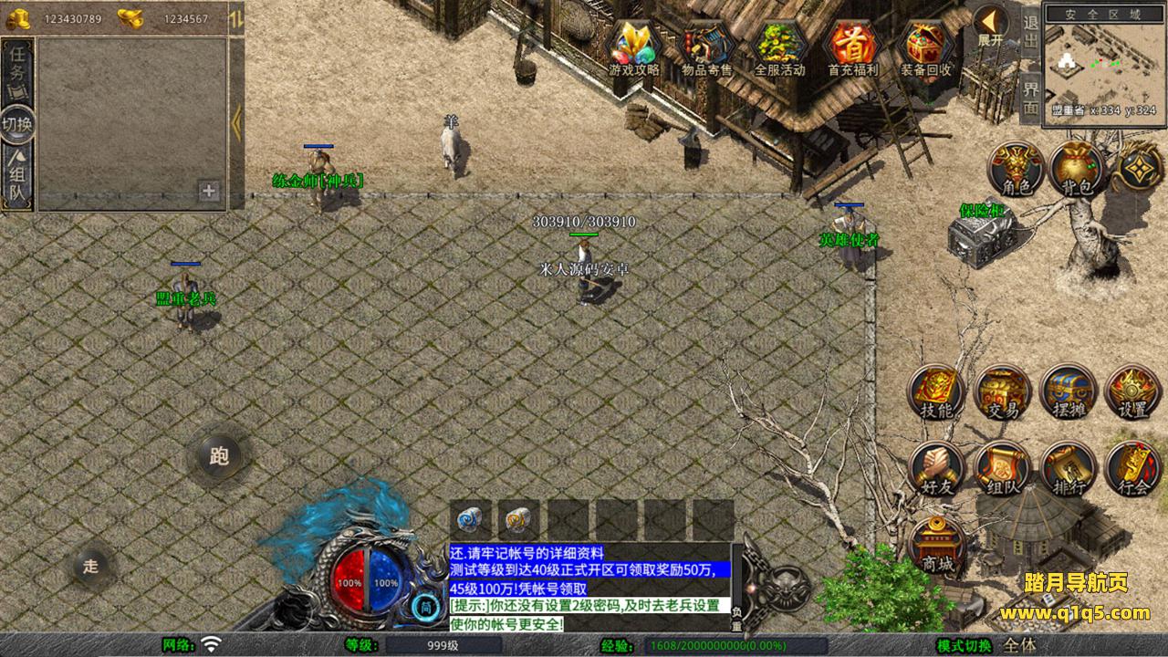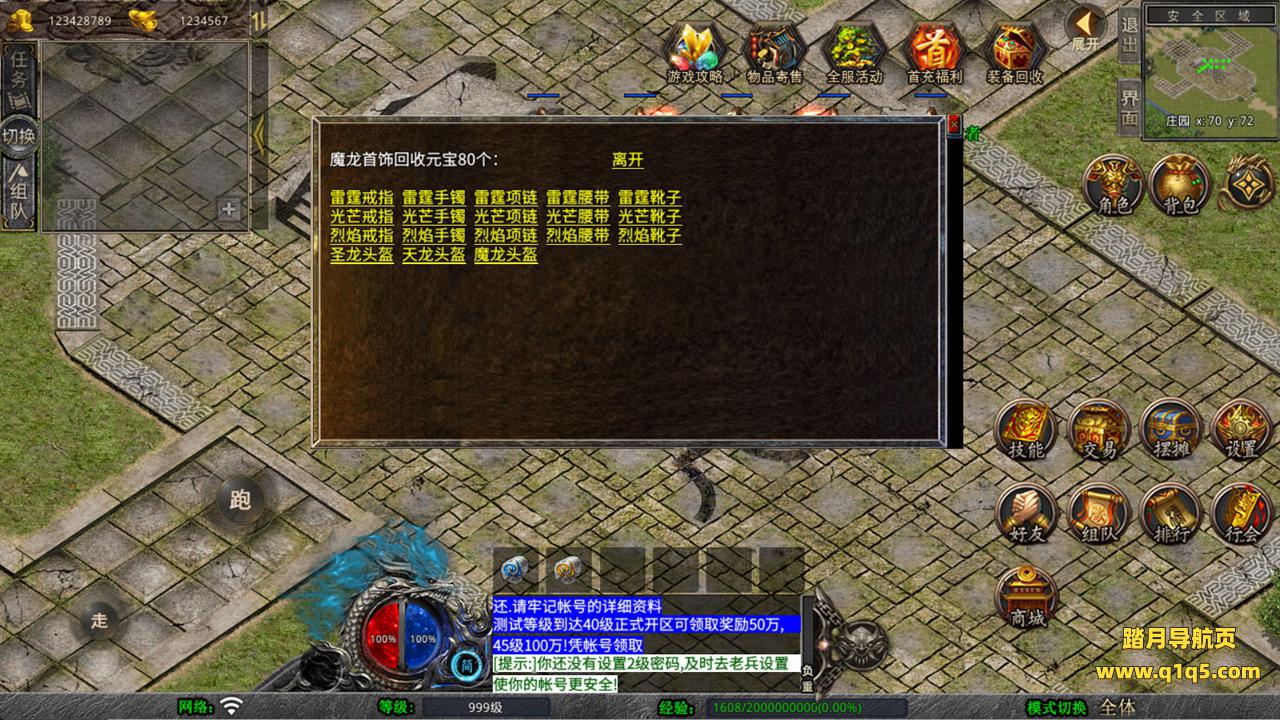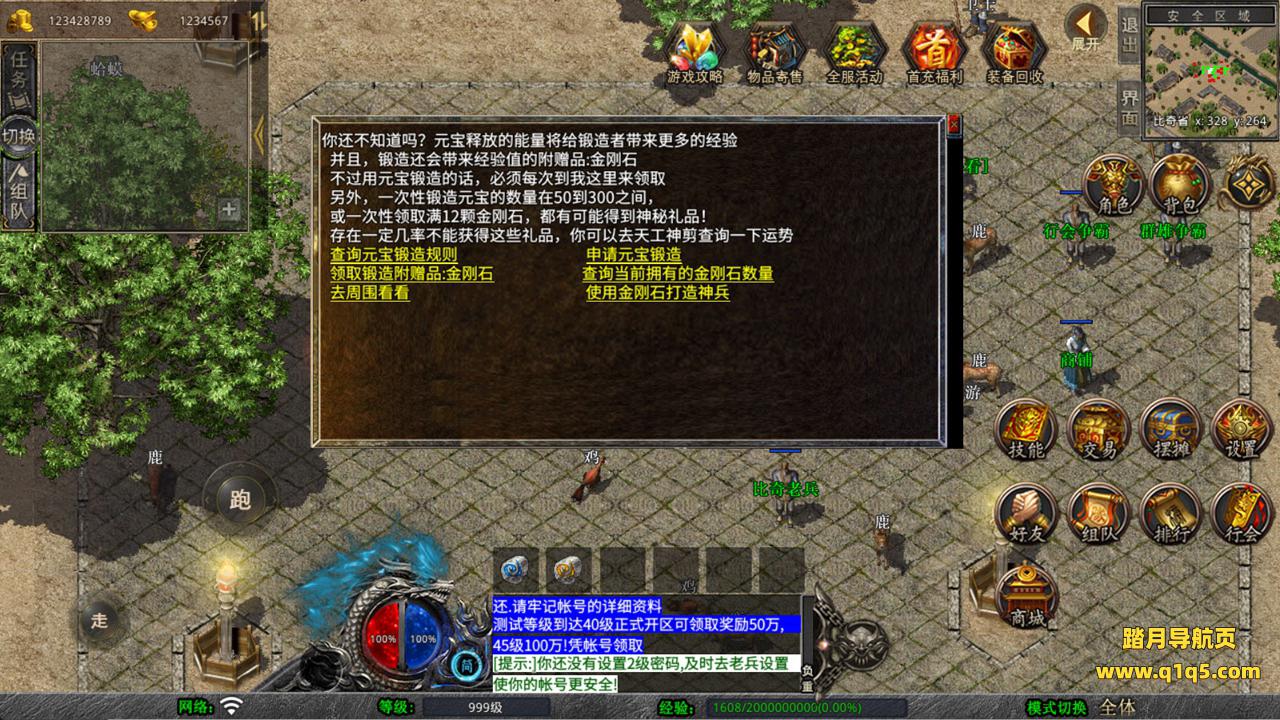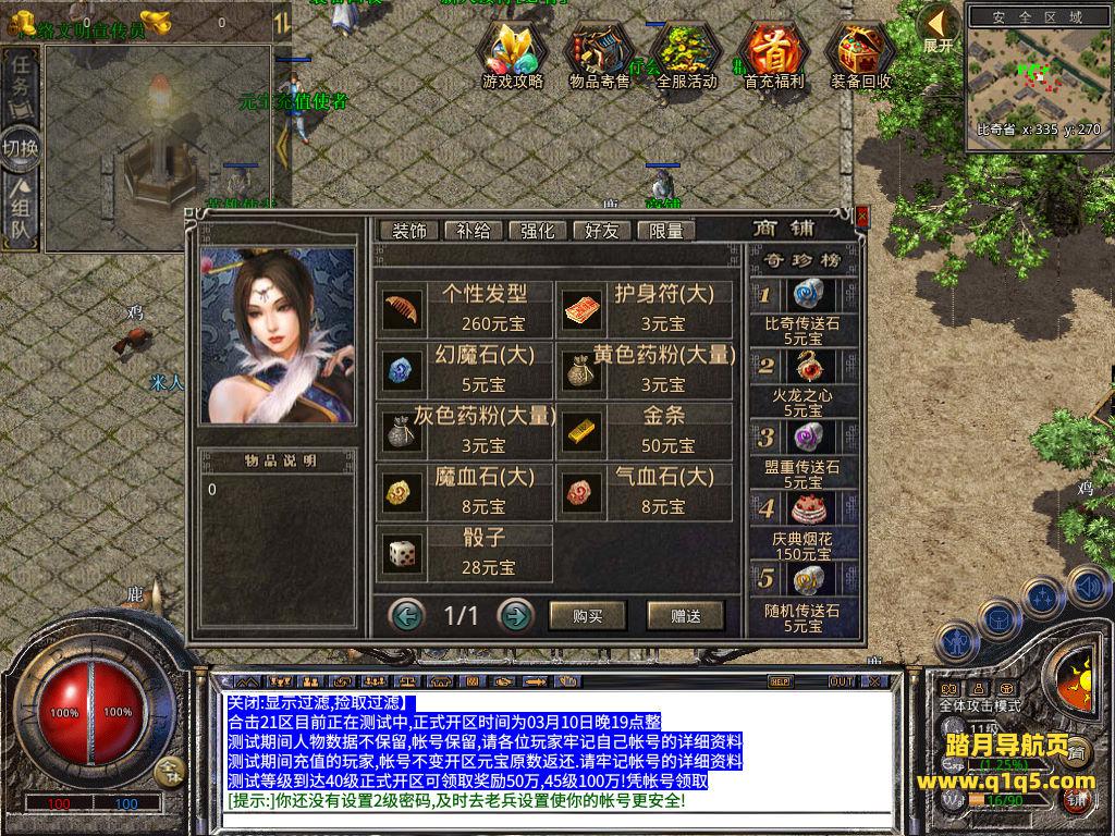 下面我们来测试下游戏里的功能看看。好了,其他功能就自行测试吧。更多的游戏资源可以访问www.q1q5.com下载,我们每款游戏资源均单独制作的有独立的视频架设教程,让小白也可以快速上手游戏架设,快来体验自己做GM的乐趣吧!