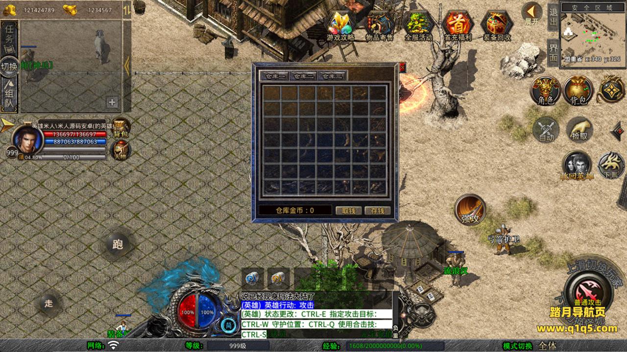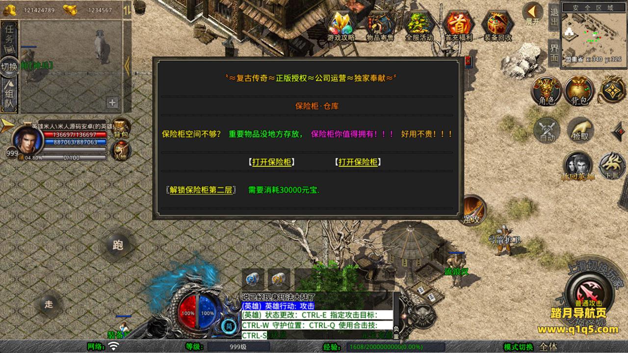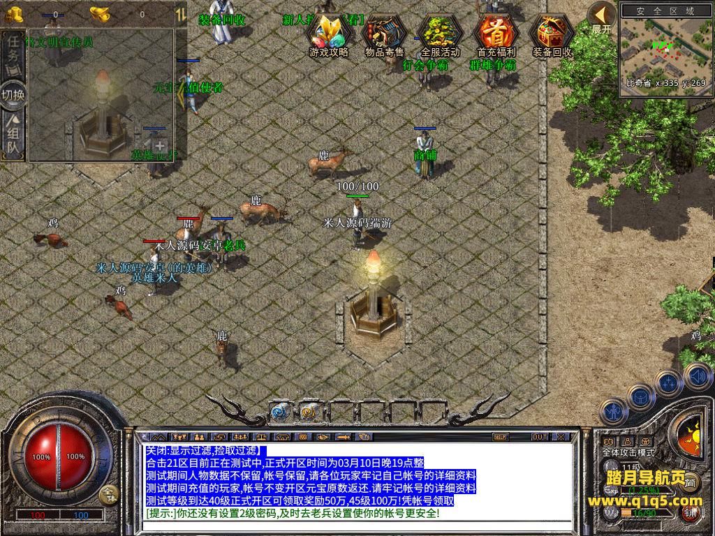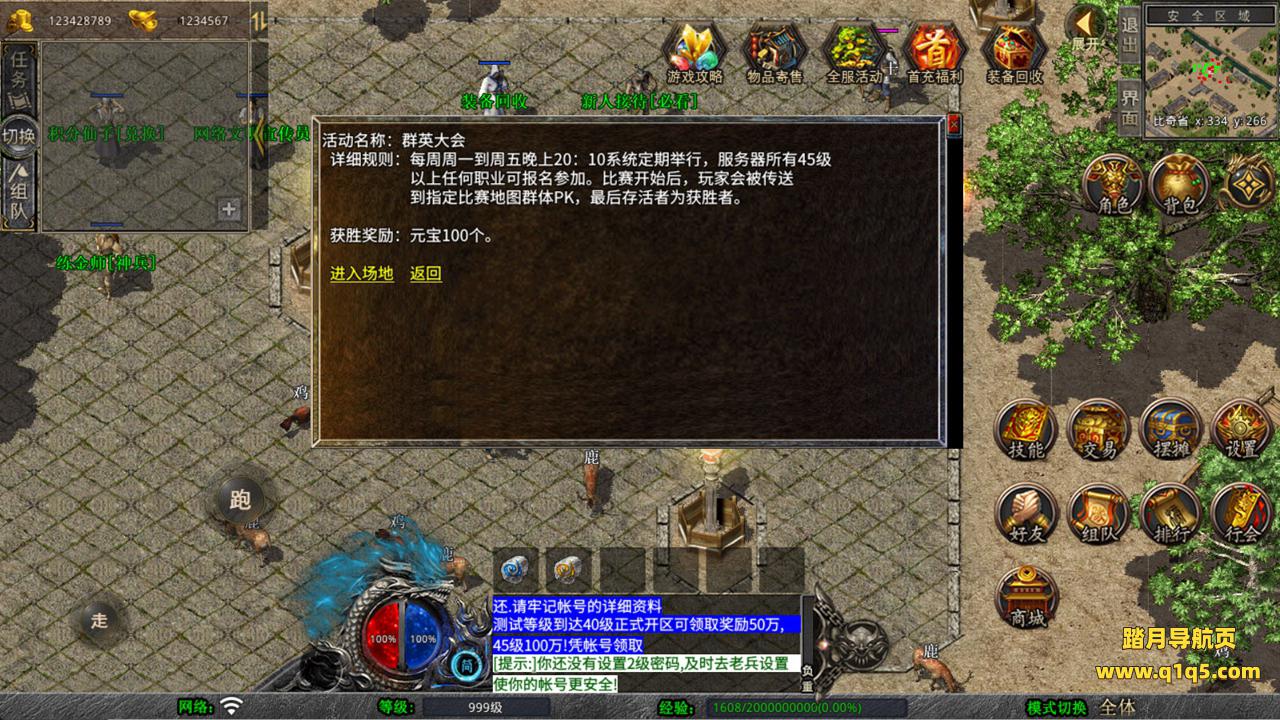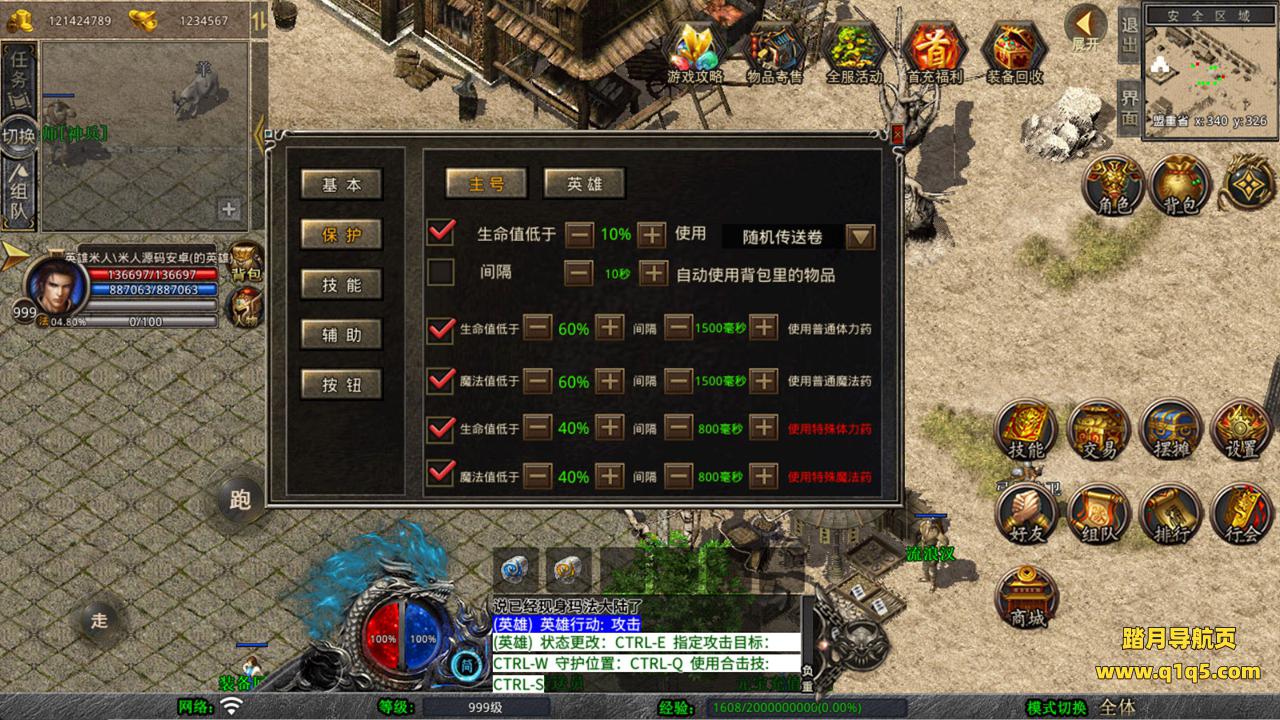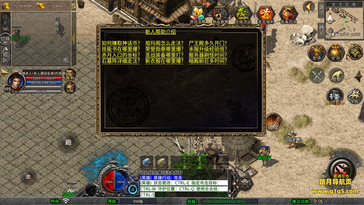 下面我们来测试下游戏里的功能看看。好了,其他功能就自行测试吧。更多的游戏资源可以访问www.q1q5.com下载,我们每款游戏资源均单独制作的有独立的视频架设教程,让小白也可以快速上手游戏架设,快来体验自己做GM的乐趣吧!