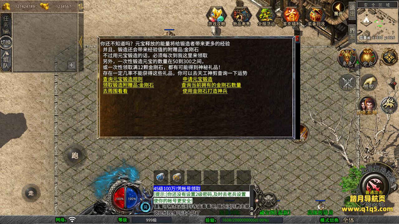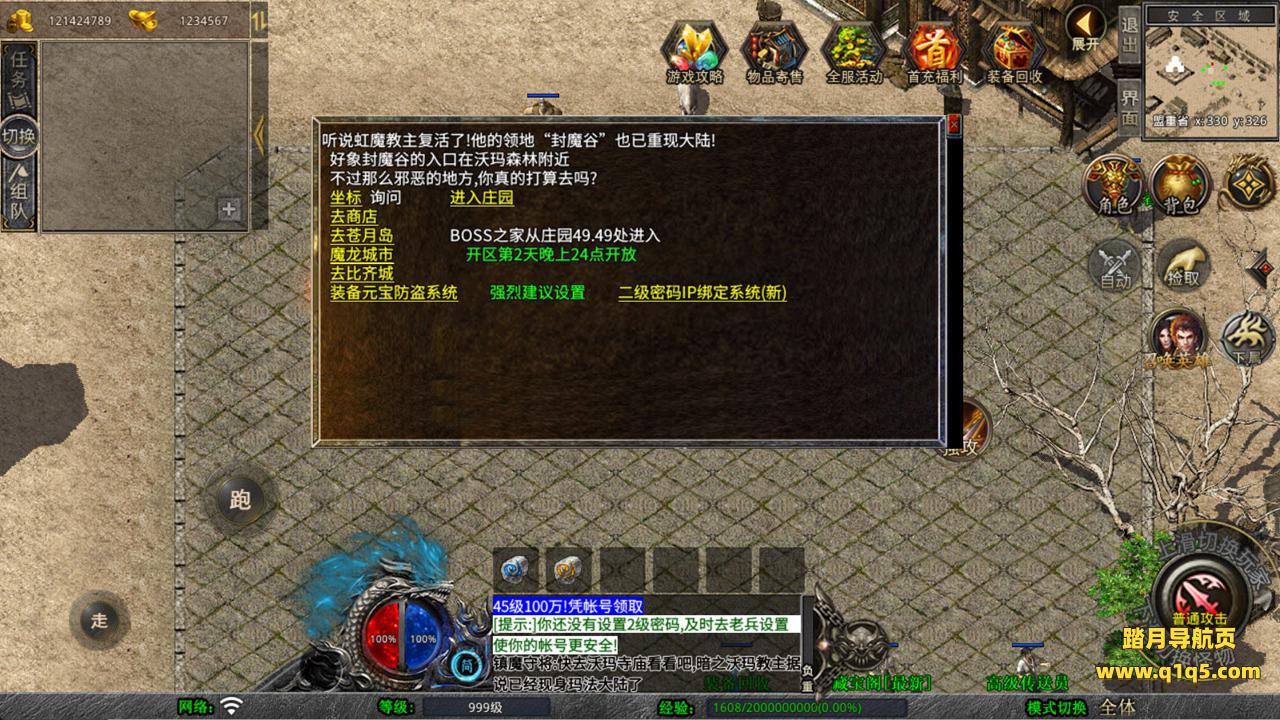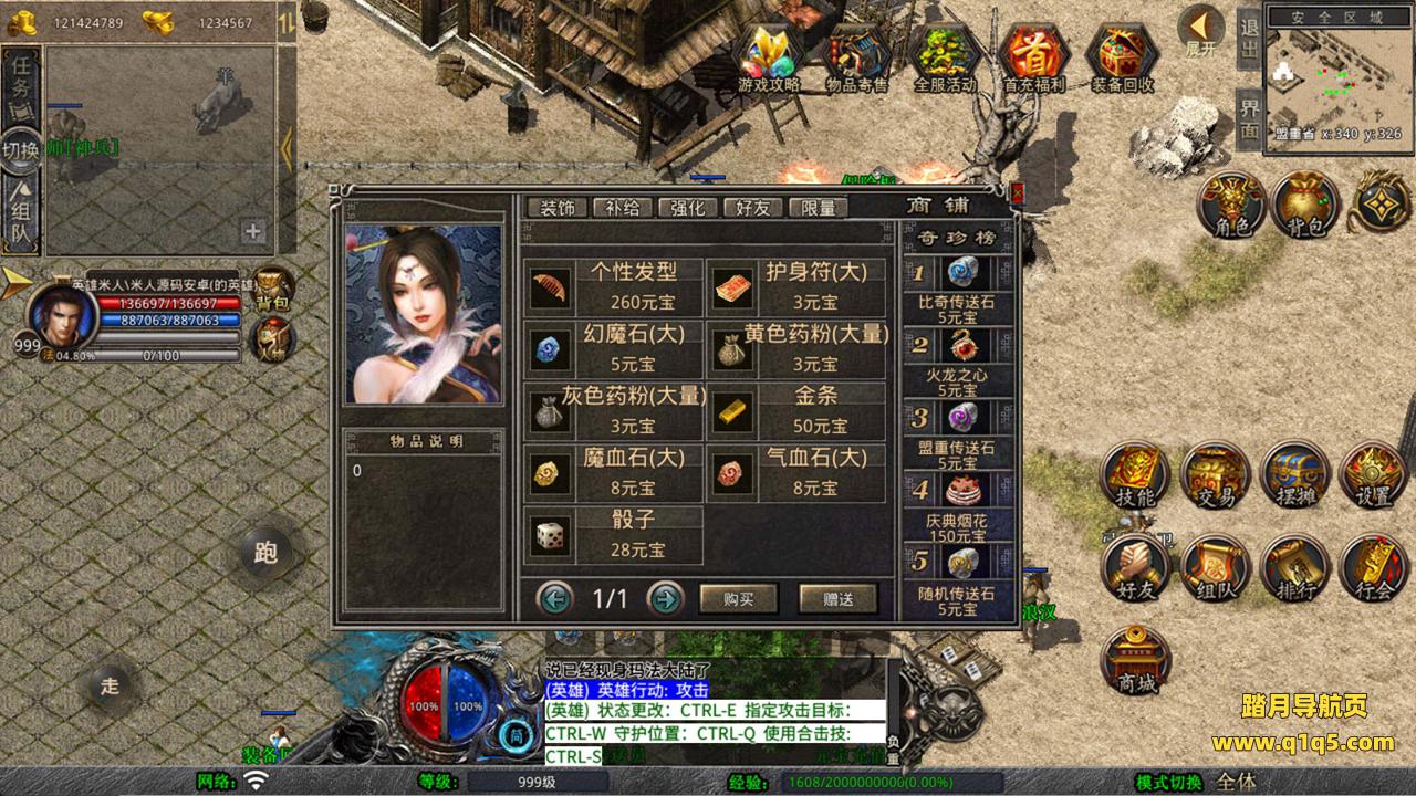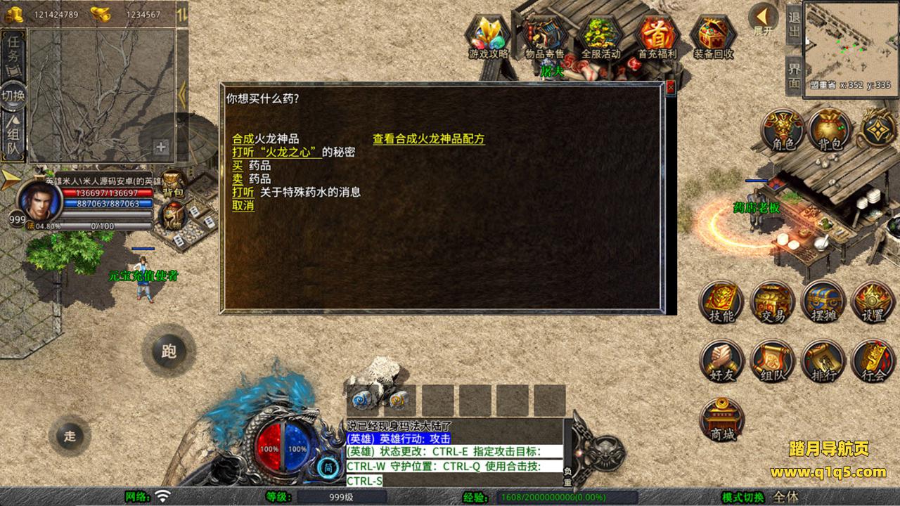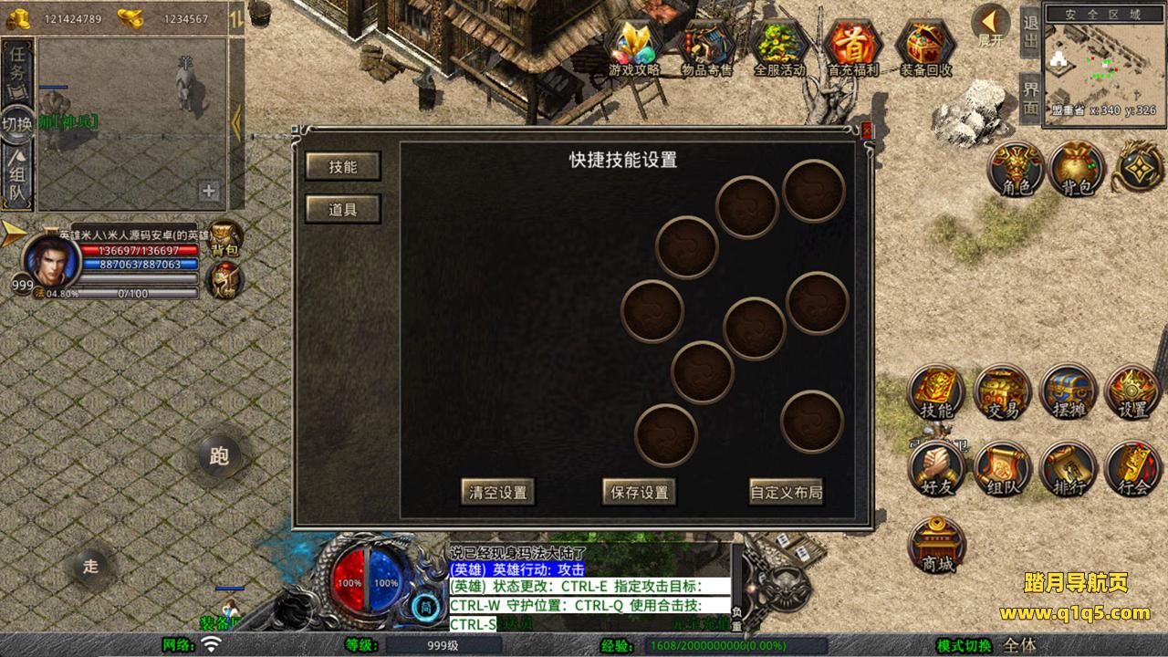 下面我们来测试下游戏里的功能看看。好了,其他功能就自行测试吧。更多的游戏资源可以访问www.q1q5.com下载,我们每款游戏资源均单独制作的有独立的视频架设教程,让小白也可以快速上手游戏架设,快来体验自己做GM的乐趣吧!