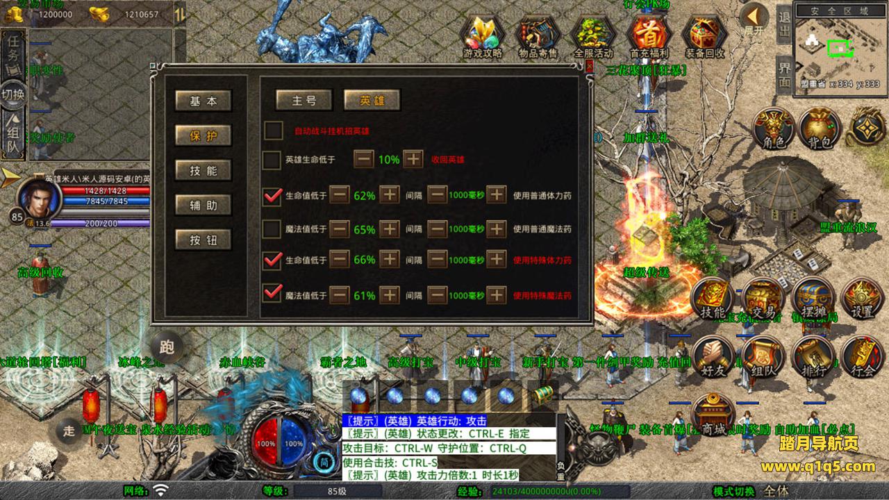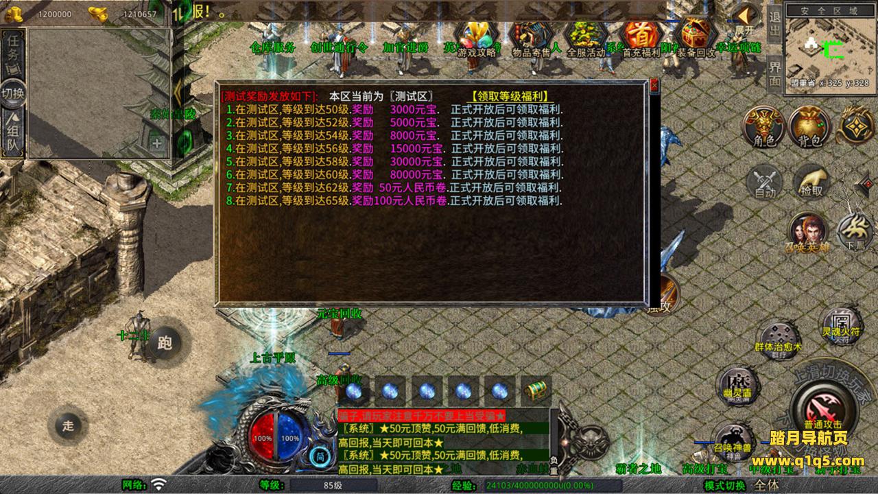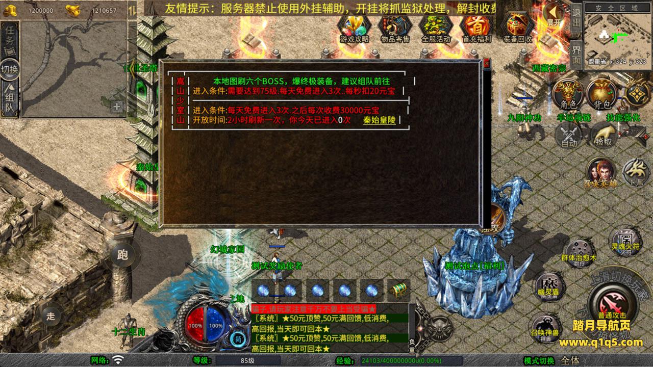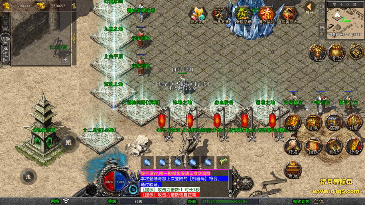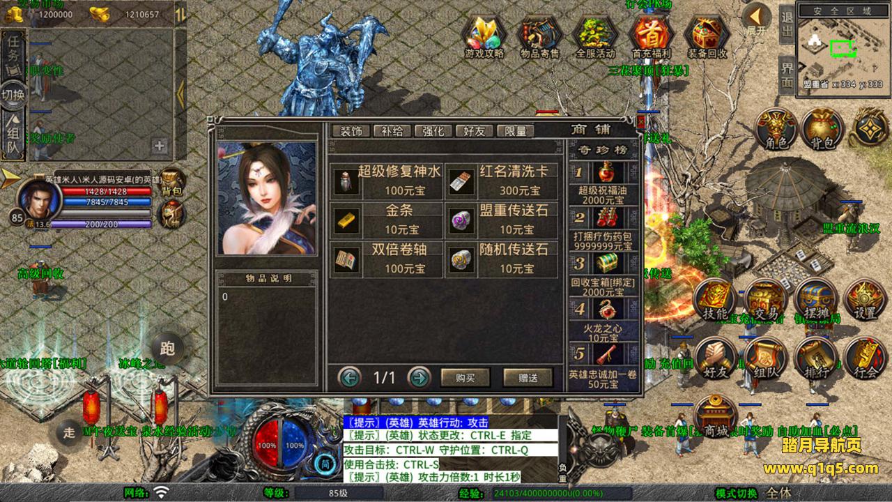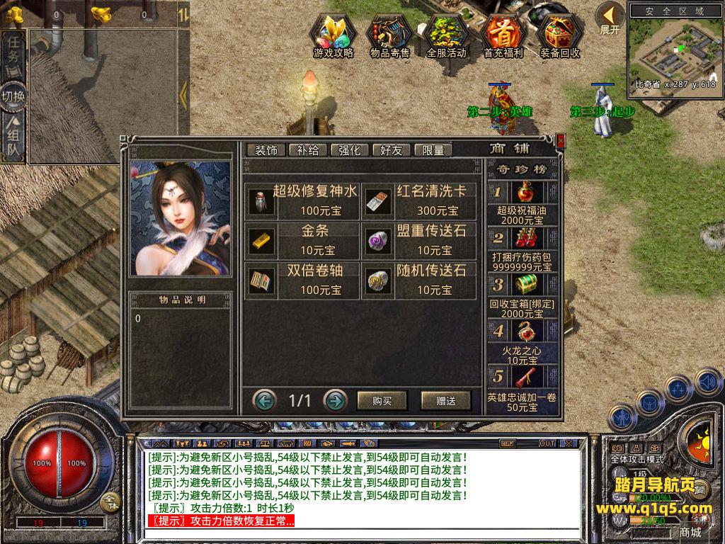 下面我们来测试下游戏里的功能看看吧。好了,其他功能就自行测试吧。更多的游戏资源可以访问www.q1q5.com下载,我们每款游戏资源均单独制作了独立的视频架设教程,让小白也可以快速上手游戏架设,快来体验自己做GM的乐趣吧!