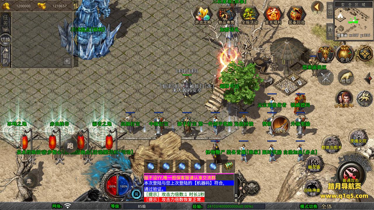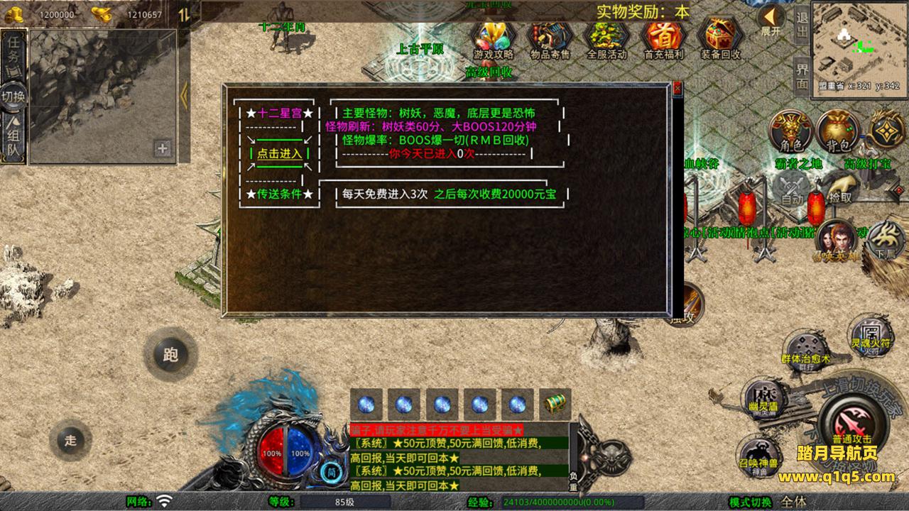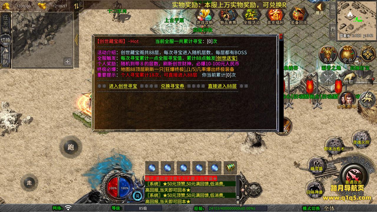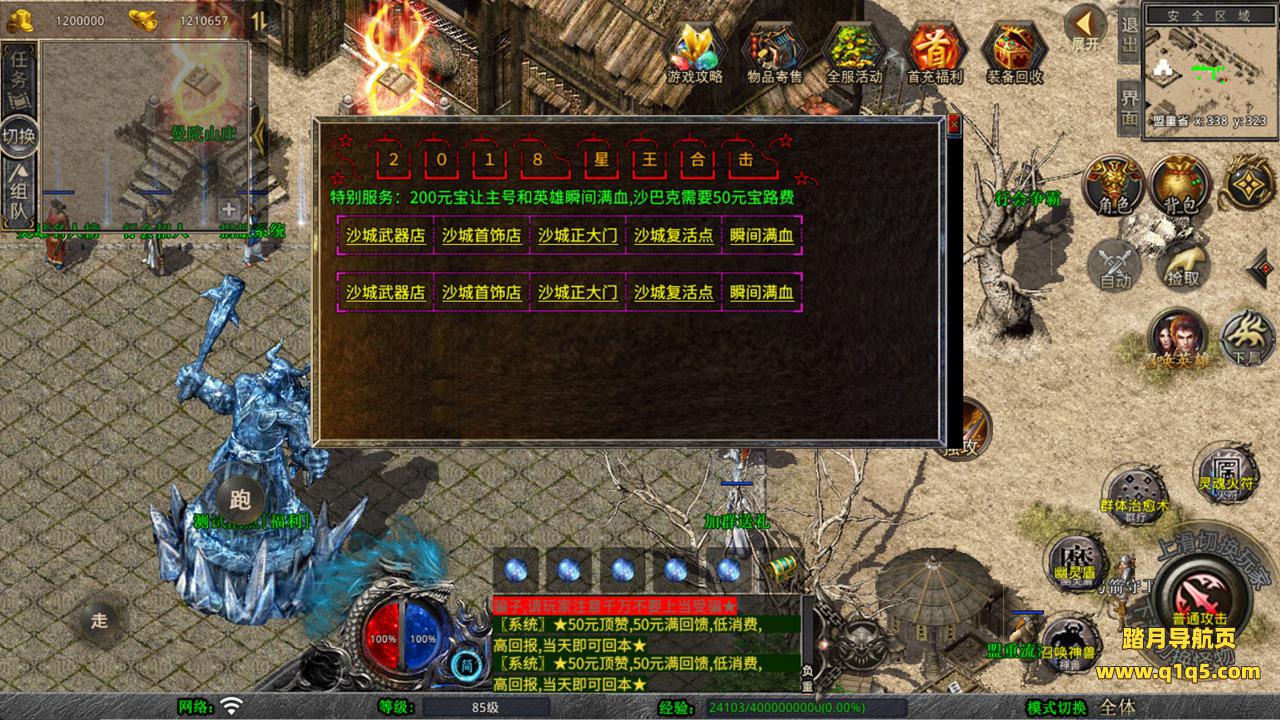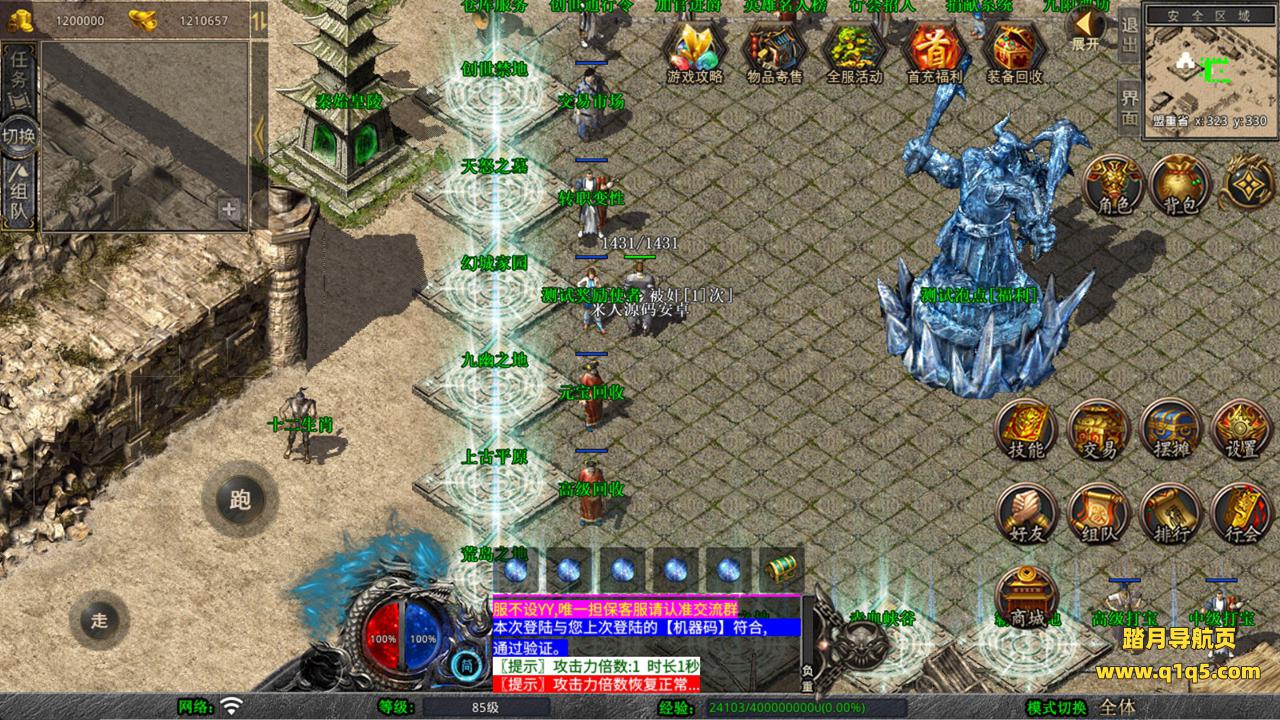 下面我们来测试下游戏里的功能看看吧。好了,其他功能就自行测试吧。更多的游戏资源可以访问www.q1q5.com下载,我们每款游戏资源均单独制作了独立的视频架设教程,让小白也可以快速上手游戏架设,快来体验自己做GM的乐趣吧!
