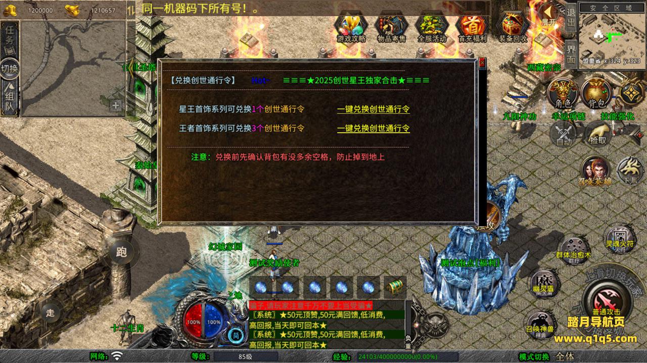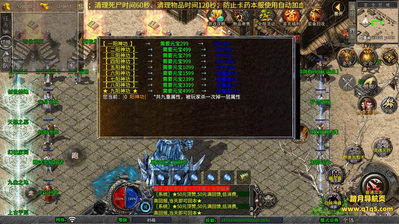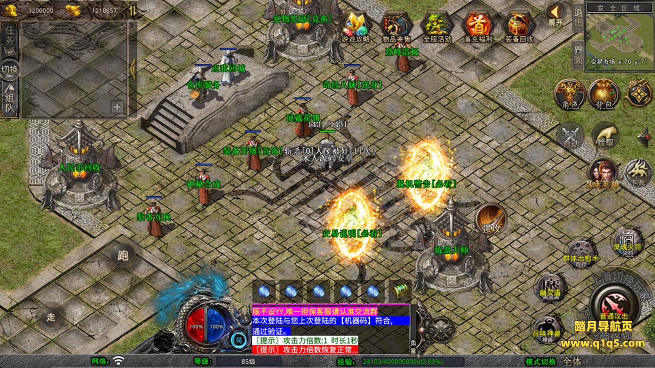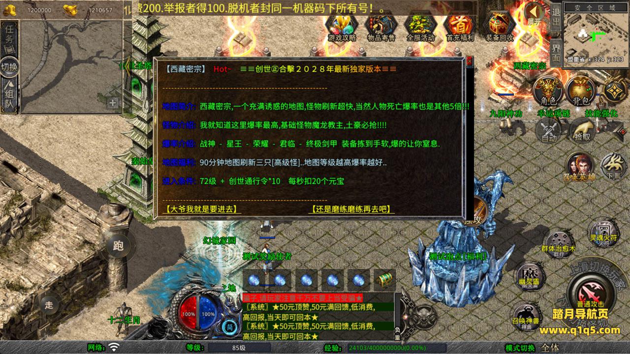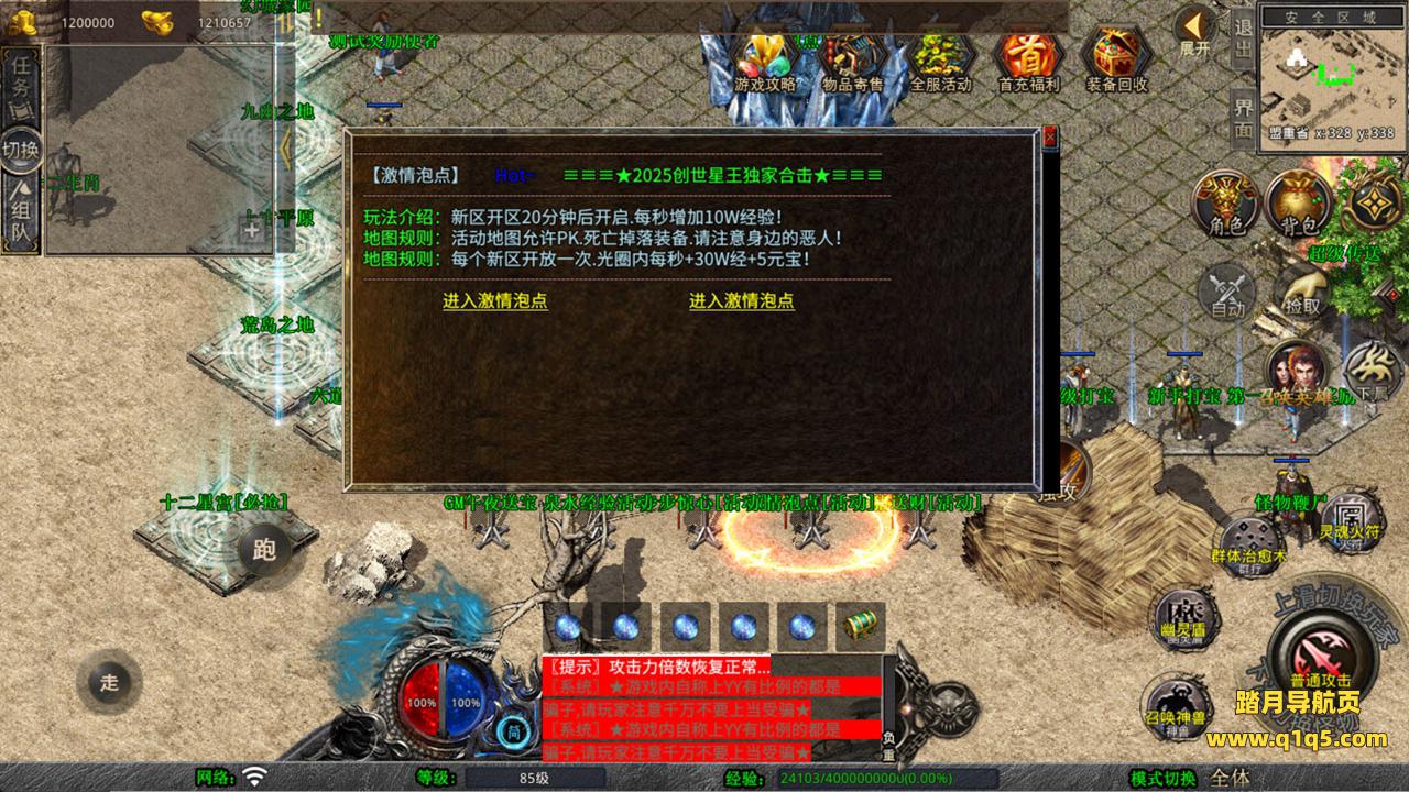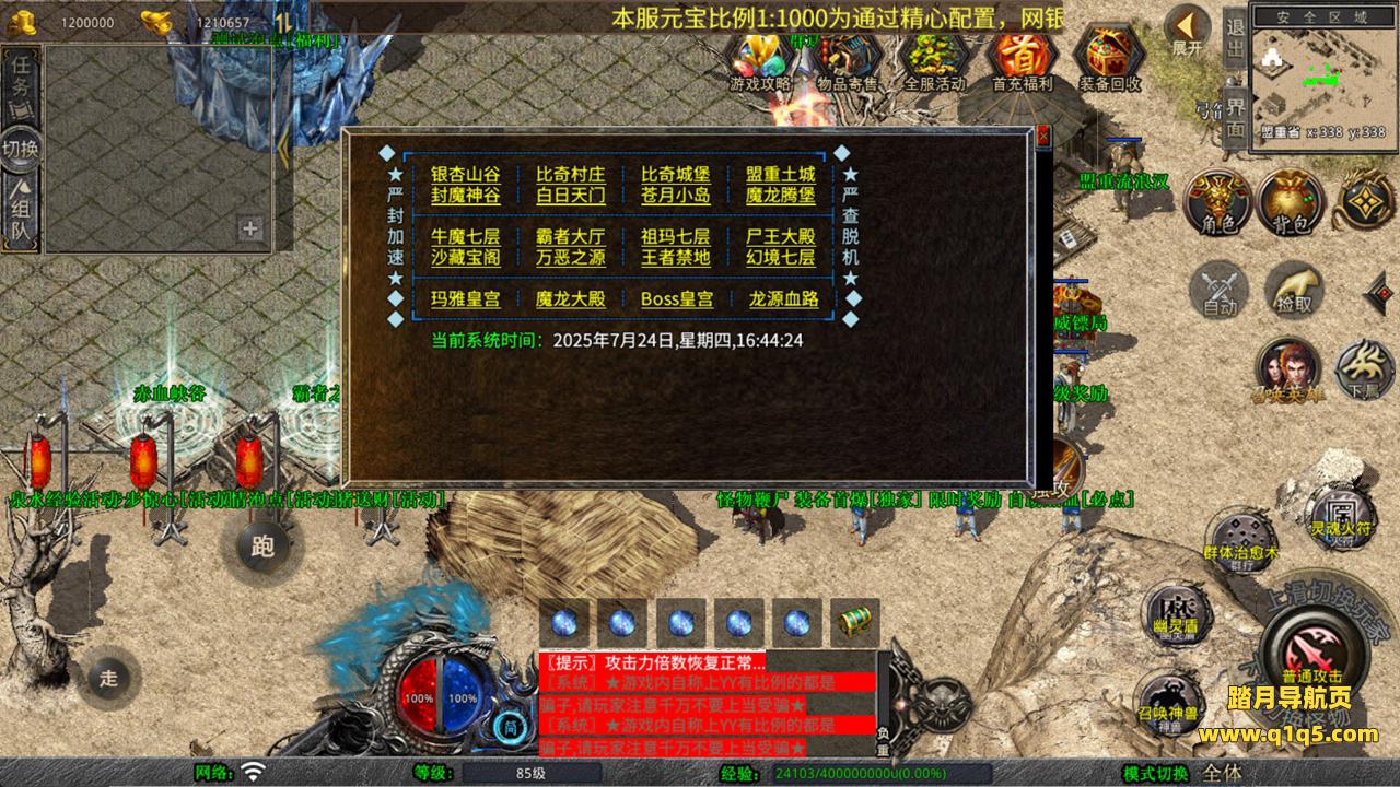 下面我们来测试下游戏里的功能看看吧。好了,其他功能就自行测试吧。更多的游戏资源可以访问www.q1q5.com下载,我们每款游戏资源均单独制作了独立的视频架设教程,让小白也可以快速上手游戏架设,快来体验自己做GM的乐趣吧!
