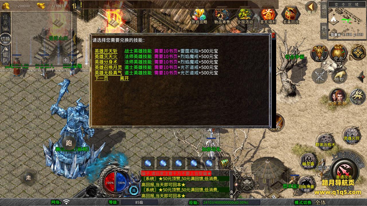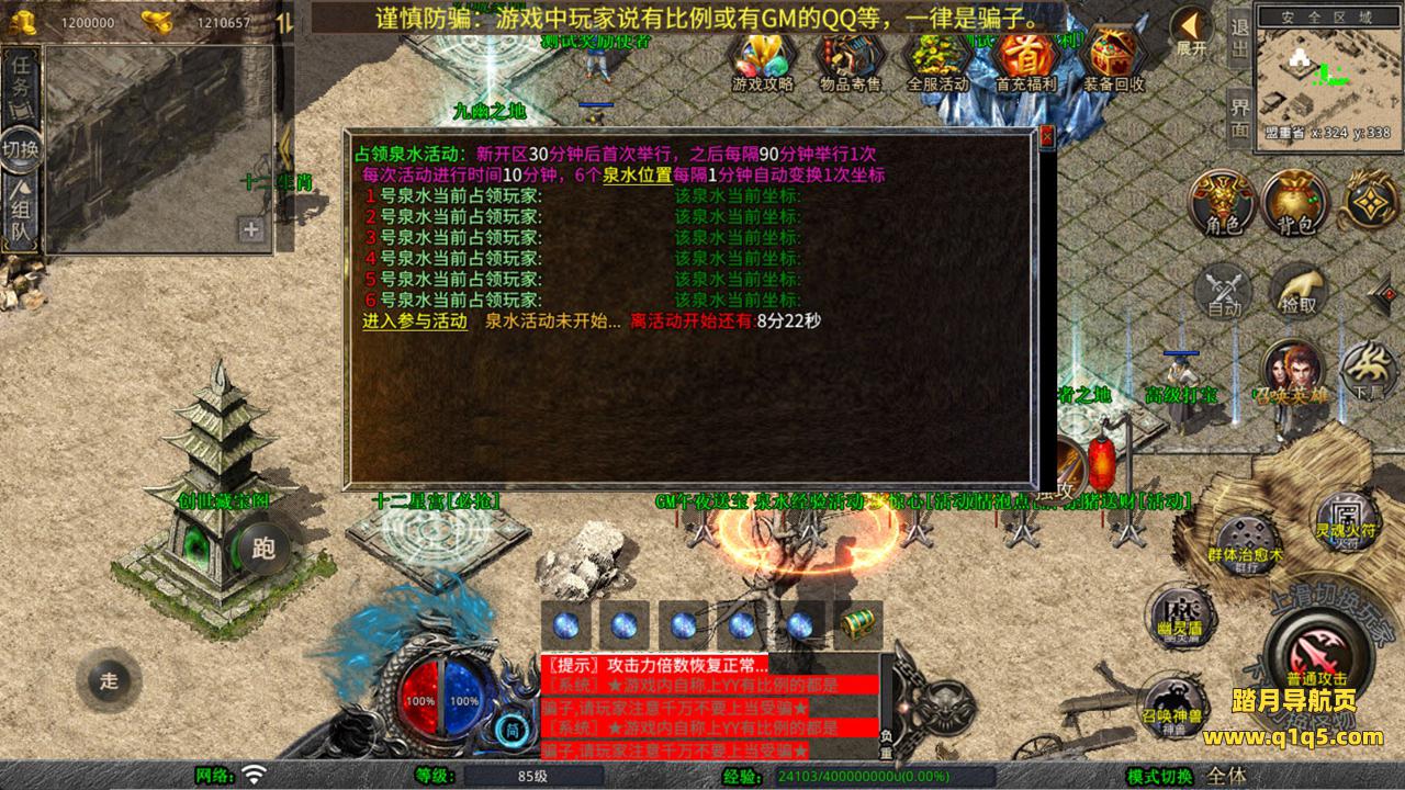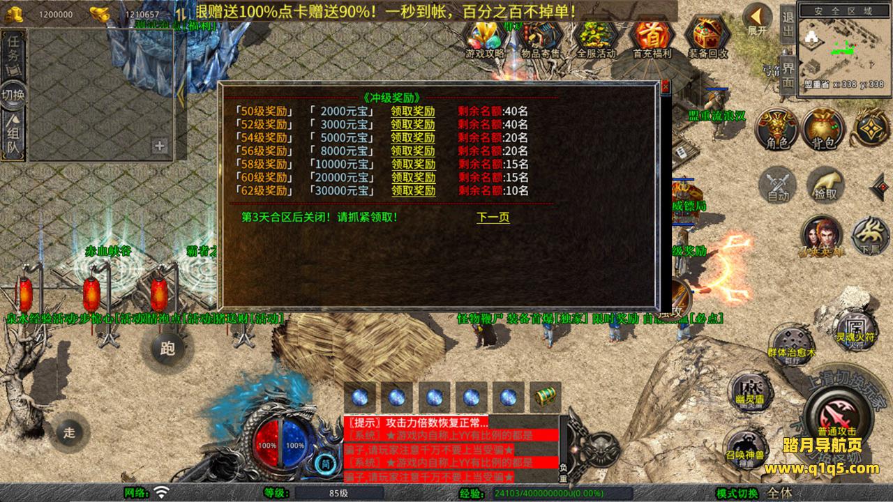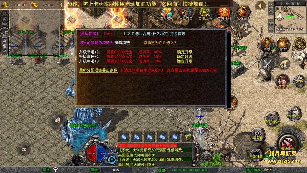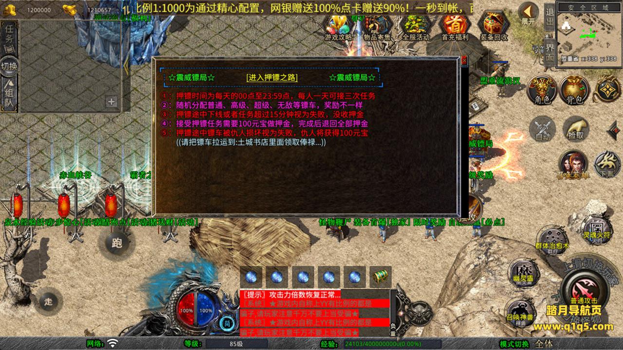 下面我们来测试下游戏里的功能看看吧。好了,其他功能就自行测试吧。更多的游戏资源可以访问www.q1q5.com下载,我们每款游戏资源均单独制作了独立的视频架设教程,让小白也可以快速上手游戏架设,快来体验自己做GM的乐趣吧!