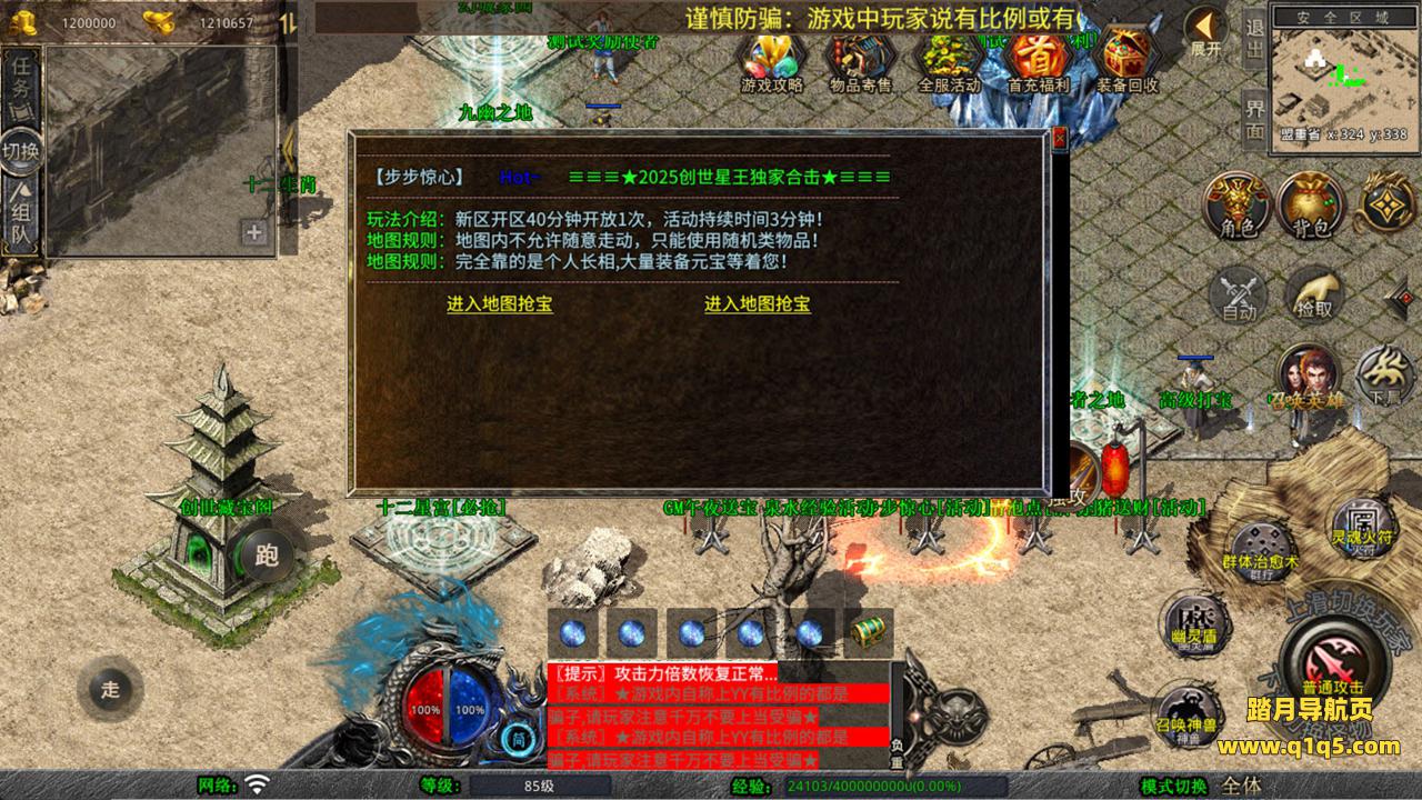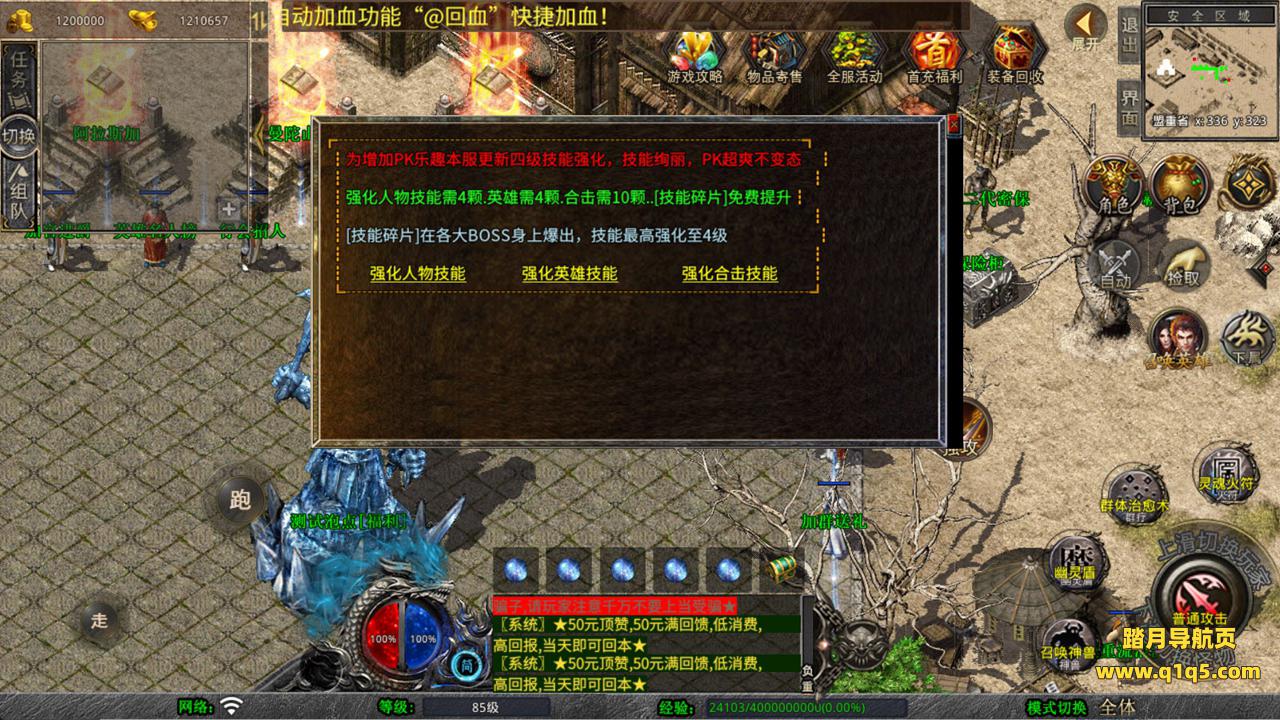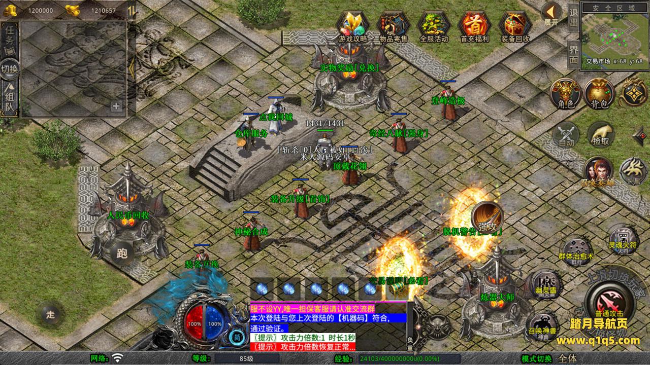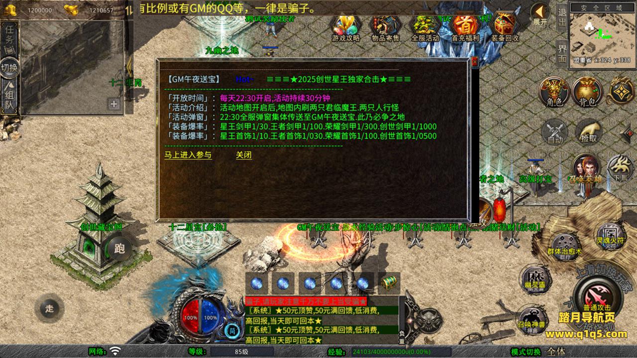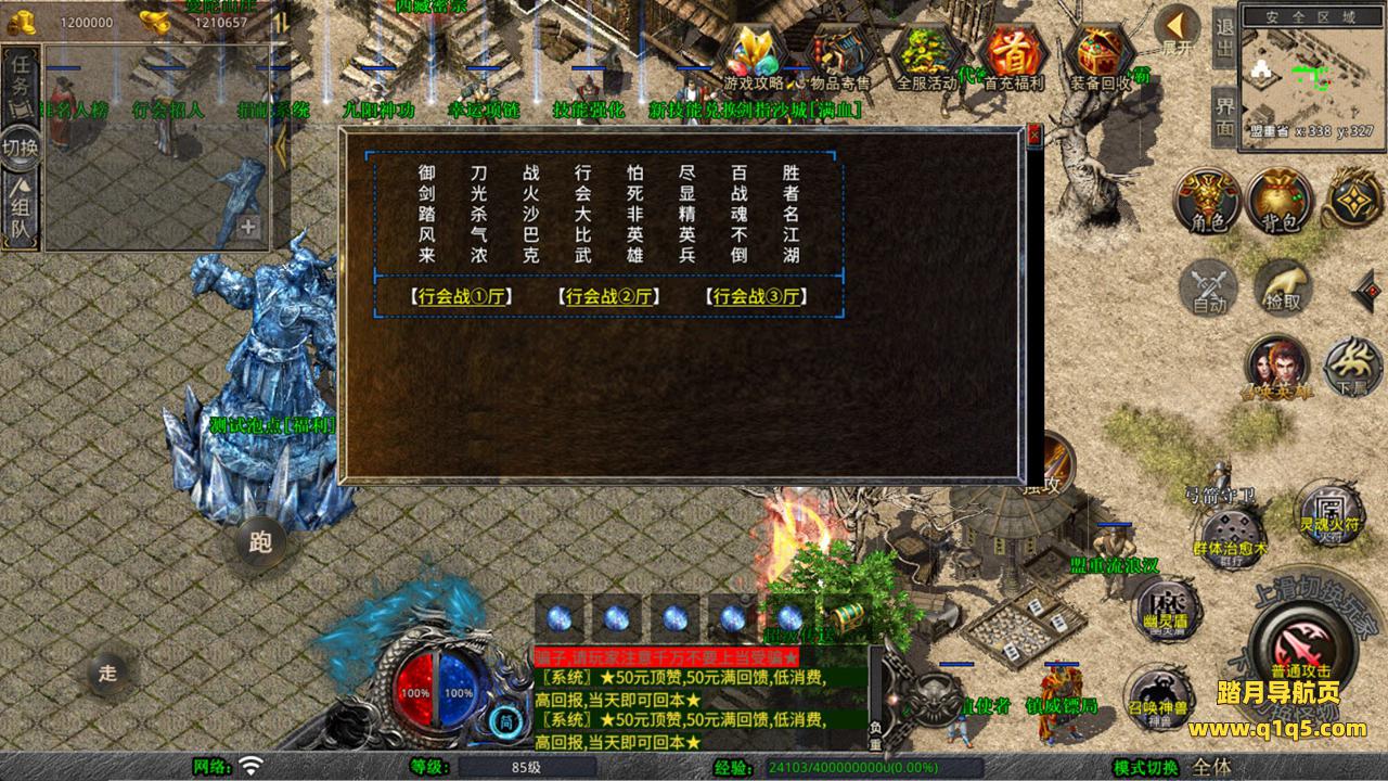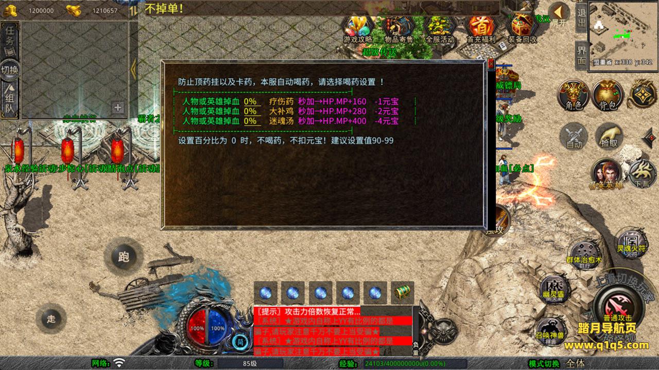 下面我们来测试下游戏里的功能看看吧。好了,其他功能就自行测试吧。更多的游戏资源可以访问www.q1q5.com下载,我们每款游戏资源均单独制作了独立的视频架设教程,让小白也可以快速上手游戏架设,快来体验自己做GM的乐趣吧!