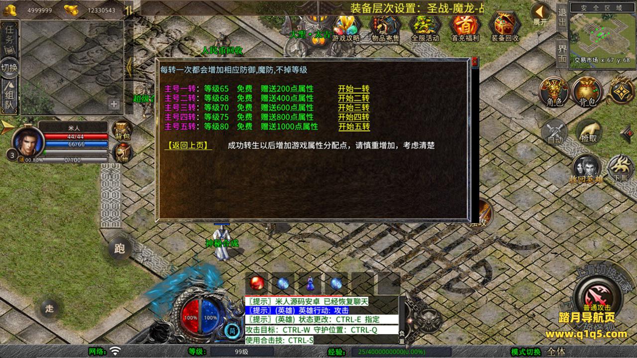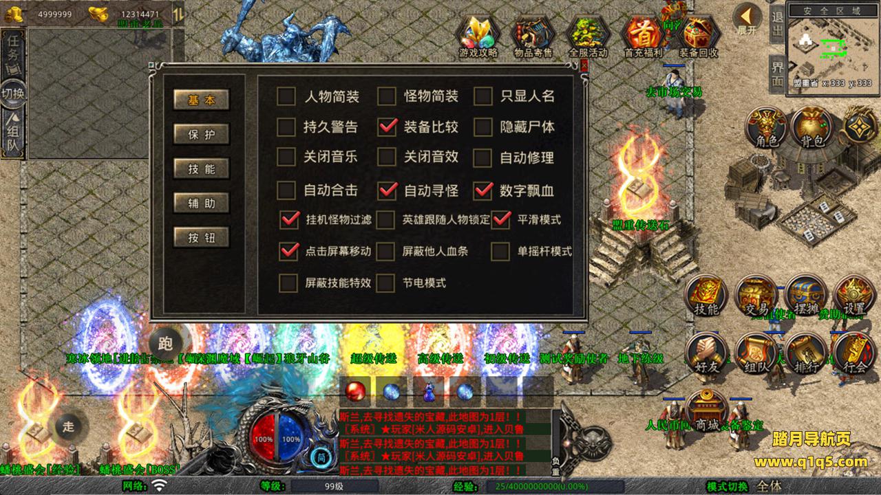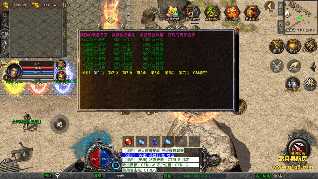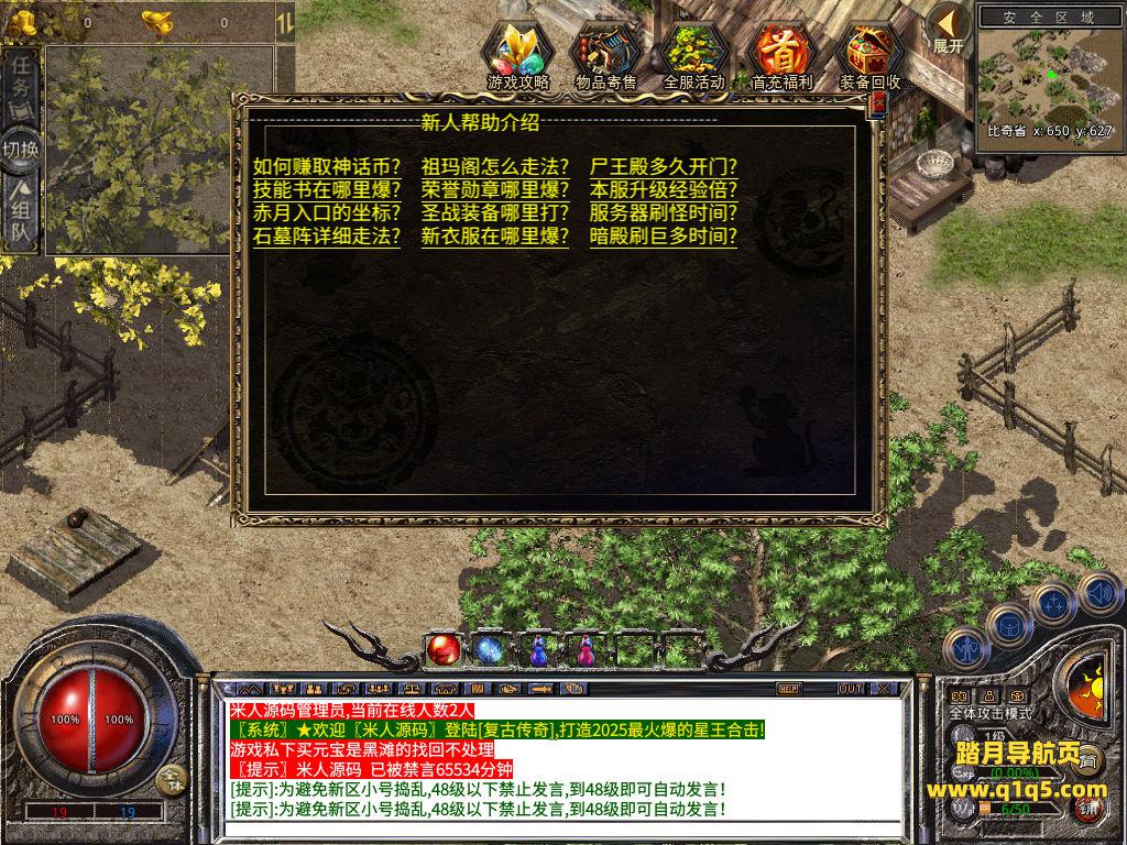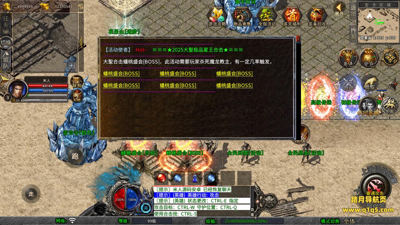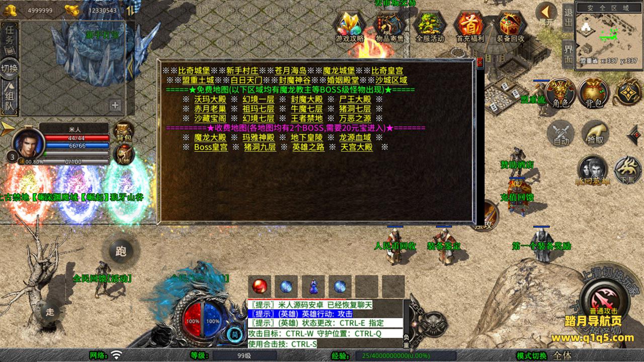 下面我们测试下游戏里的功能看看。好了,其他功能就自行测试吧。更多的游戏资源可以访问www.q1q5.com下载,我们每款游戏资源均单独制作了独立的视频架设教程,让小白也可以快速上手游戏架设,快来体验自己做GM的乐趣吧!