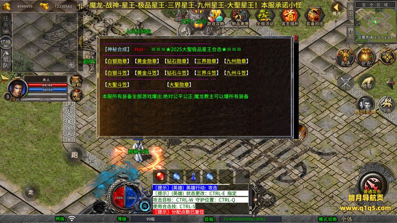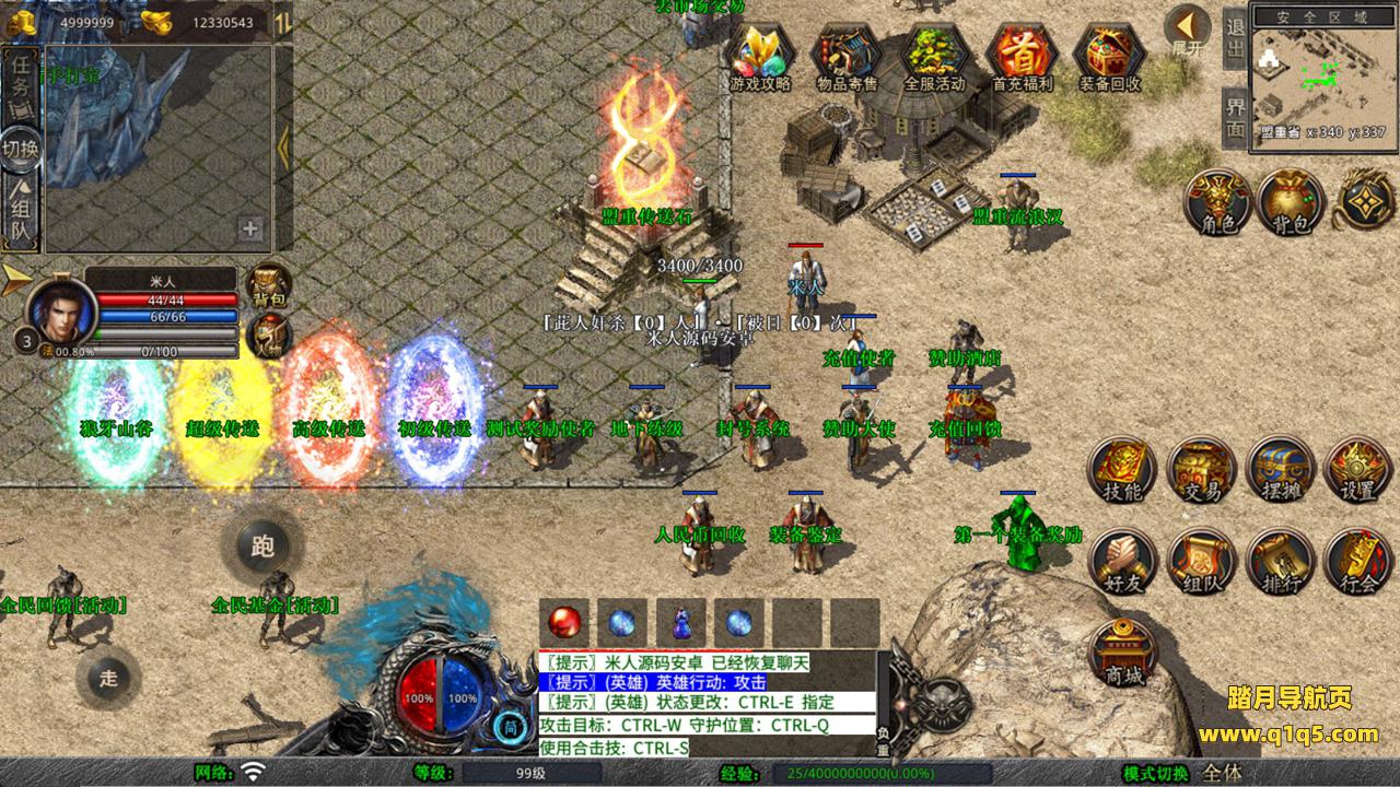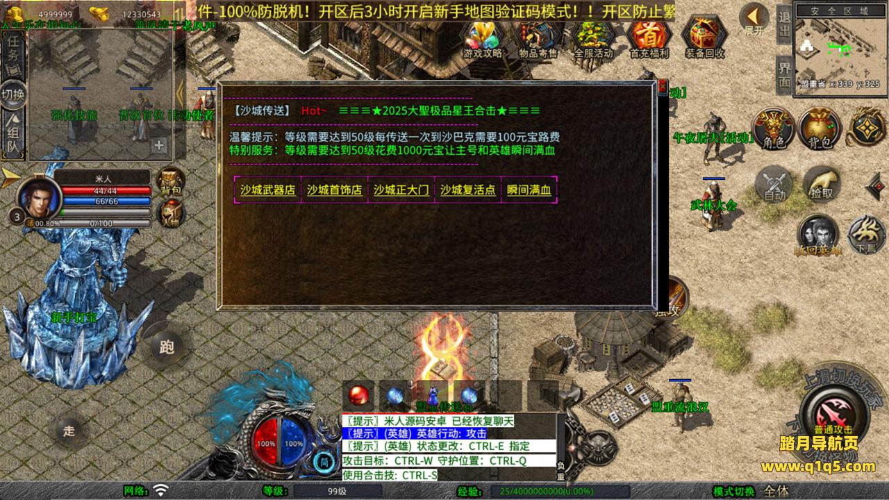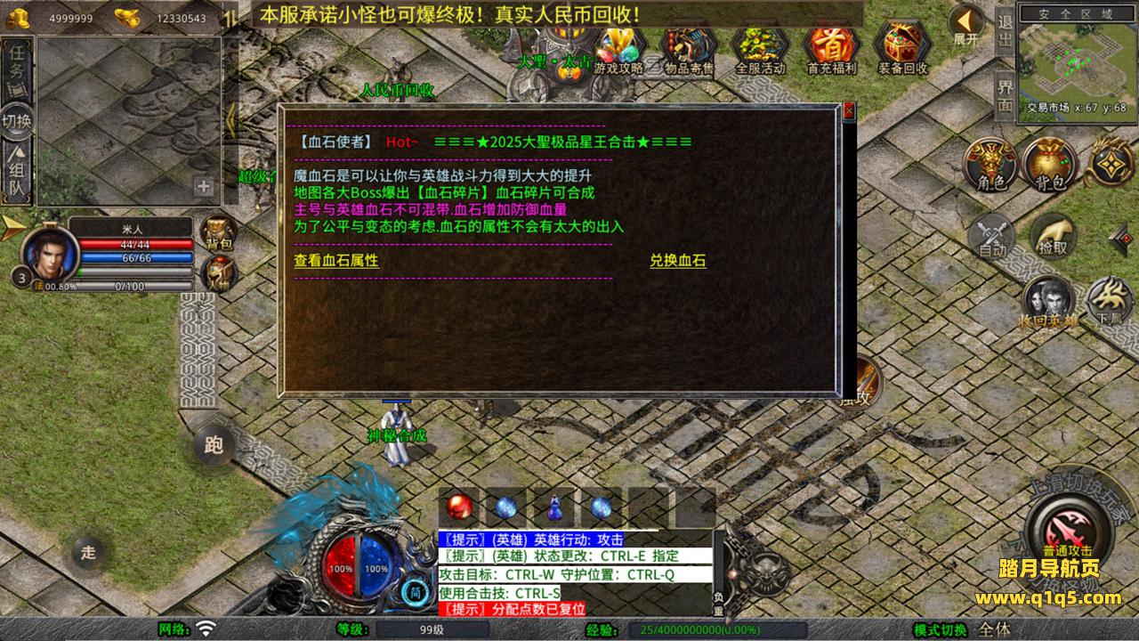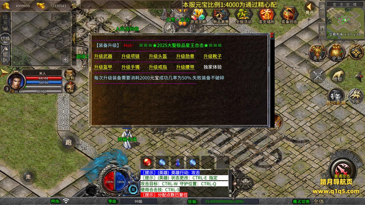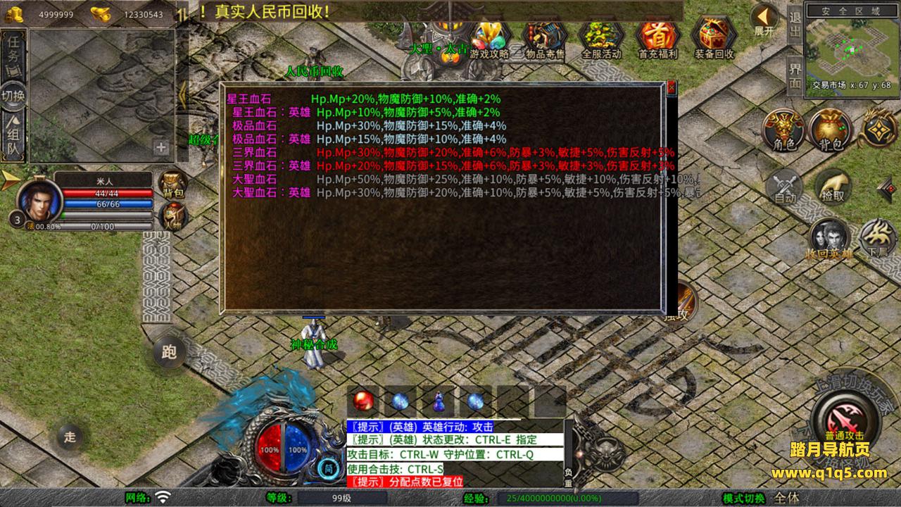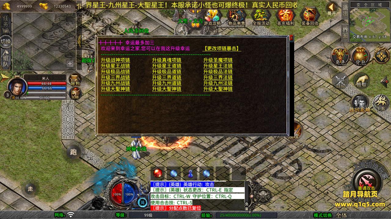 下面我们测试下游戏里的功能看看。好了,其他功能就自行测试吧。更多的游戏资源可以访问www.q1q5.com下载,我们每款游戏资源均单独制作了独立的视频架设教程,让小白也可以快速上手游戏架设,快来体验自己做GM的乐趣吧!