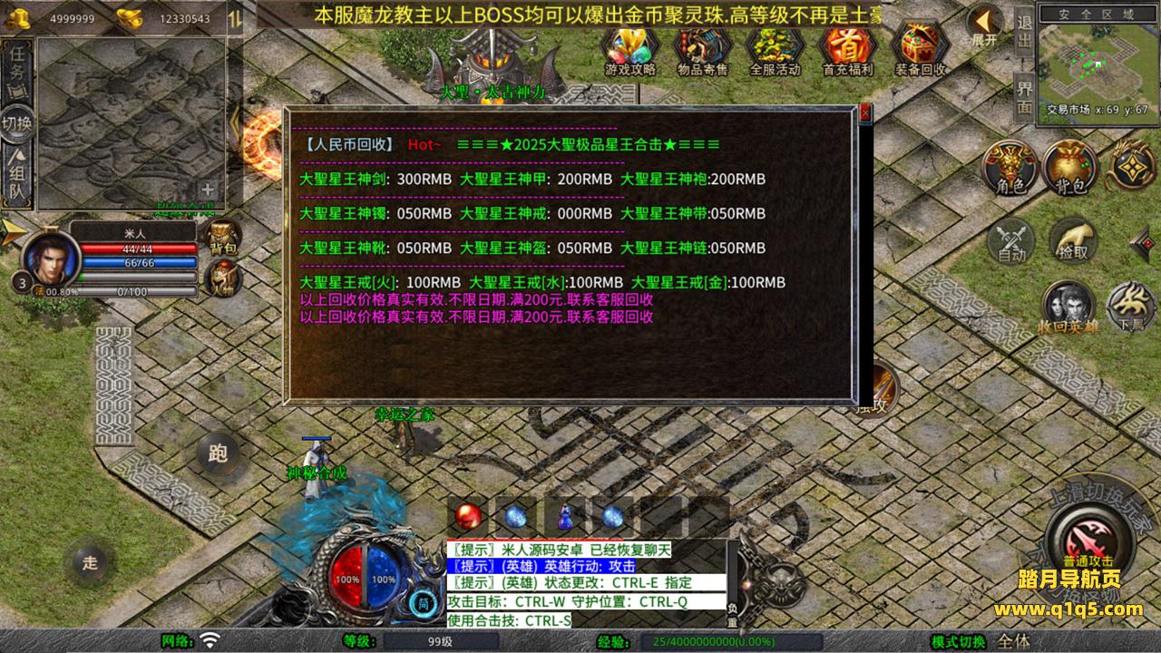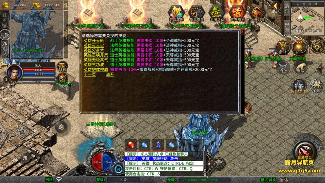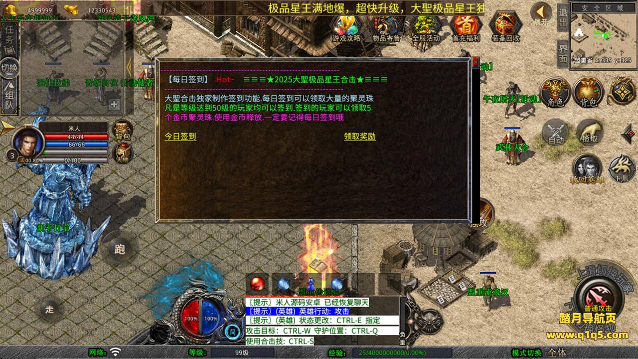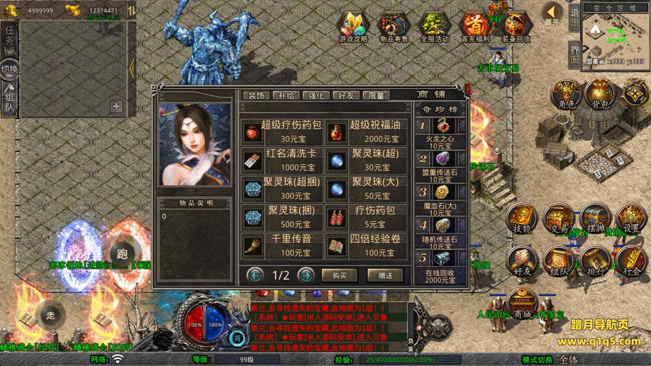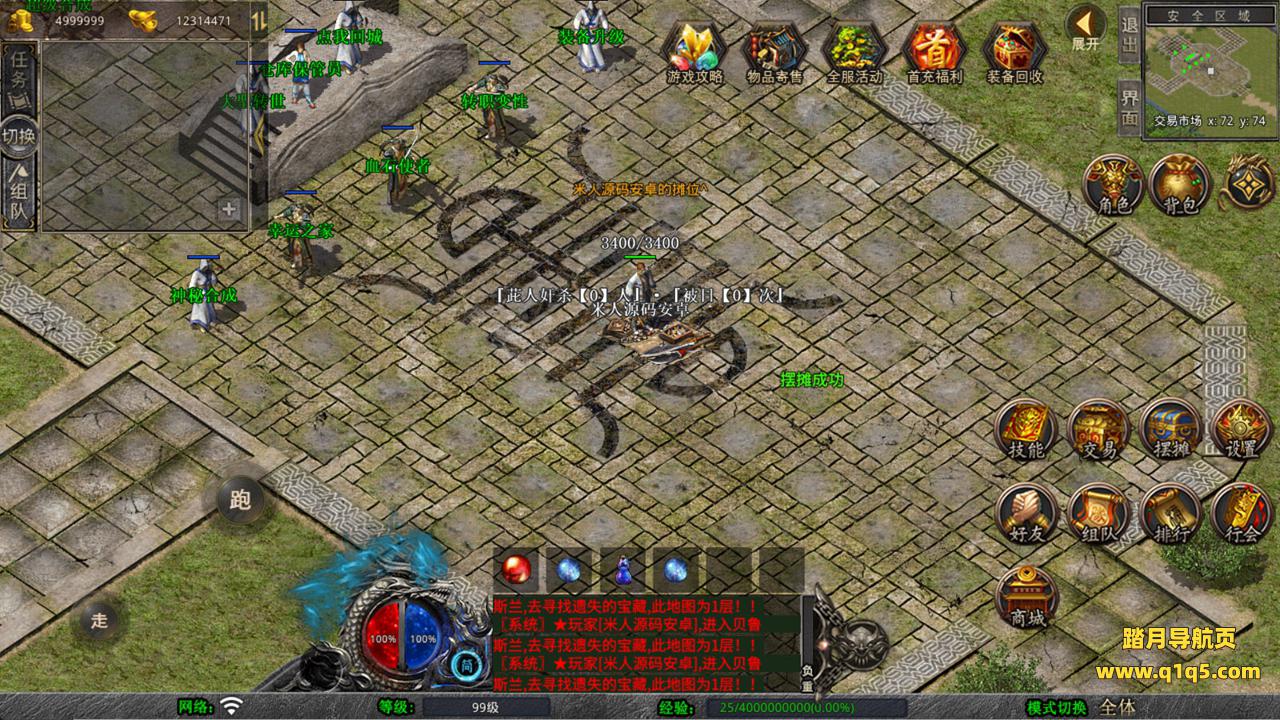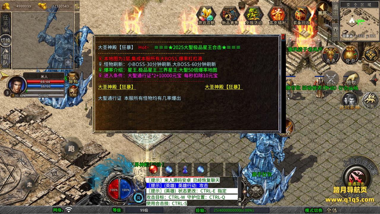 下面我们测试下游戏里的功能看看。好了,其他功能就自行测试吧。更多的游戏资源可以访问www.q1q5.com下载,我们每款游戏资源均单独制作了独立的视频架设教程,让小白也可以快速上手游戏架设,快来体验自己做GM的乐趣吧!