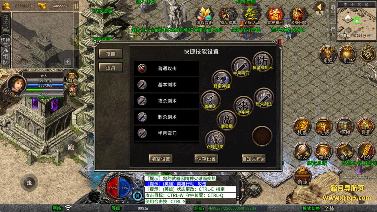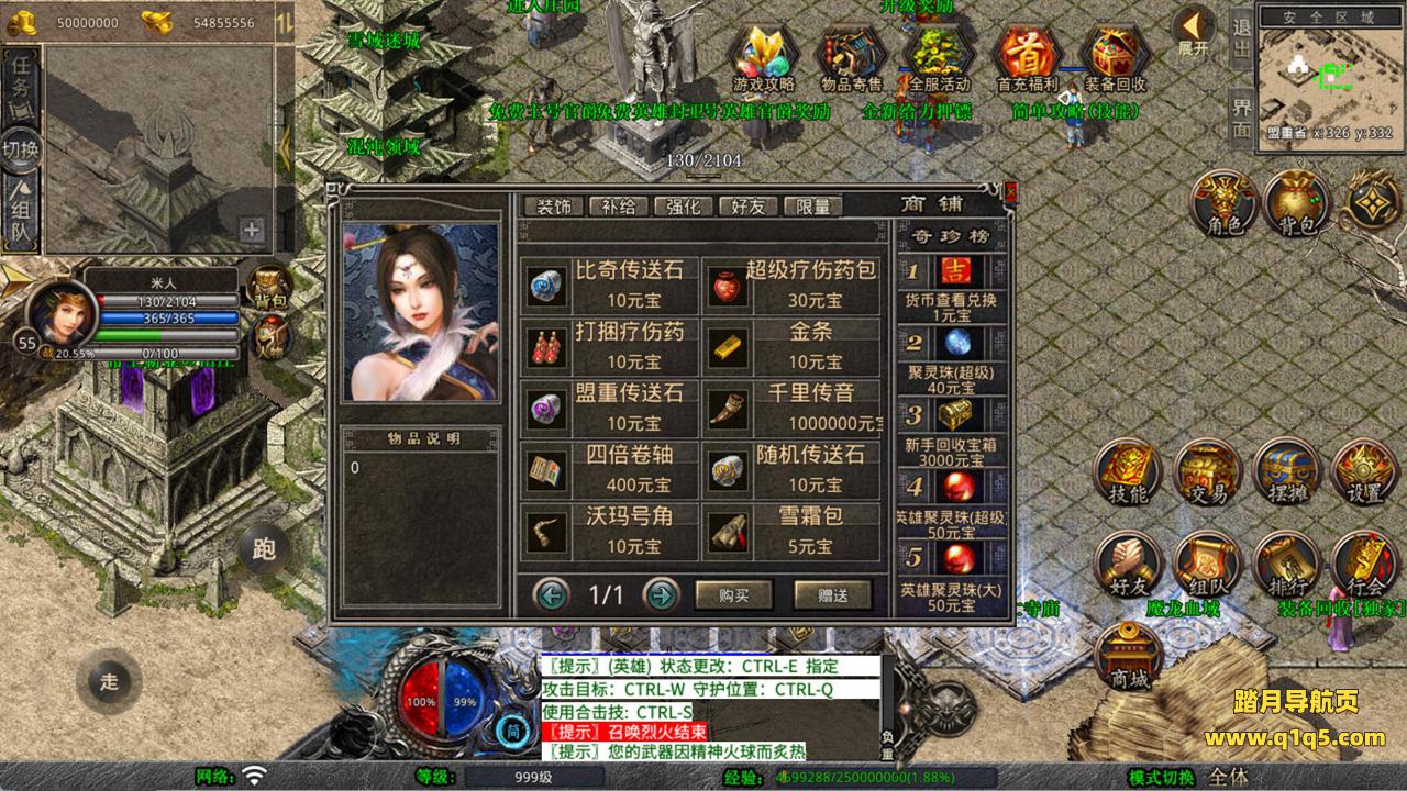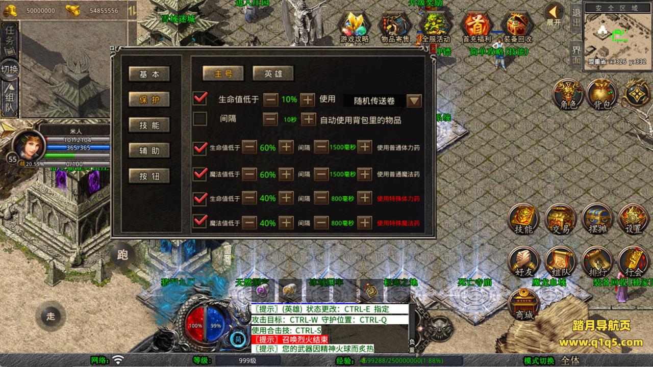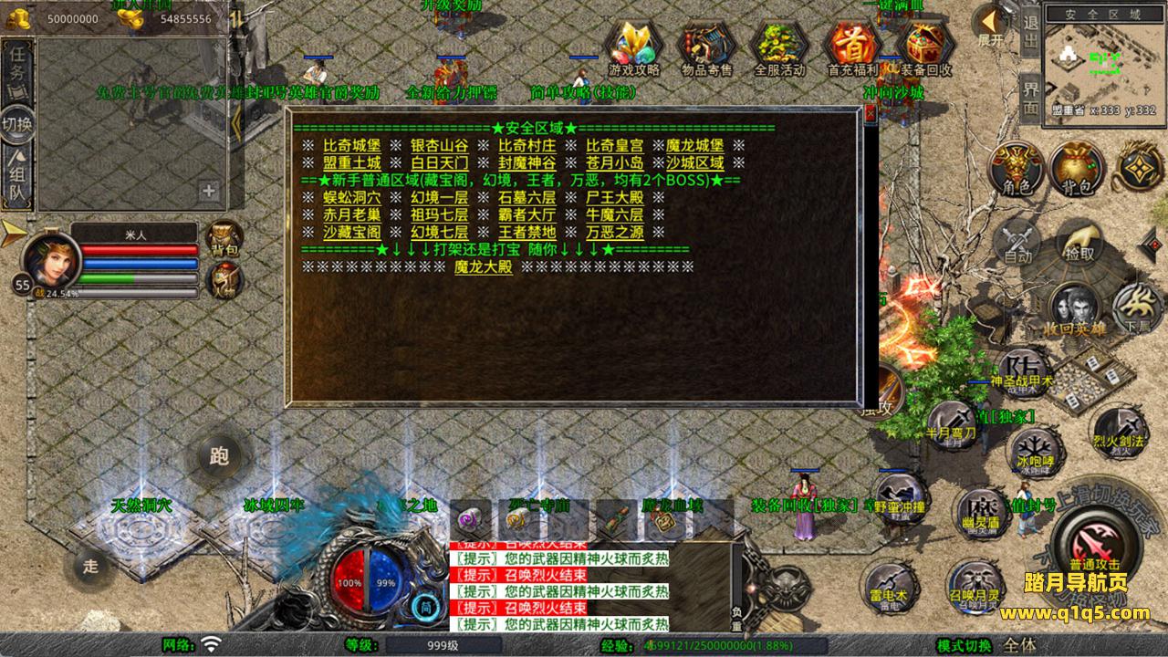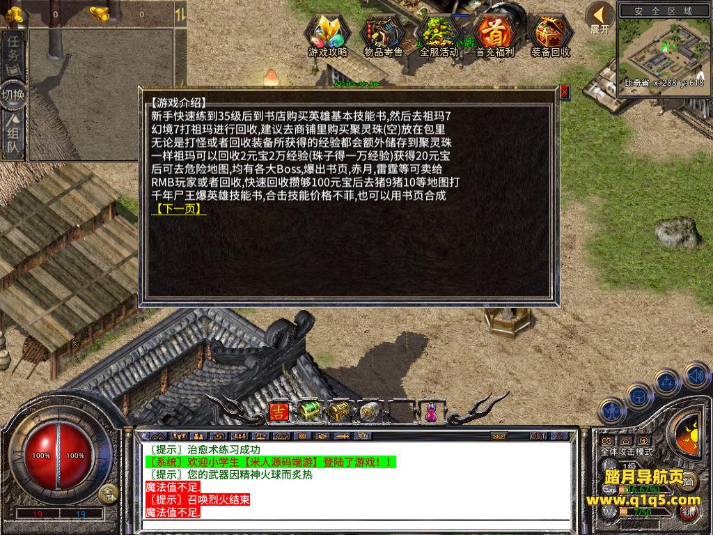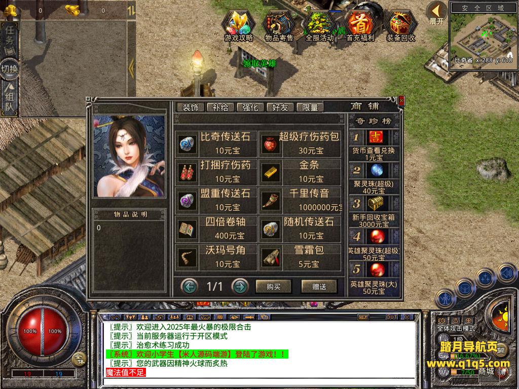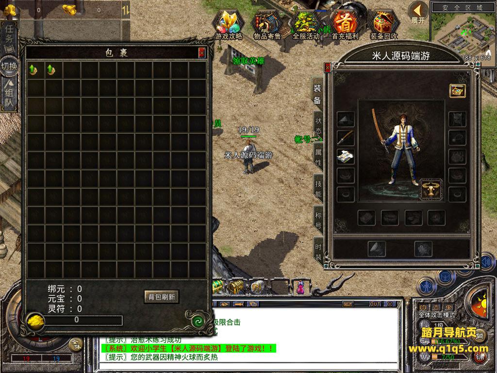 下面我们测试下游戏里的功能看看。好了,其他功能就自行测试吧。更多的游戏资源可以访问www.q1q5.com下载,我们每款游戏资源均单独制作了独立的视频架设教程,让小白也可以快速上手游戏架设,快来体验自己做GM的乐趣吧!