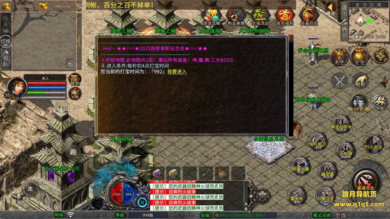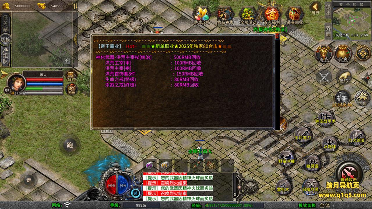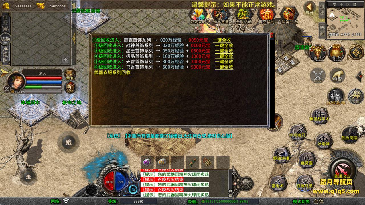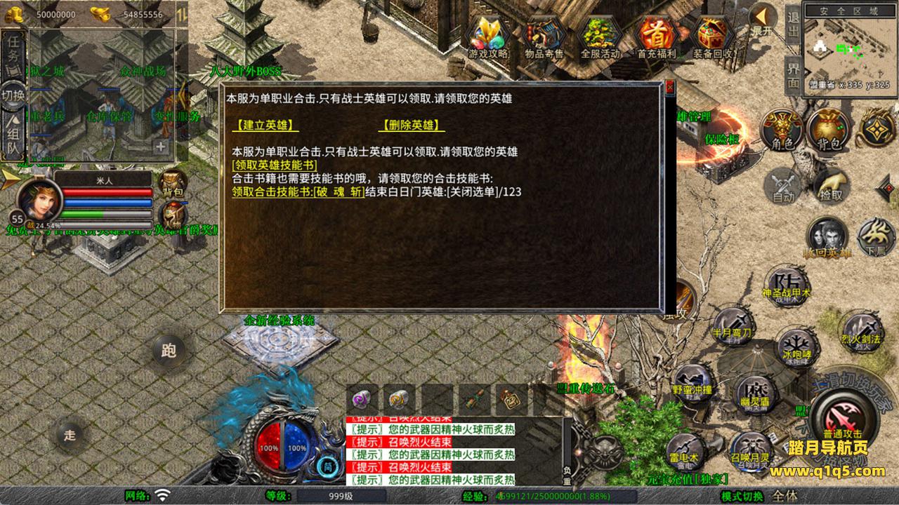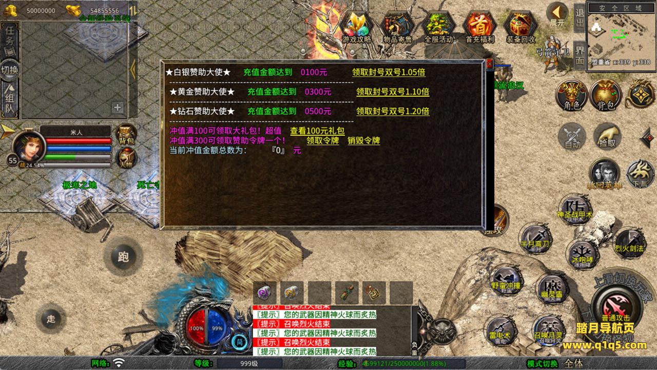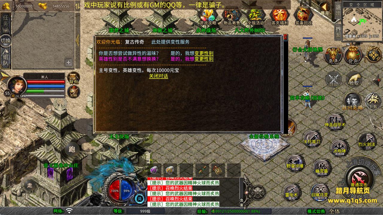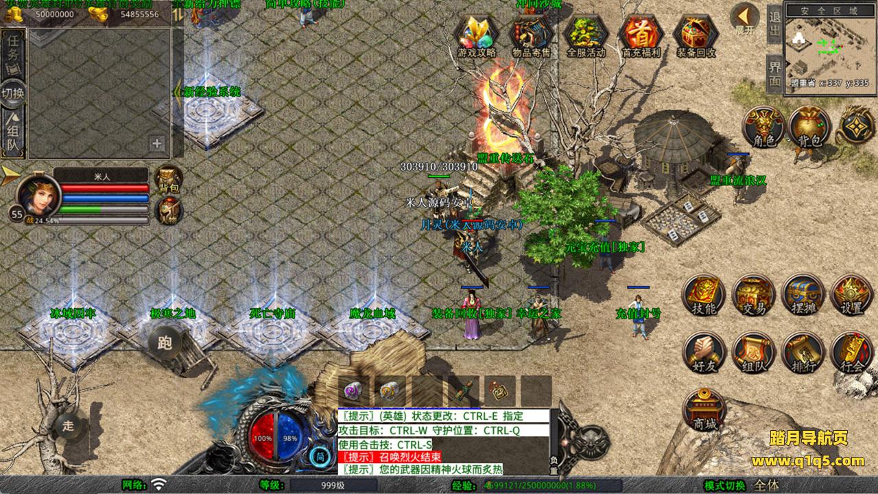 下面我们测试下游戏里的功能看看。好了,其他功能就自行测试吧。更多的游戏资源可以访问www.q1q5.com下载,我们每款游戏资源均单独制作了独立的视频架设教程,让小白也可以快速上手游戏架设,快来体验自己做GM的乐趣吧!