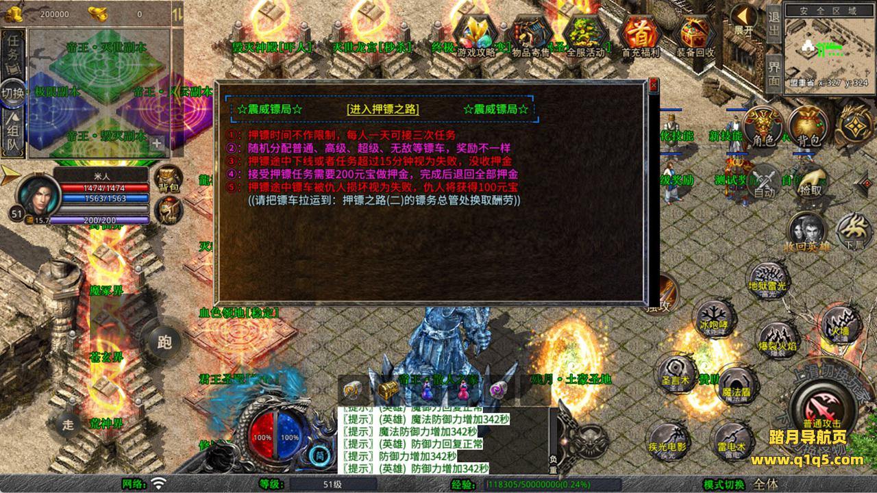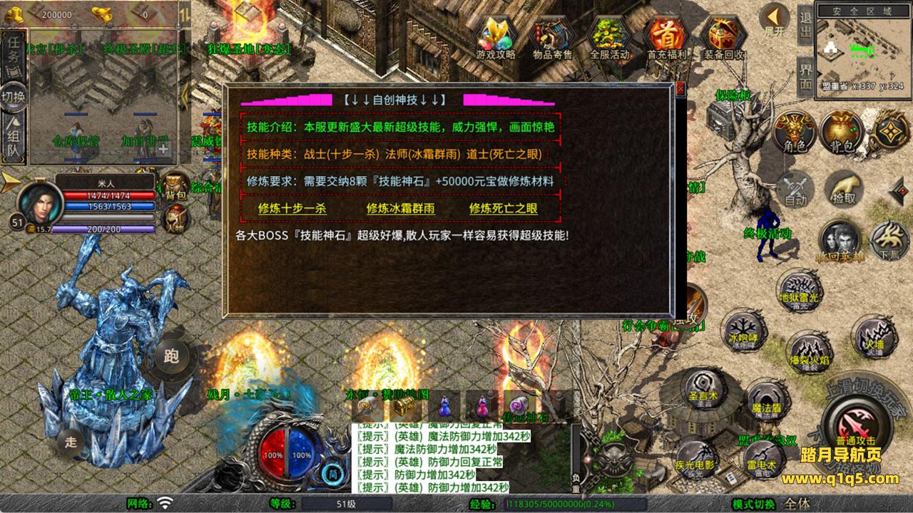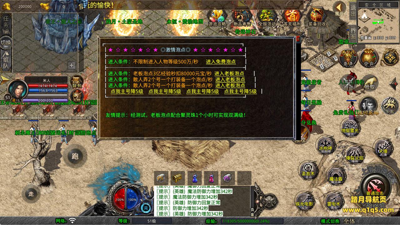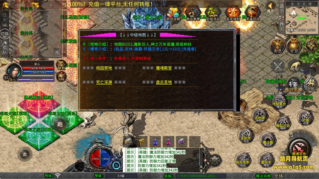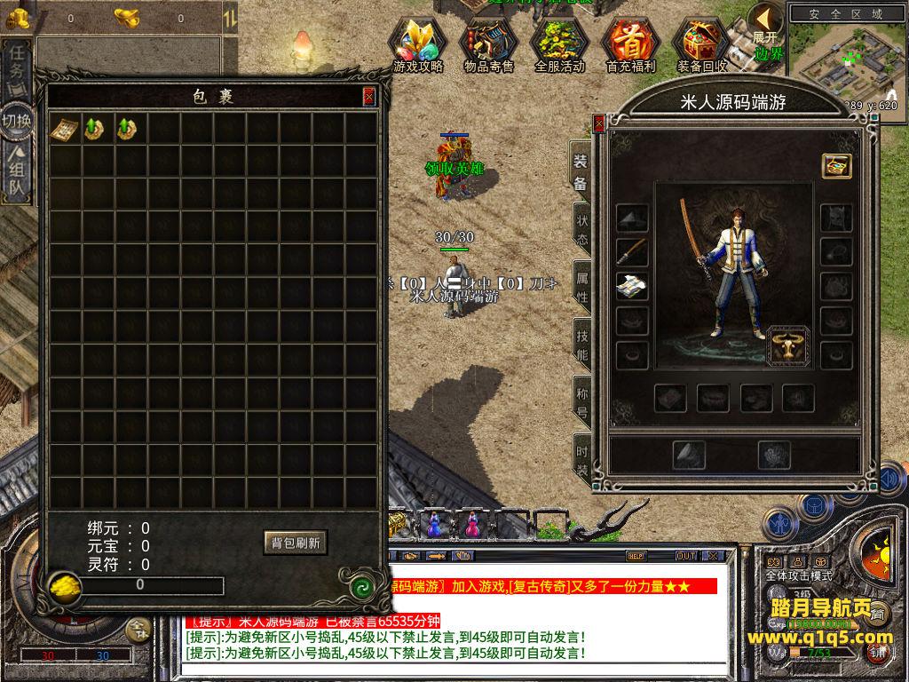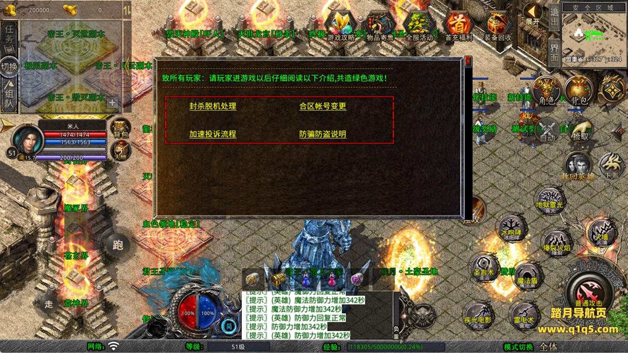 下面我们来测试下游戏里的功能看看。好了,其他功能就自行测试吧。更多的游戏资源可以访问www.q1q5.com下载,我们每款游戏资源均单独制作了独立的视频架设教程,让小白也可以快速上手游戏架设,快来体验自己做GM的乐趣吧!
