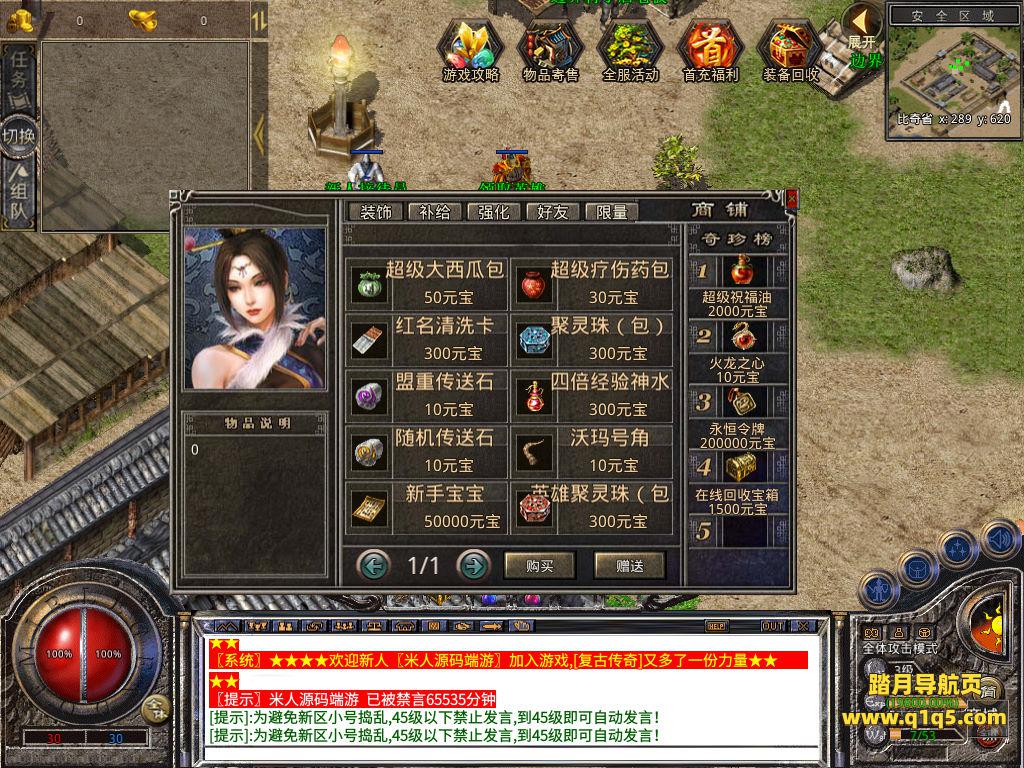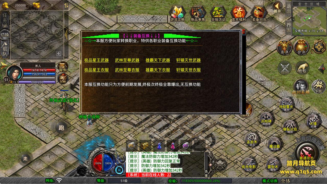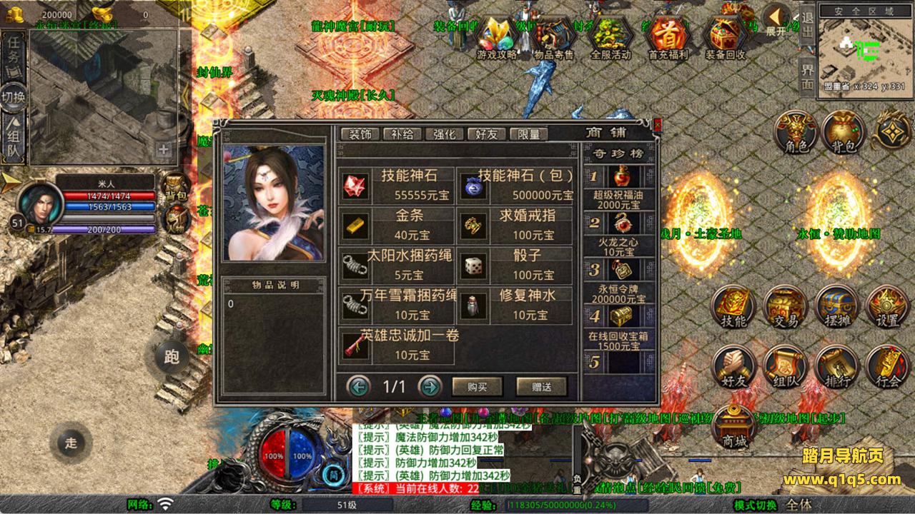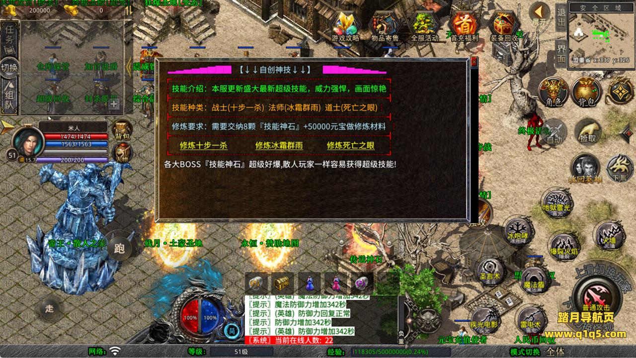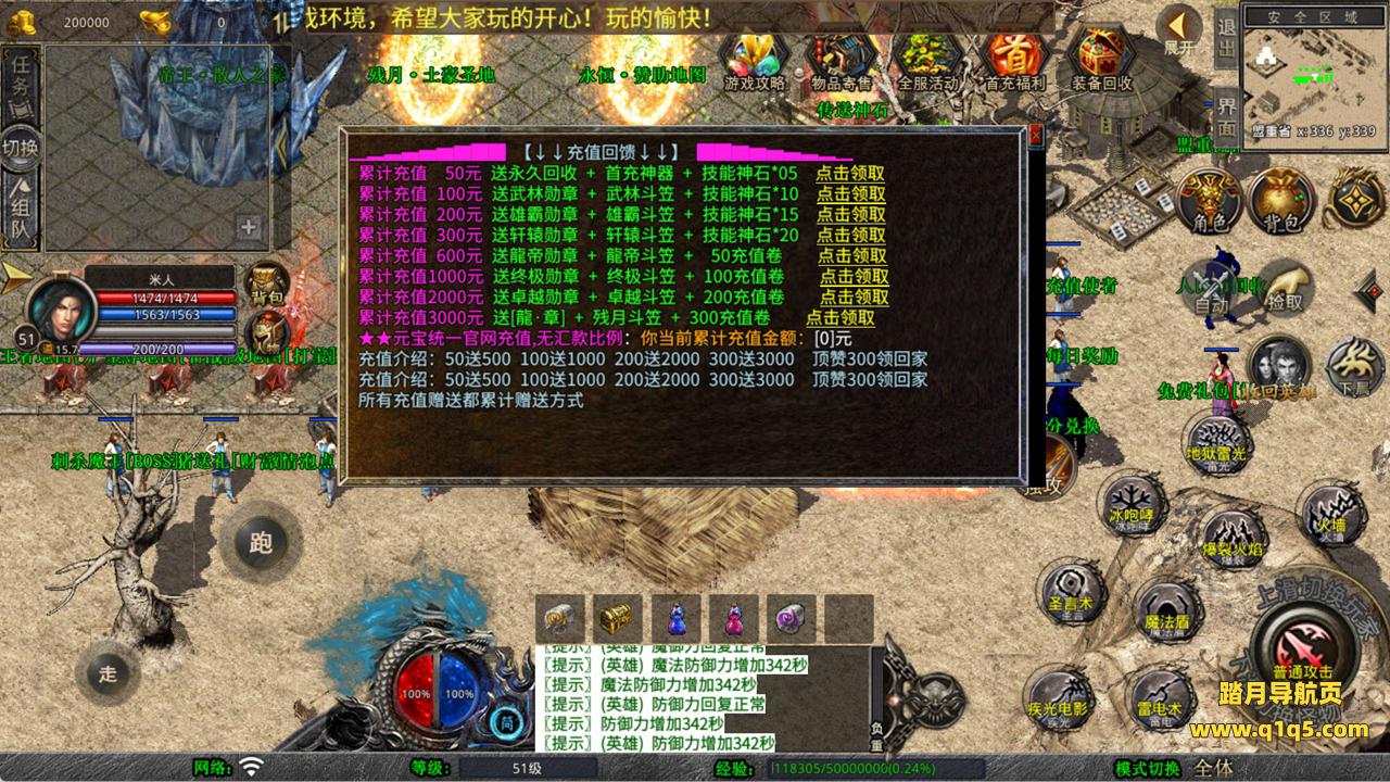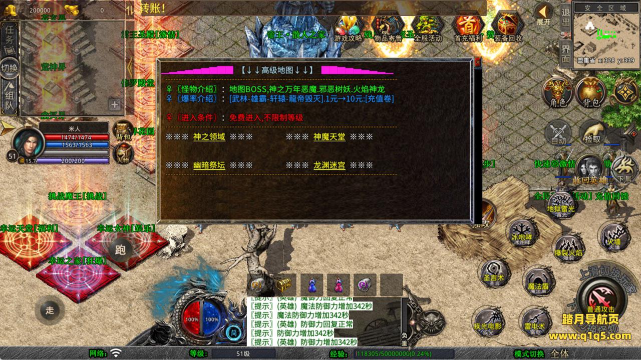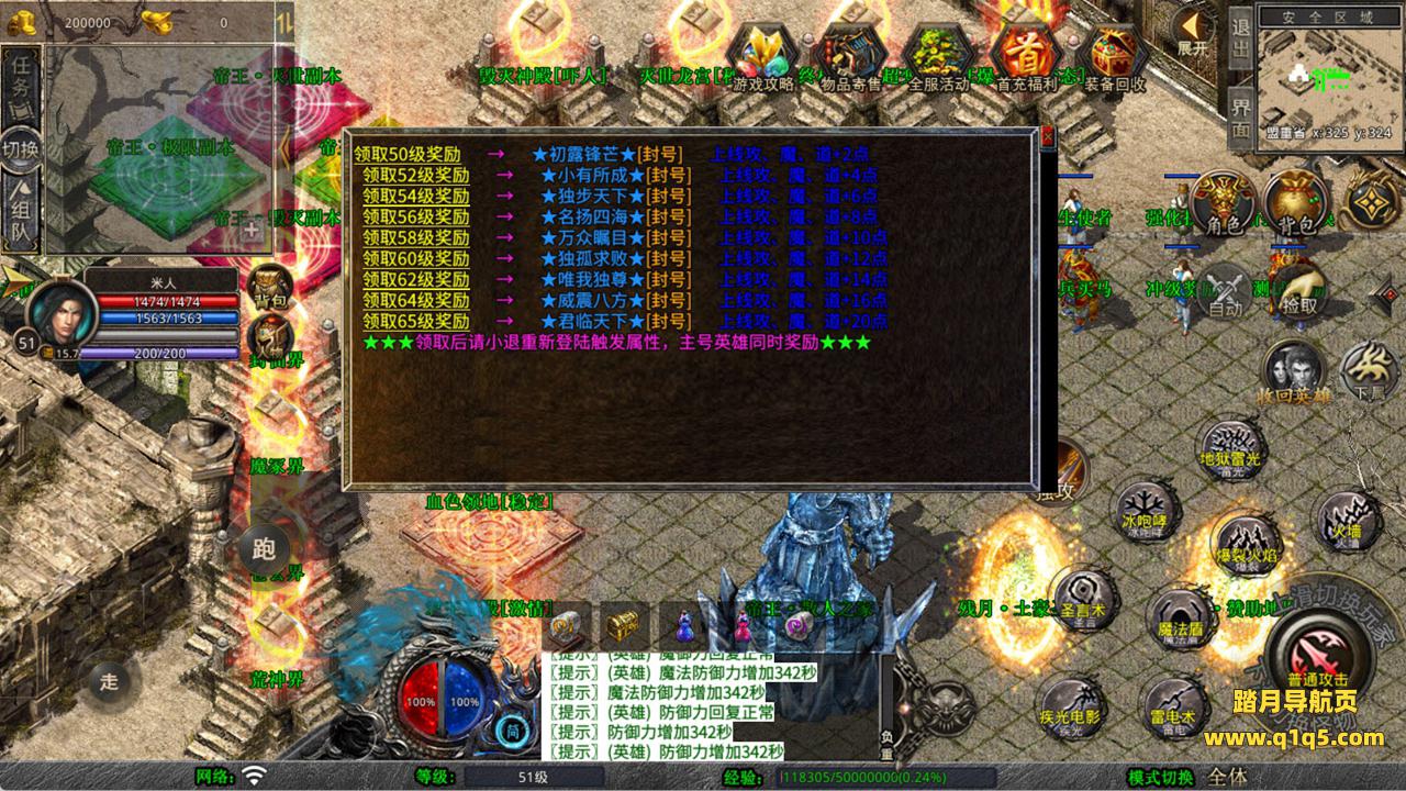 下面我们来测试下游戏里的功能看看。好了,其他功能就自行测试吧。更多的游戏资源可以访问www.q1q5.com下载,我们每款游戏资源均单独制作了独立的视频架设教程,让小白也可以快速上手游戏架设,快来体验自己做GM的乐趣吧!