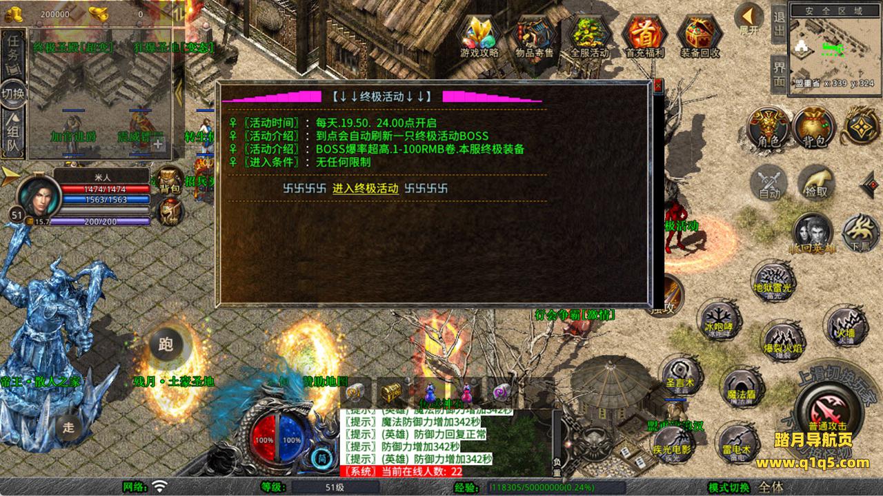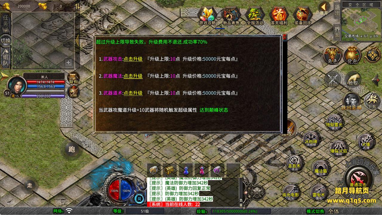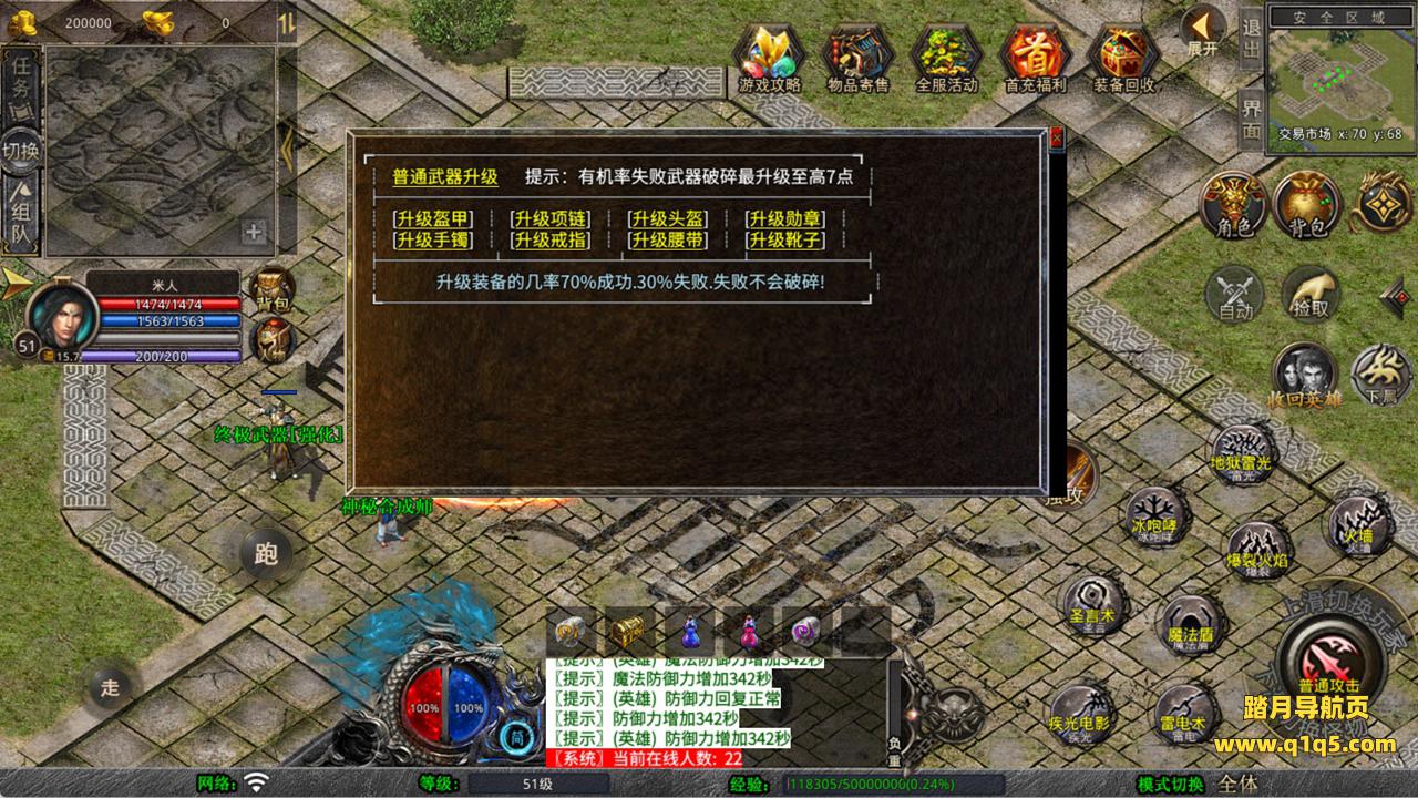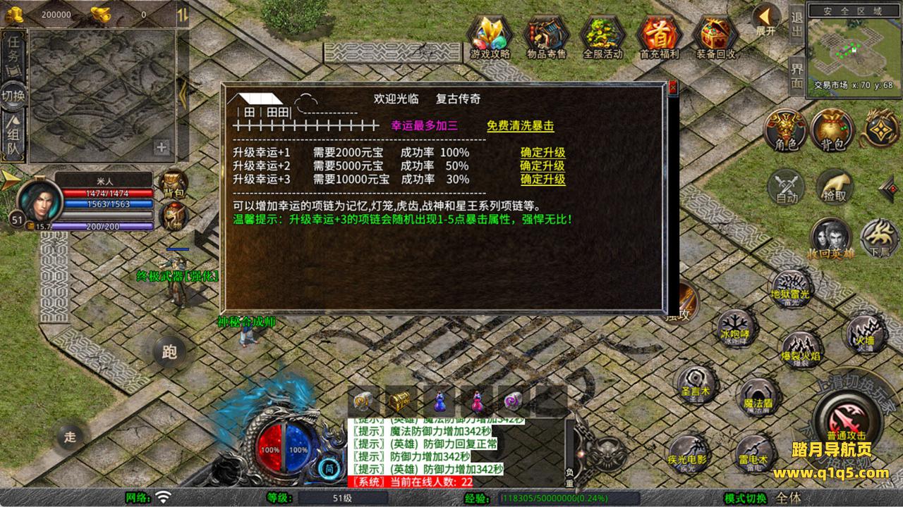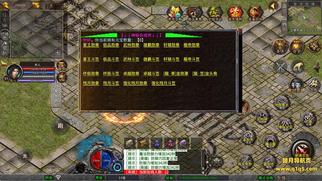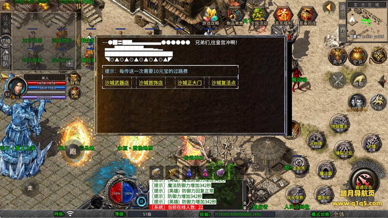 下面我们来测试下游戏里的功能看看。好了,其他功能就自行测试吧。更多的游戏资源可以访问www.q1q5.com下载,我们每款游戏资源均单独制作了独立的视频架设教程,让小白也可以快速上手游戏架设,快来体验自己做GM的乐趣吧!