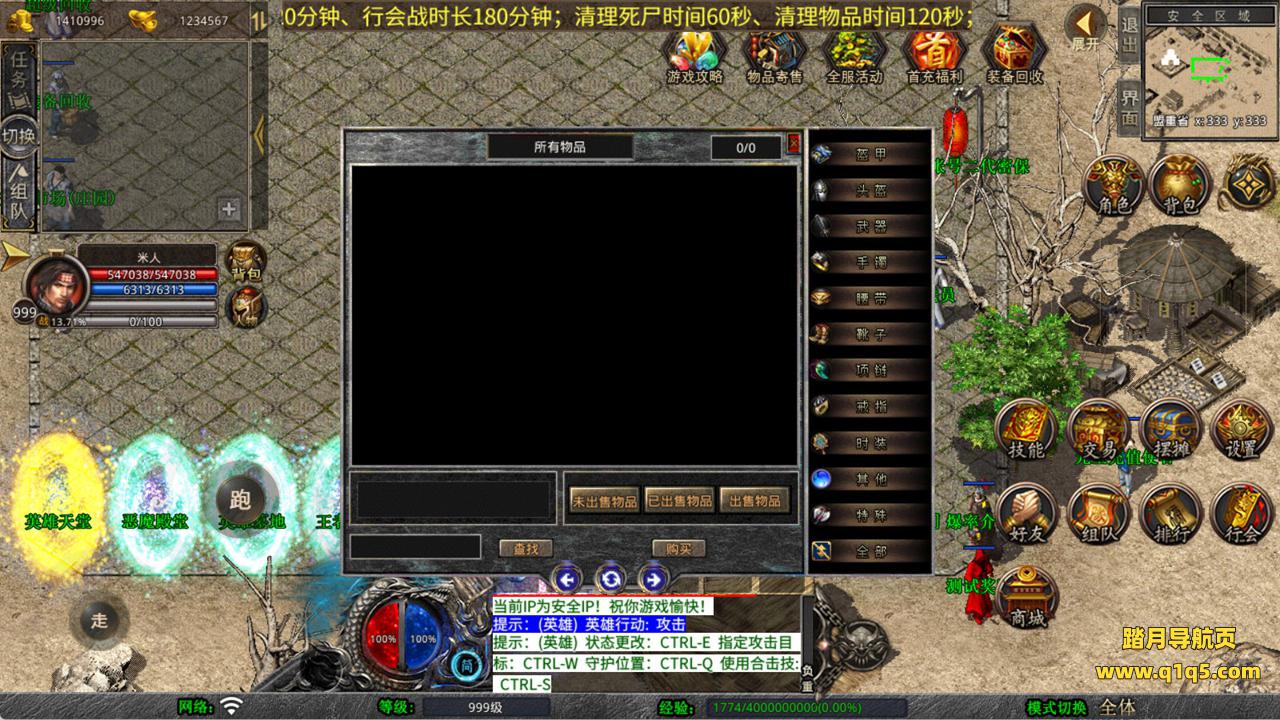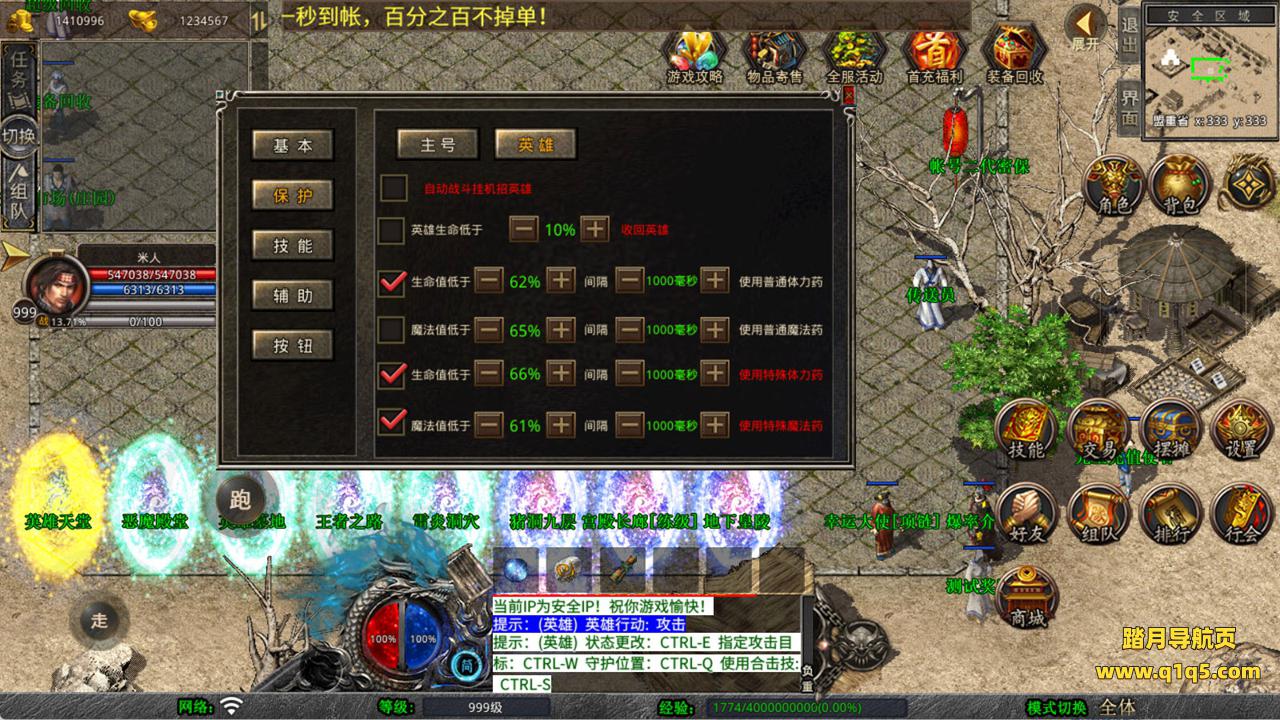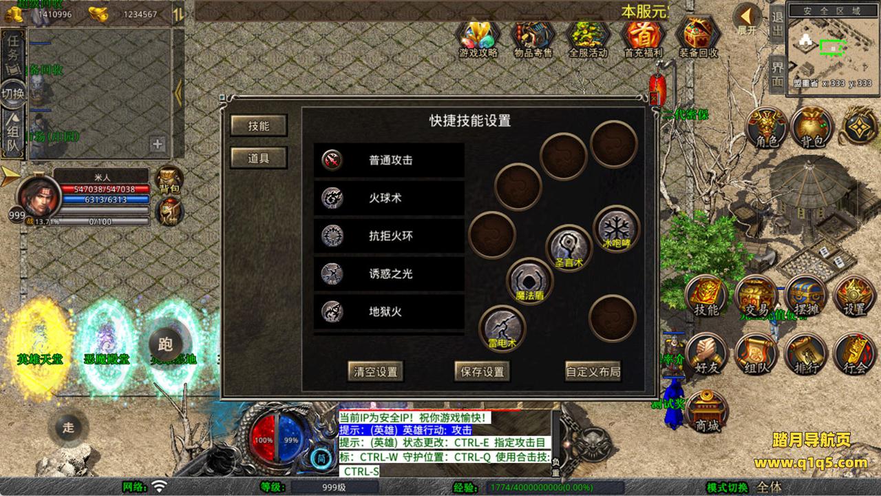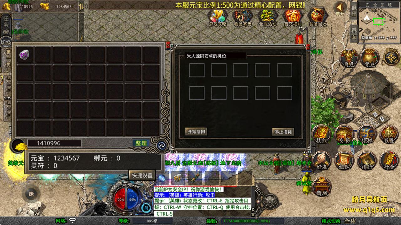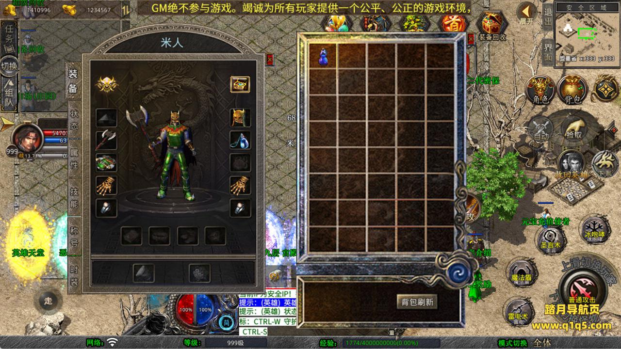 下面我们来测试下游戏里的功能看看。好了,其他功能就自行测试吧。更多的游戏资源可以访问www.q1q5.com下载,我们每款游戏资源均单独制作了独立的视频架设教程,让小白也可以快速上手游戏架设,快来体验自己做GM的乐趣吧!