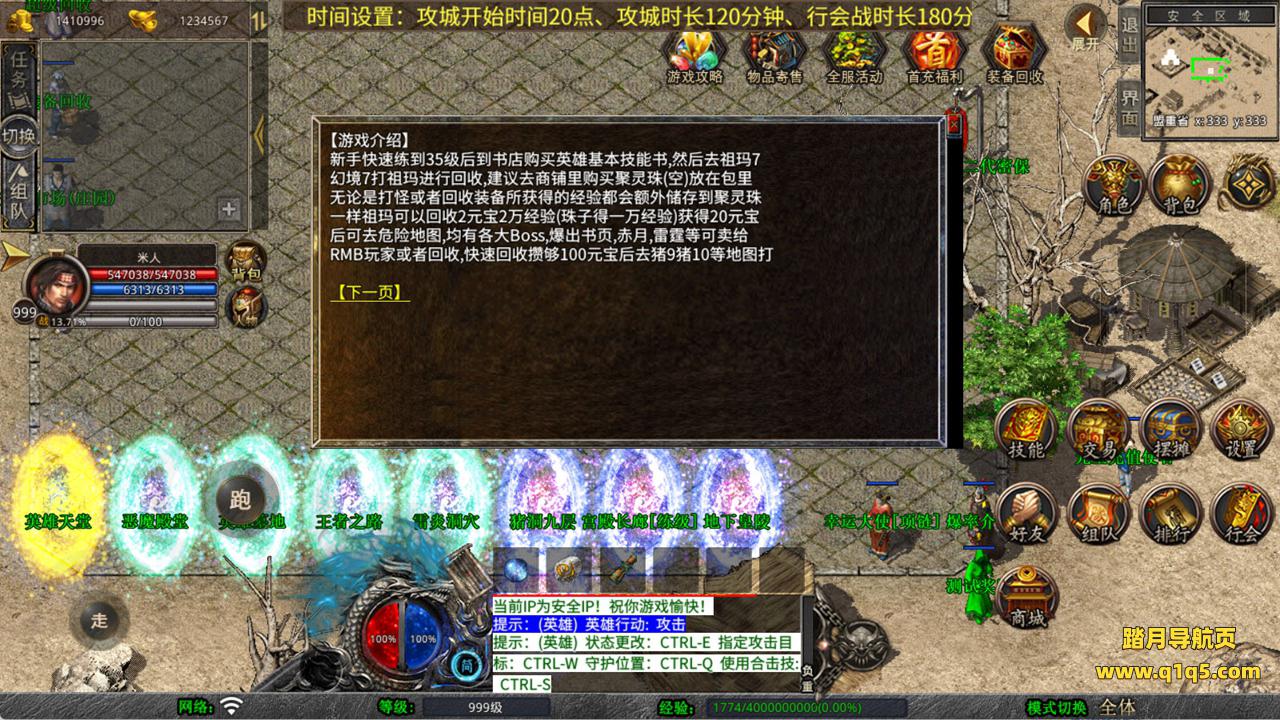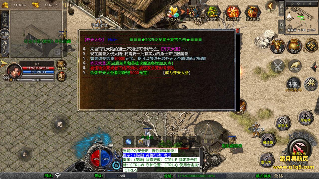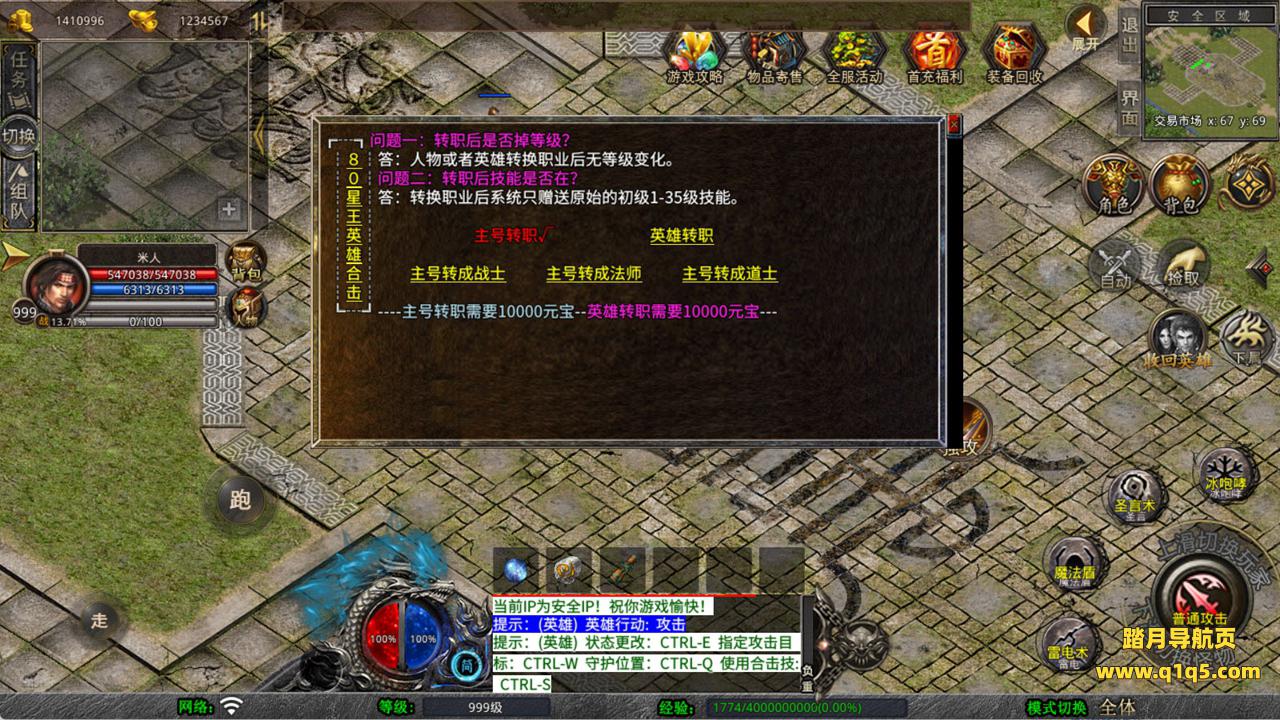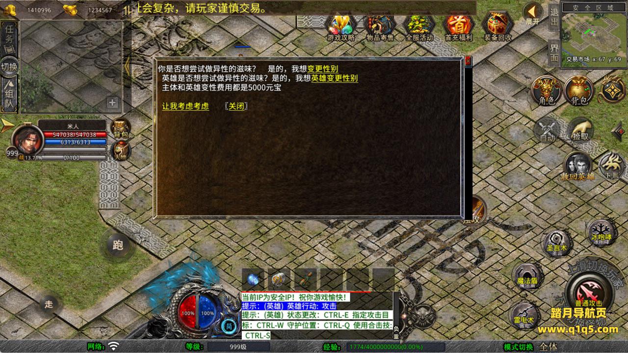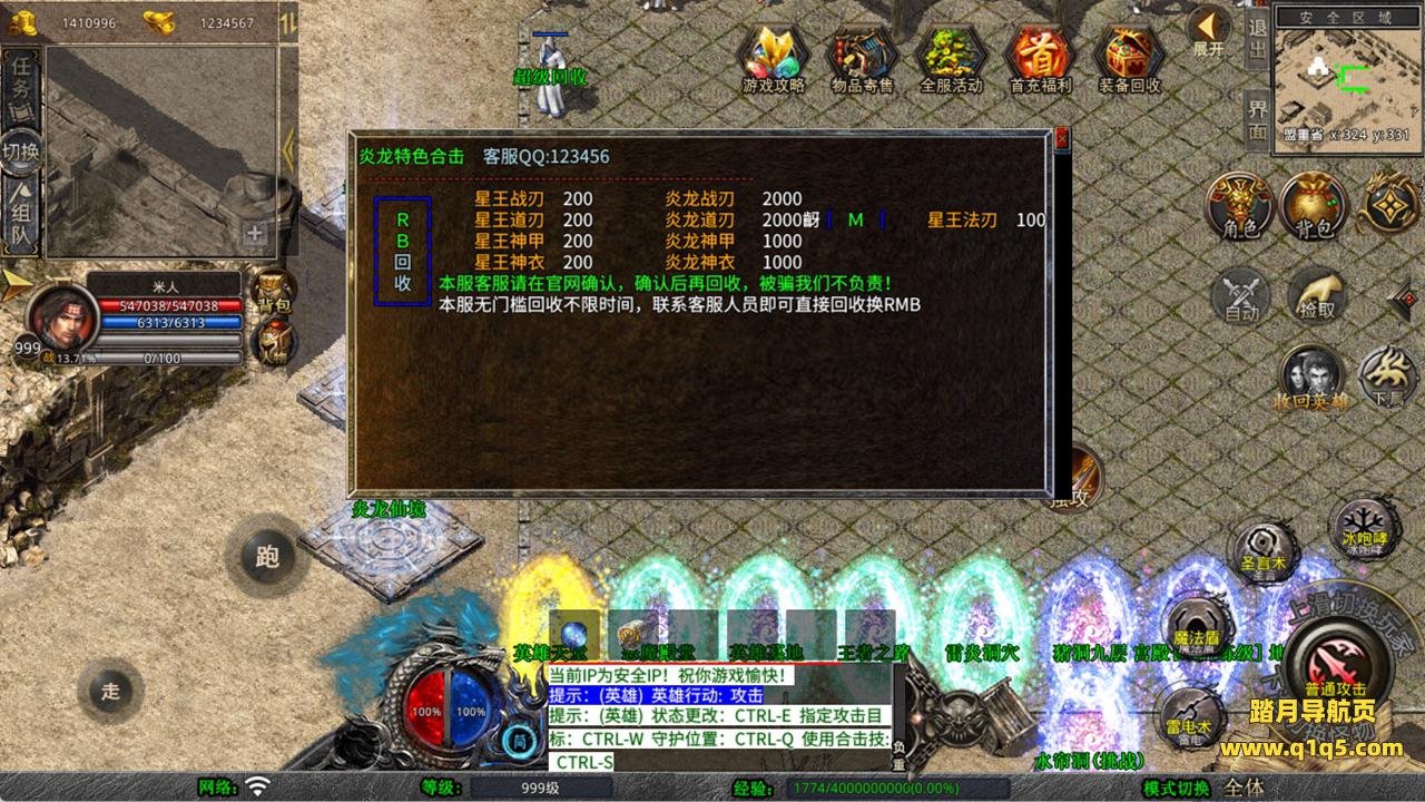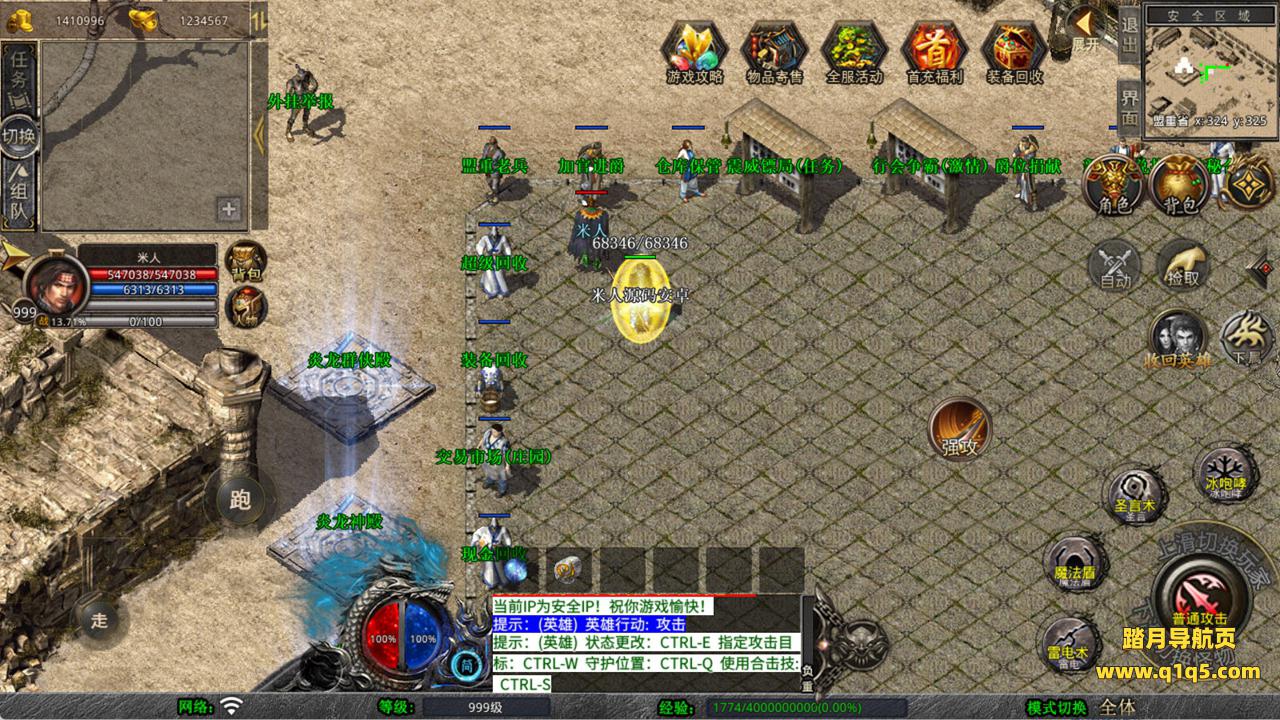 下面我们来测试下游戏里的功能看看。好了,其他功能就自行测试吧。更多的游戏资源可以访问www.q1q5.com下载,我们每款游戏资源均单独制作了独立的视频架设教程,让小白也可以快速上手游戏架设,快来体验自己做GM的乐趣吧!