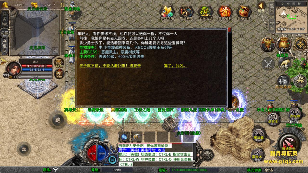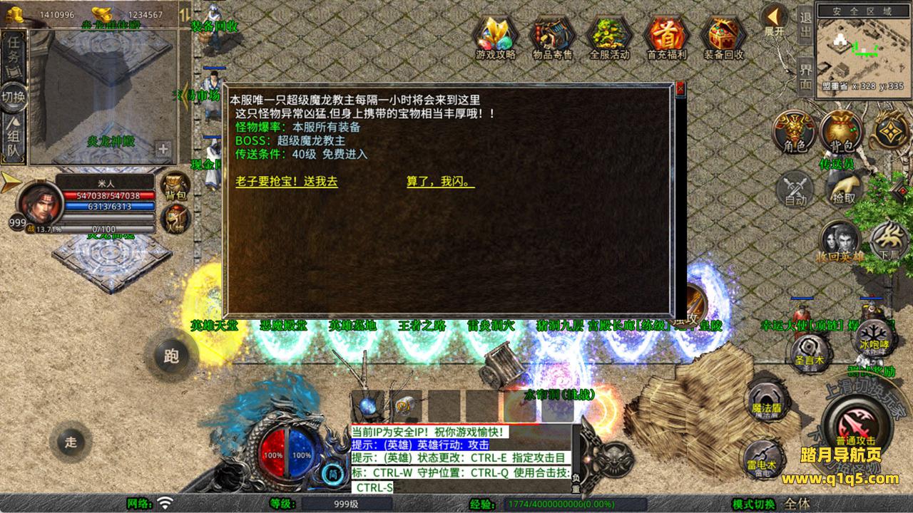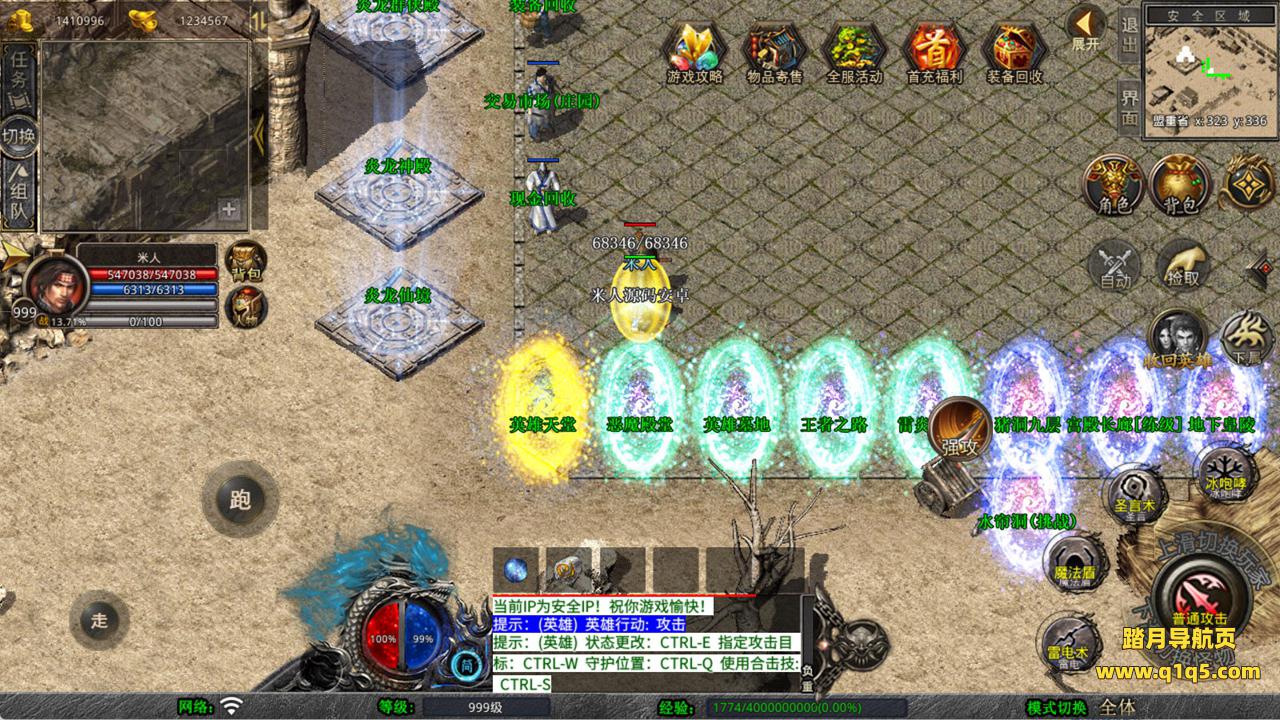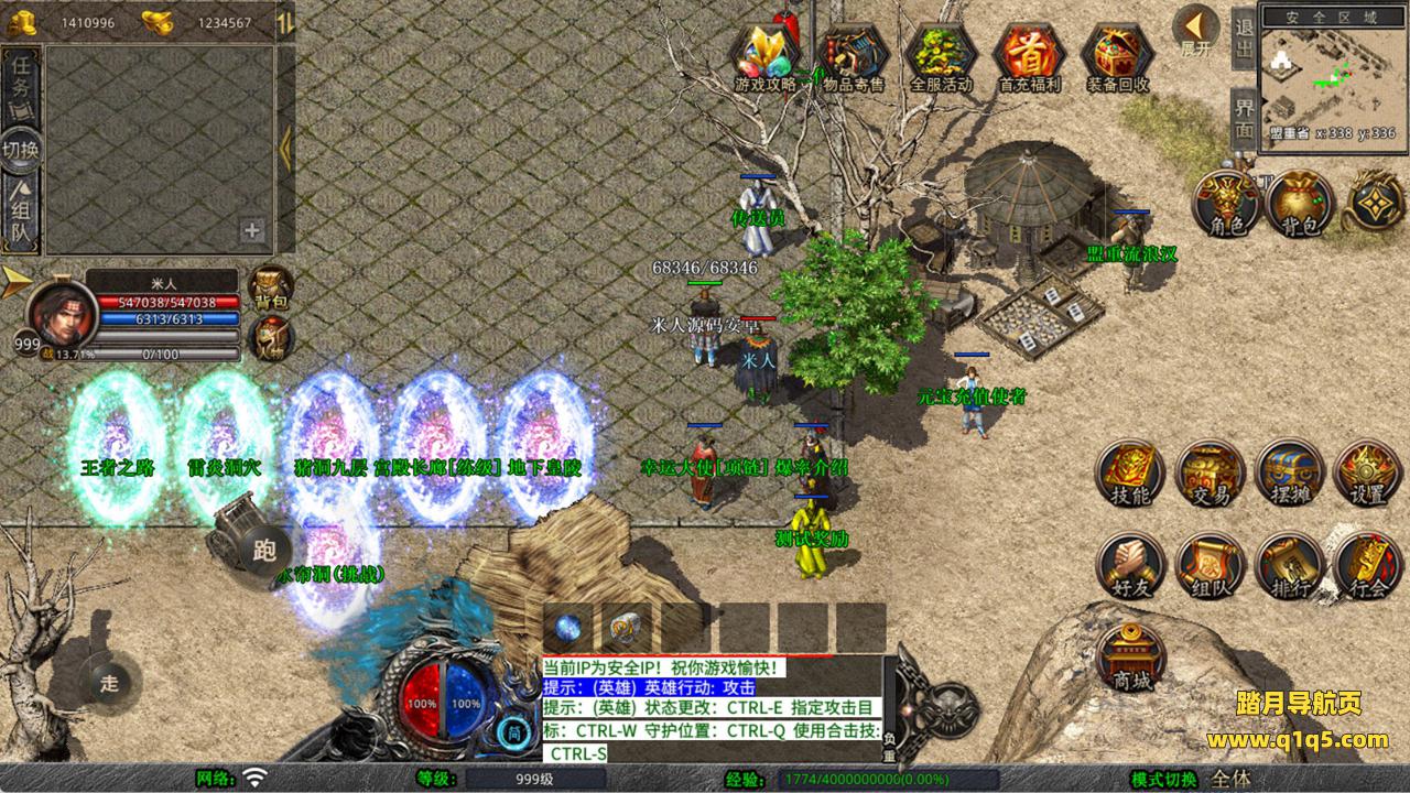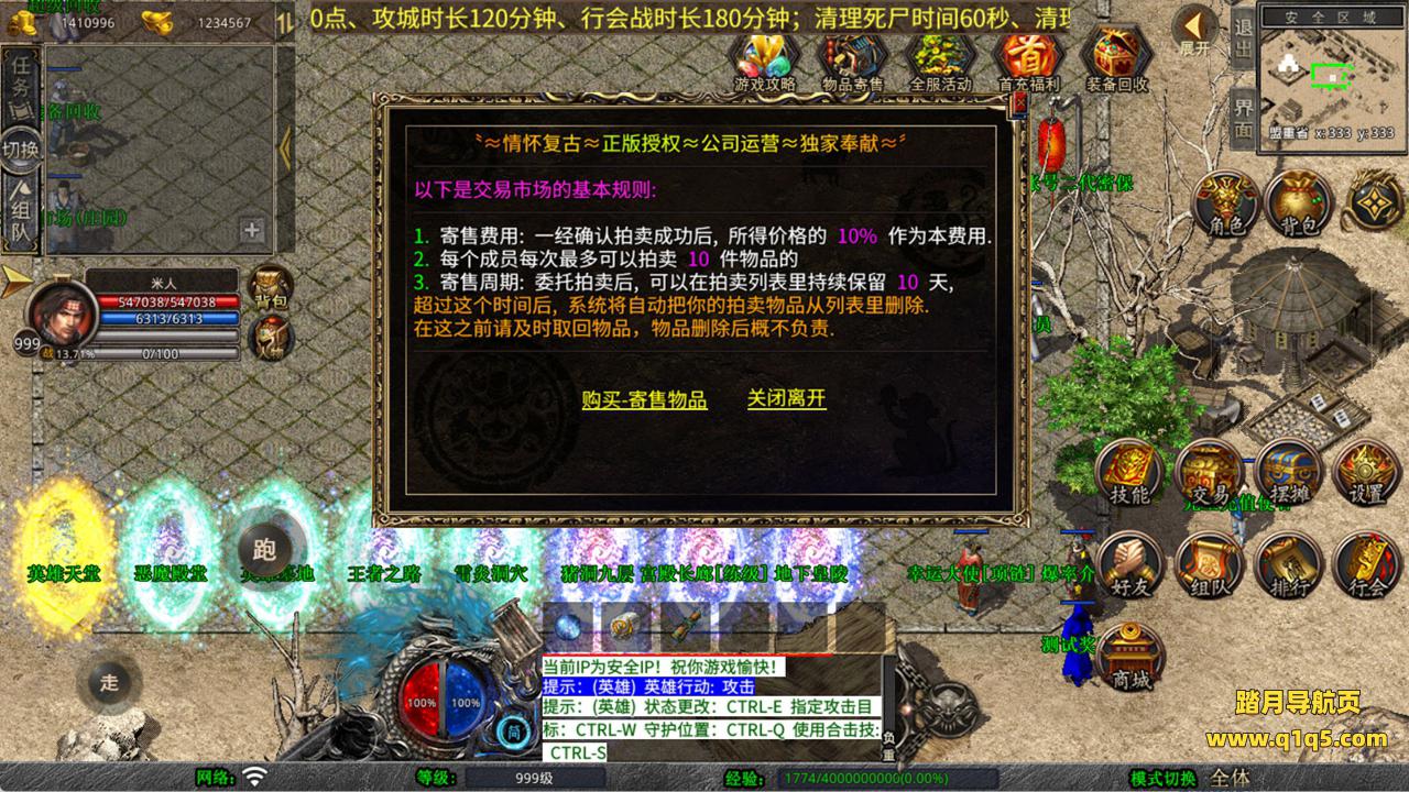下面我们来测试下游戏里的功能看看。好了,其他功能就自行测试吧。更多的游戏资源可以访问www.q1q5.com下载,我们每款游戏资源均单独制作了独立的视频架设教程,让小白也可以快速上手游戏架设,快来体验自己做GM的乐趣吧!
