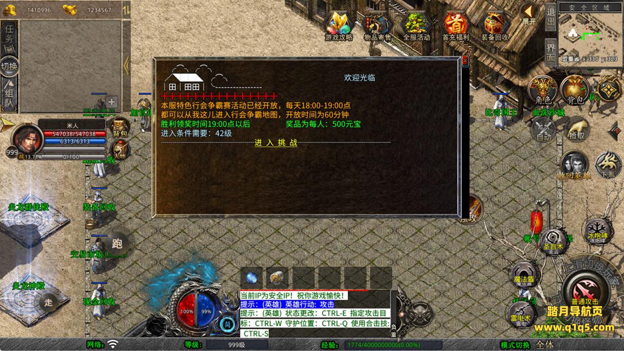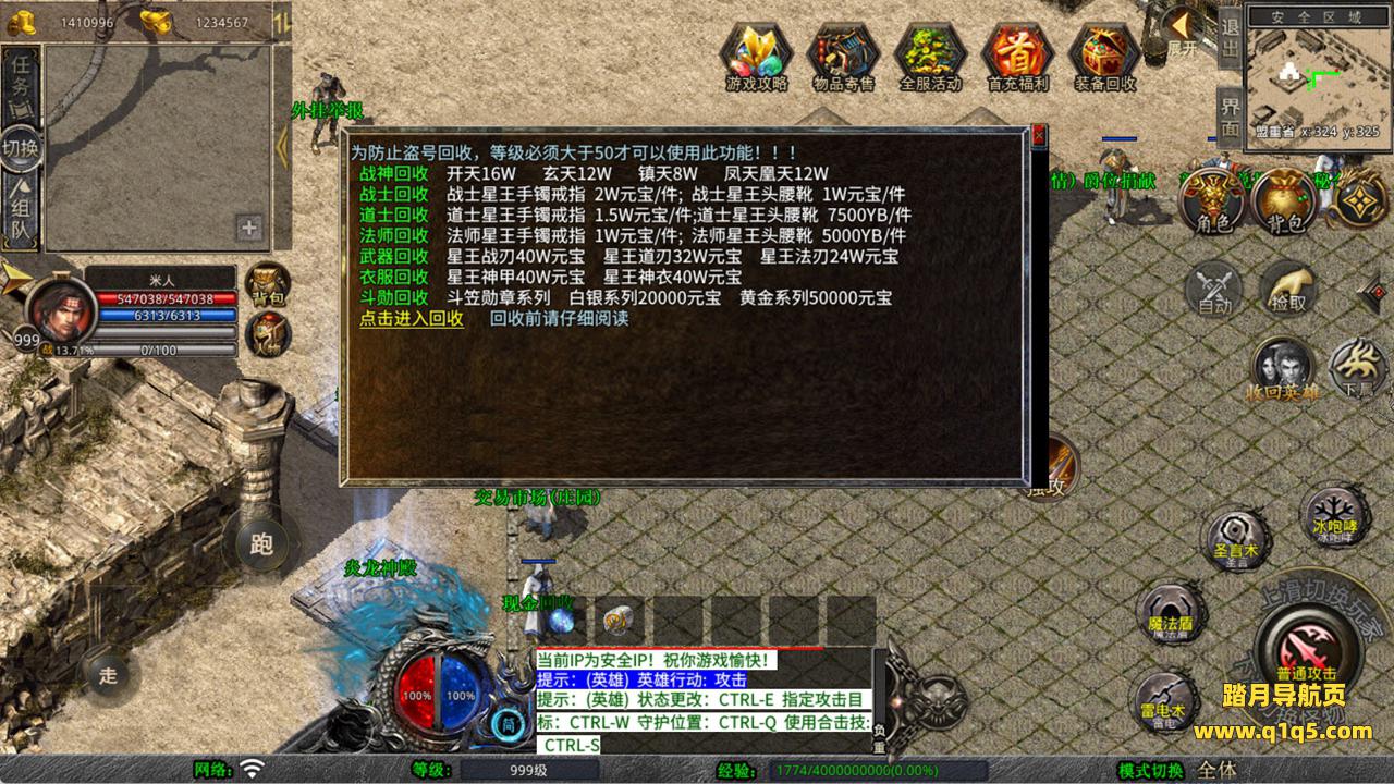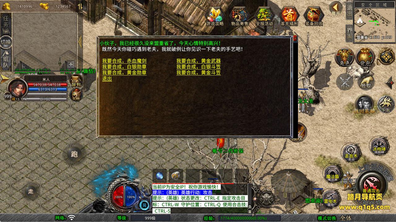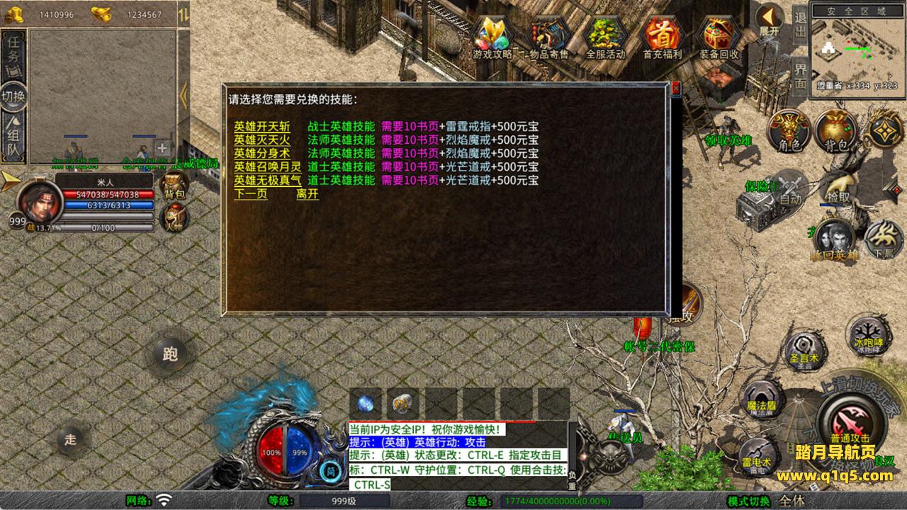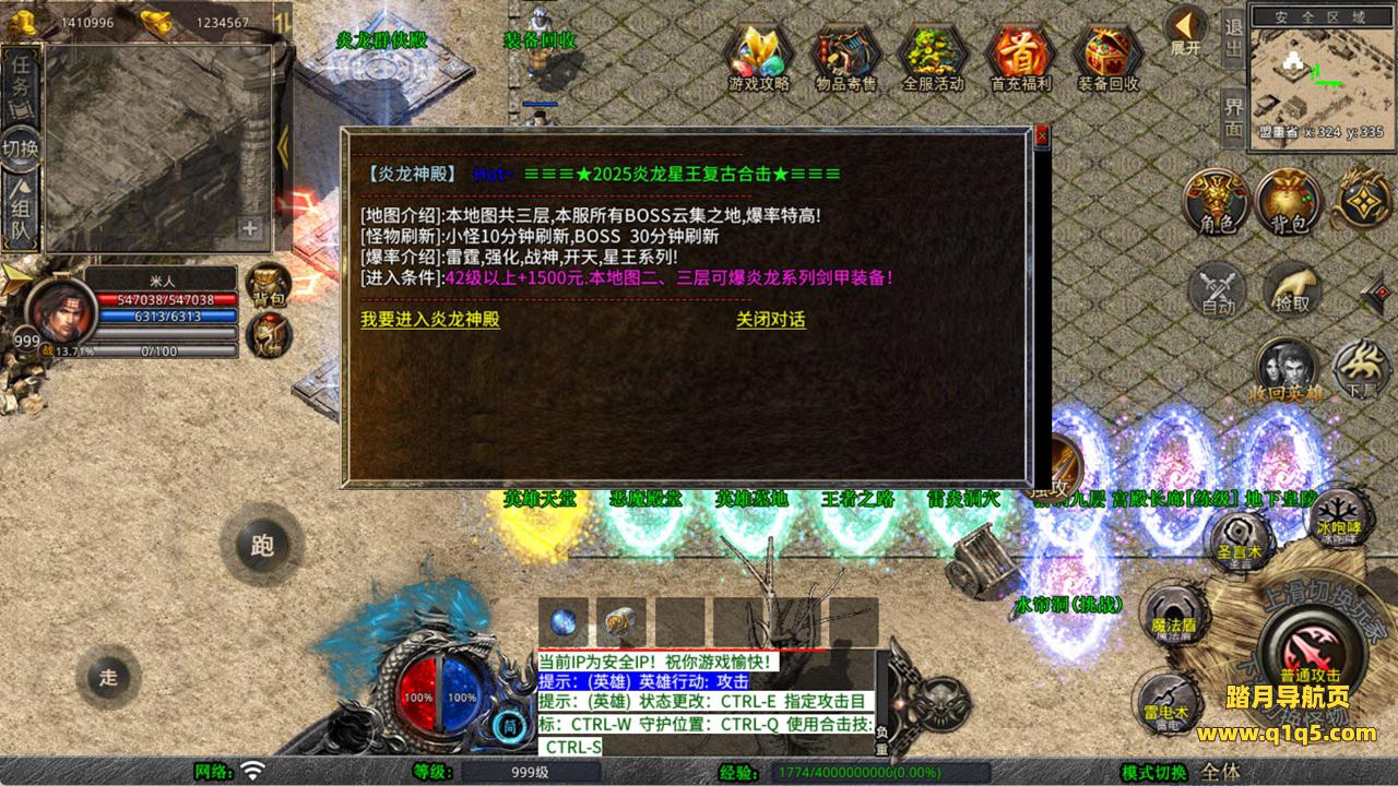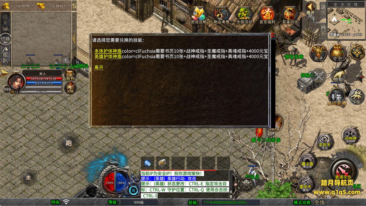下面我们来测试下游戏里的功能看看。好了,其他功能就自行测试吧。更多的游戏资源可以访问www.q1q5.com下载,我们每款游戏资源均单独制作了独立的视频架设教程,让小白也可以快速上手游戏架设,快来体验自己做GM的乐趣吧!