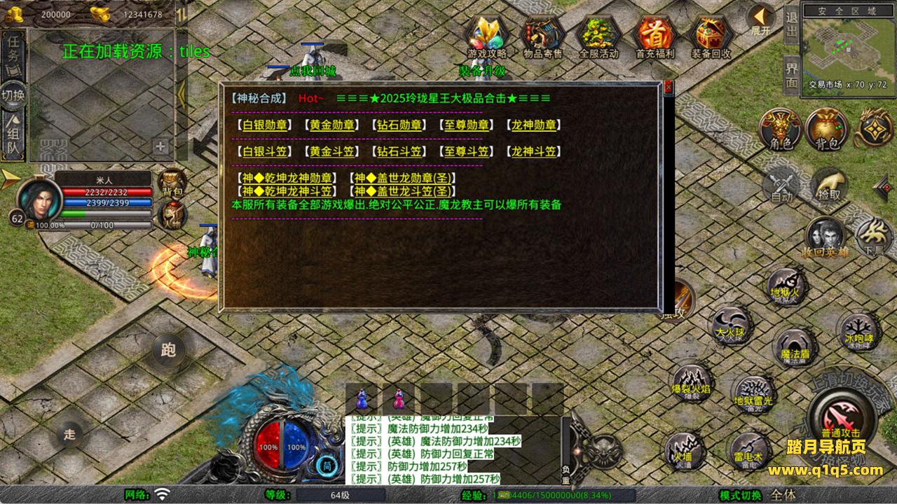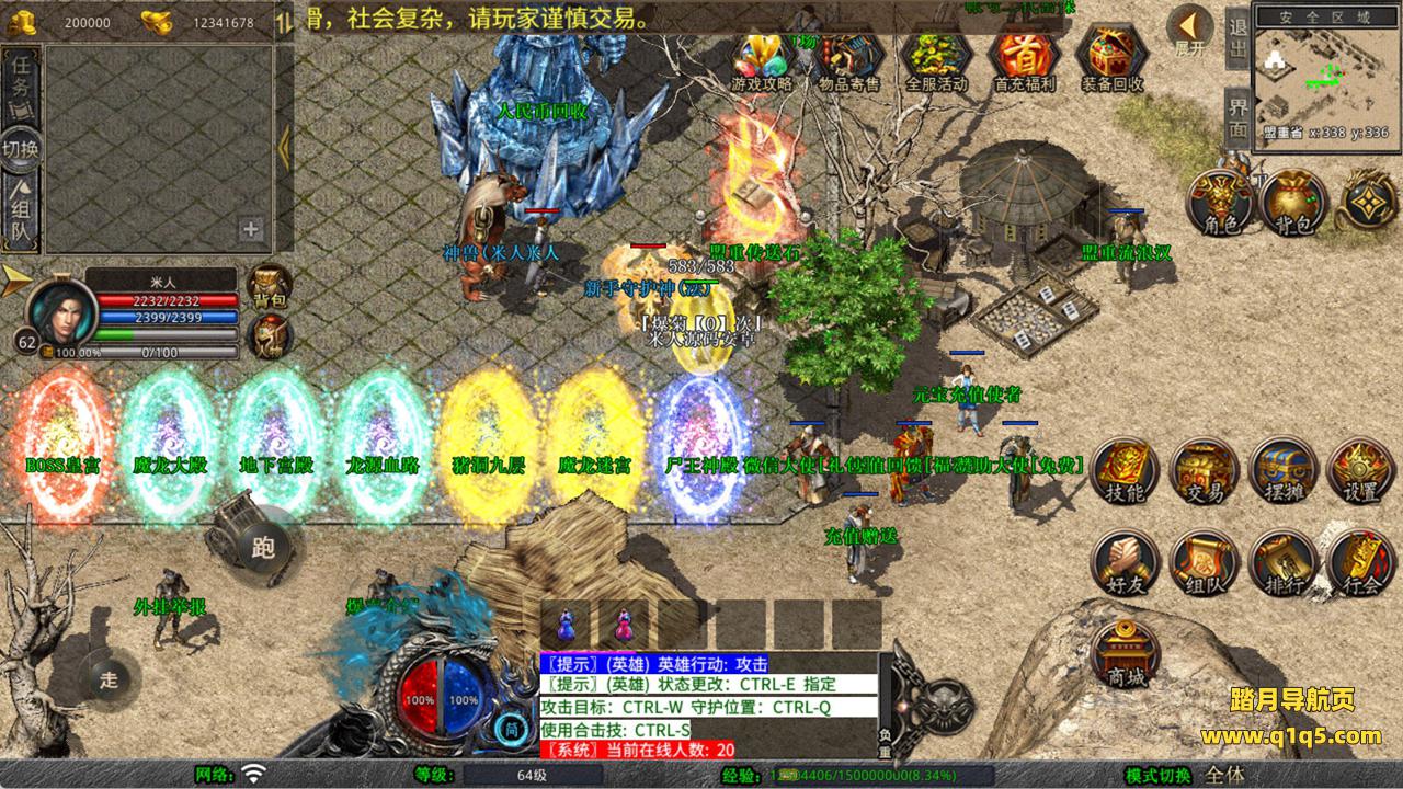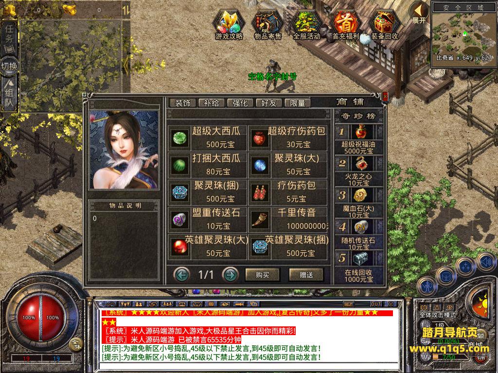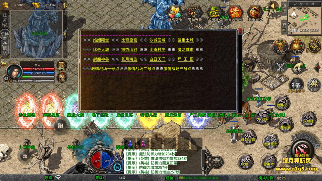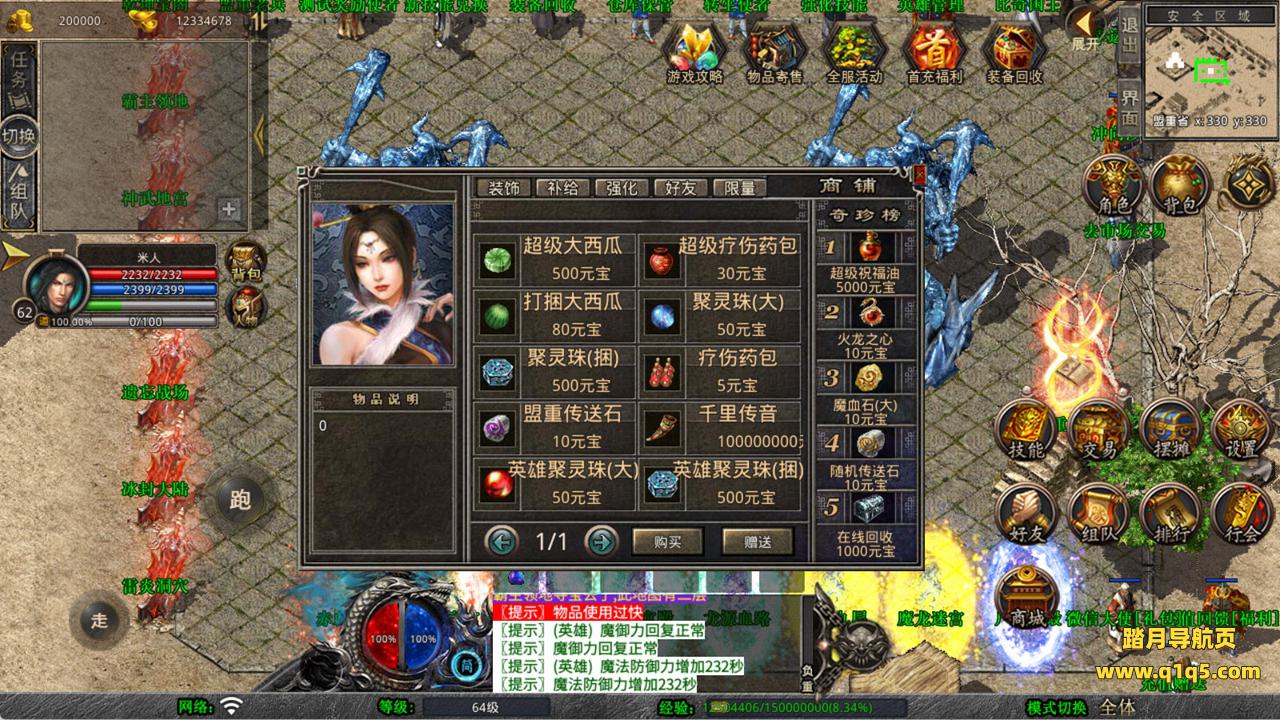 下面我们来测试下游戏里的功能看看。好了,其他功能就自行测试吧。更多的游戏资源可以访问www.q1q5.com下载,我们每款游戏资源均单独制作了独立的视频架设教程,让小白也可以快速上手游戏架设,快来体验自己做GM的乐趣吧!