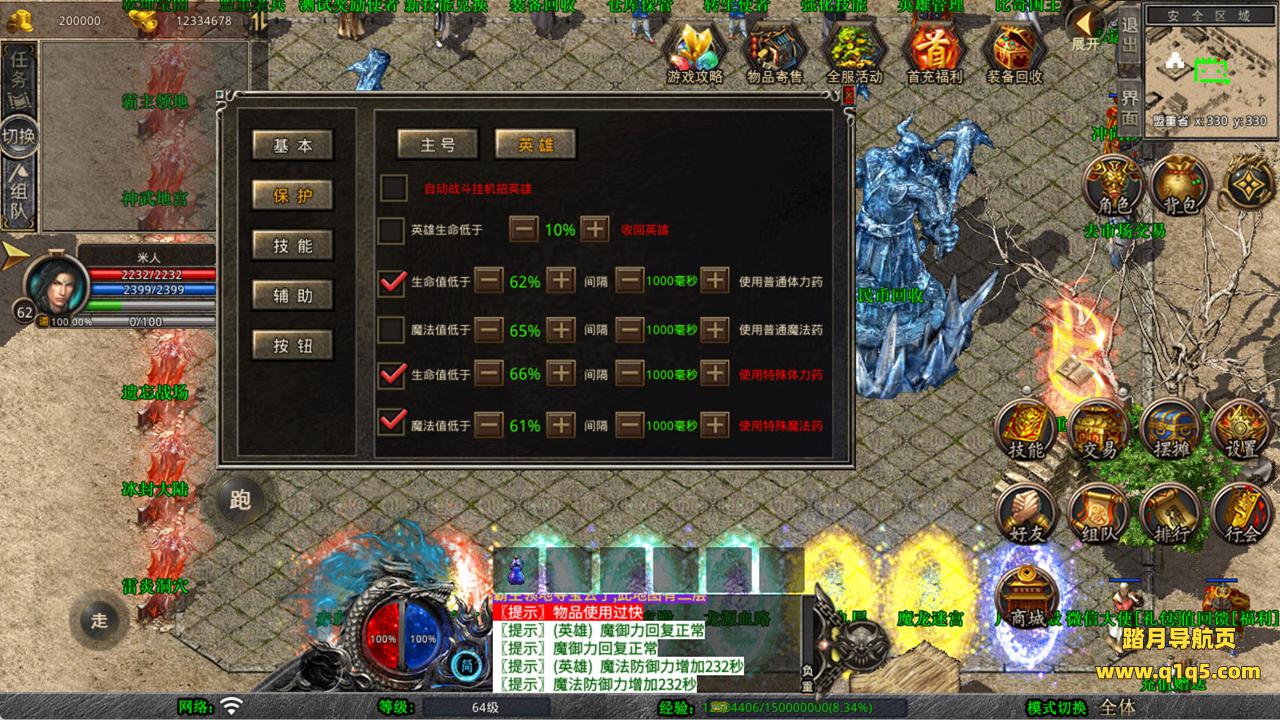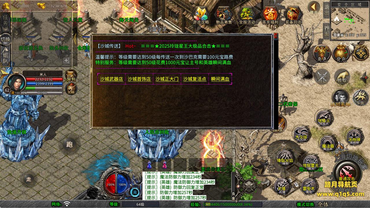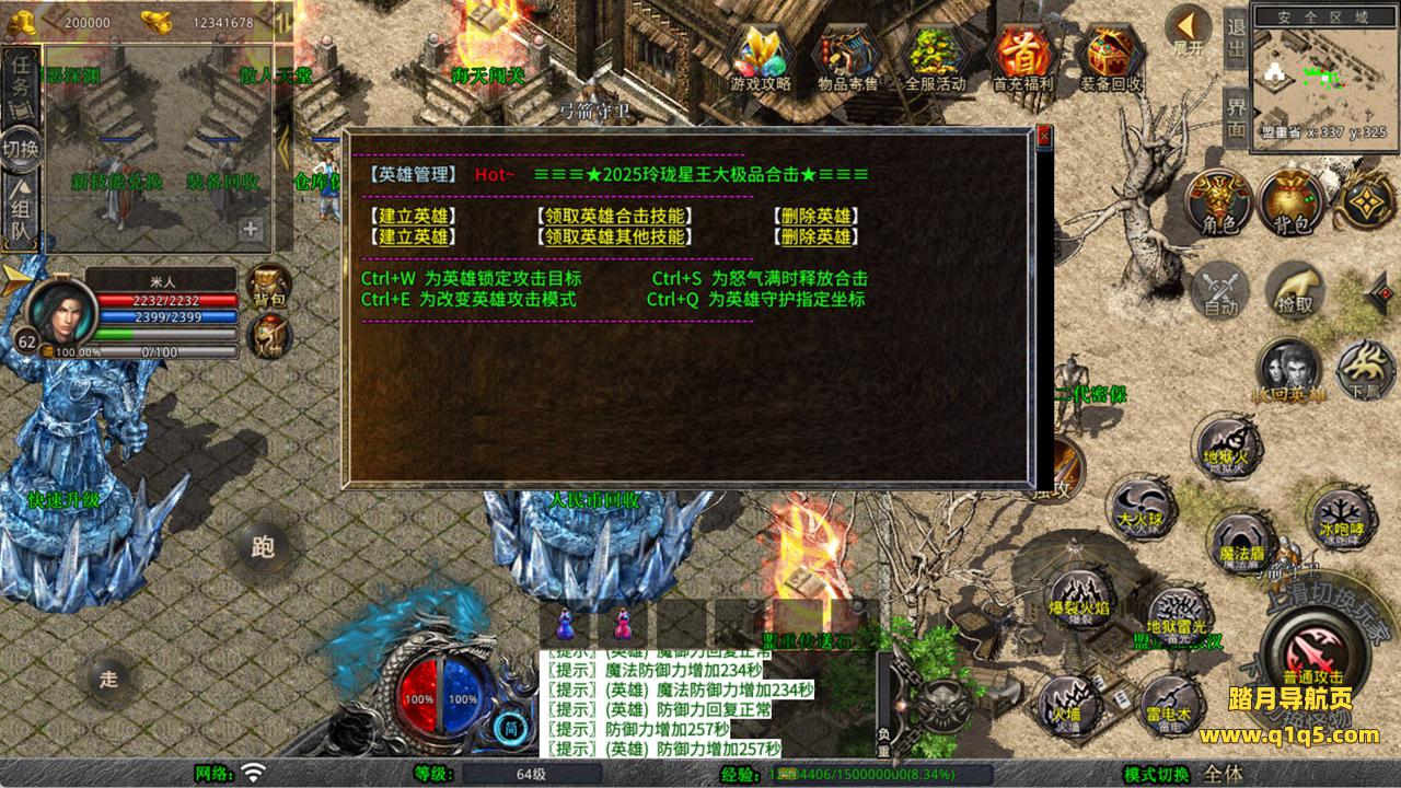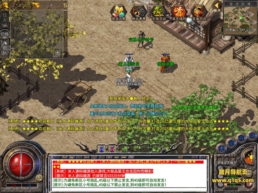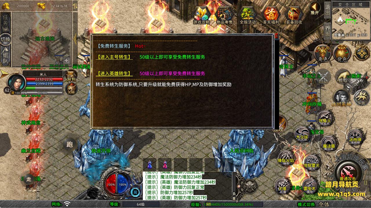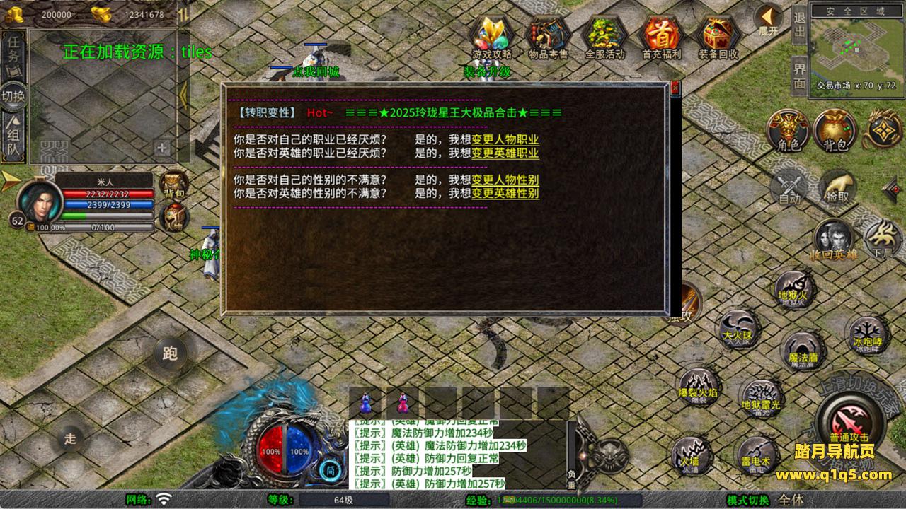 下面我们来测试下游戏里的功能看看。好了,其他功能就自行测试吧。更多的游戏资源可以访问www.q1q5.com下载,我们每款游戏资源均单独制作了独立的视频架设教程,让小白也可以快速上手游戏架设,快来体验自己做GM的乐趣吧!