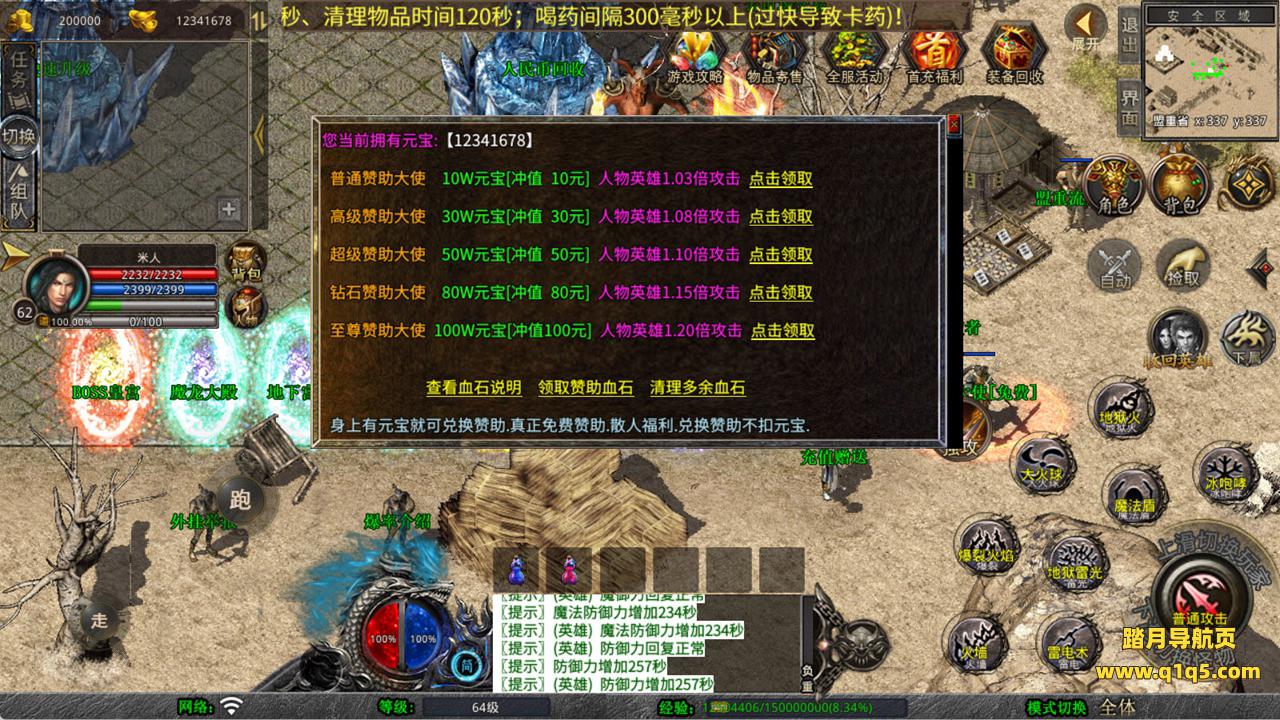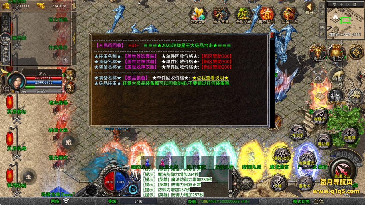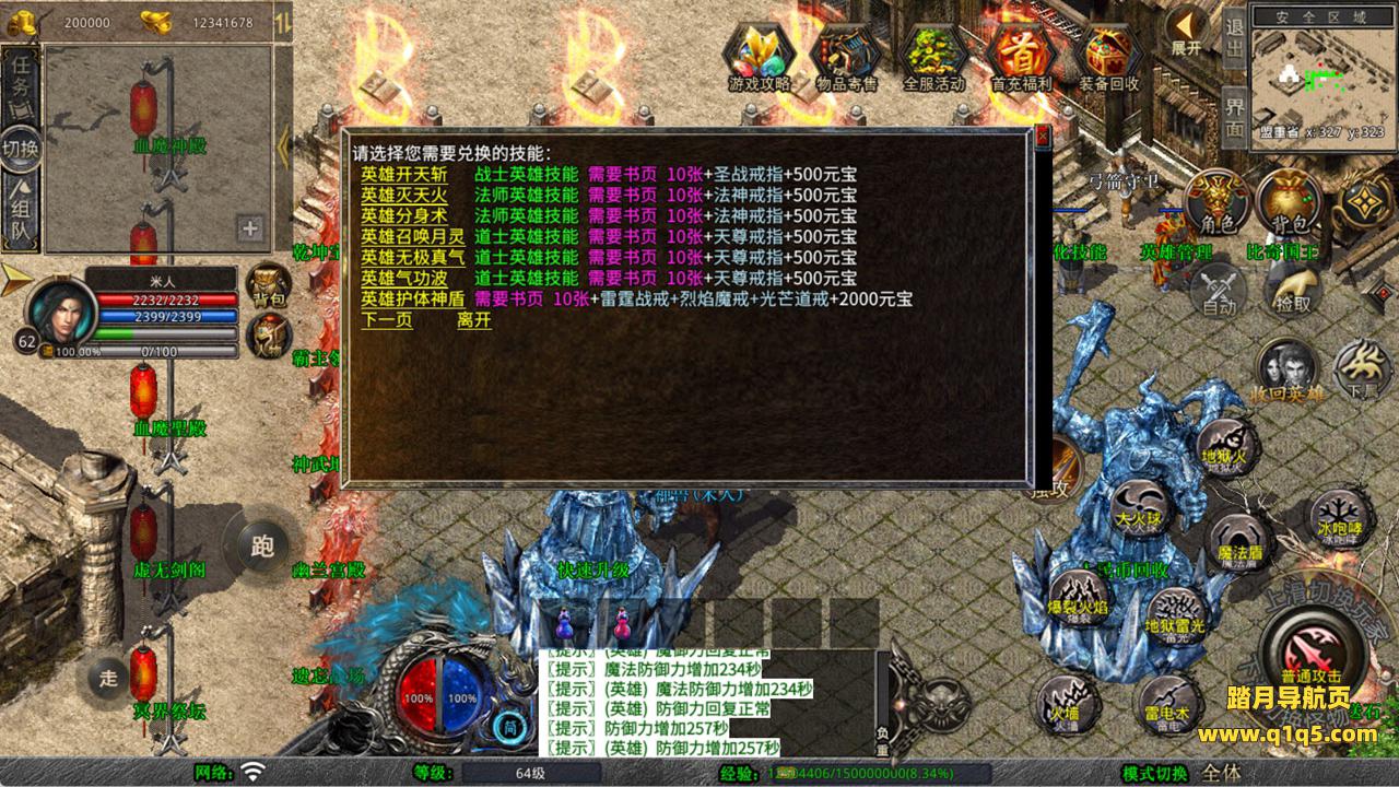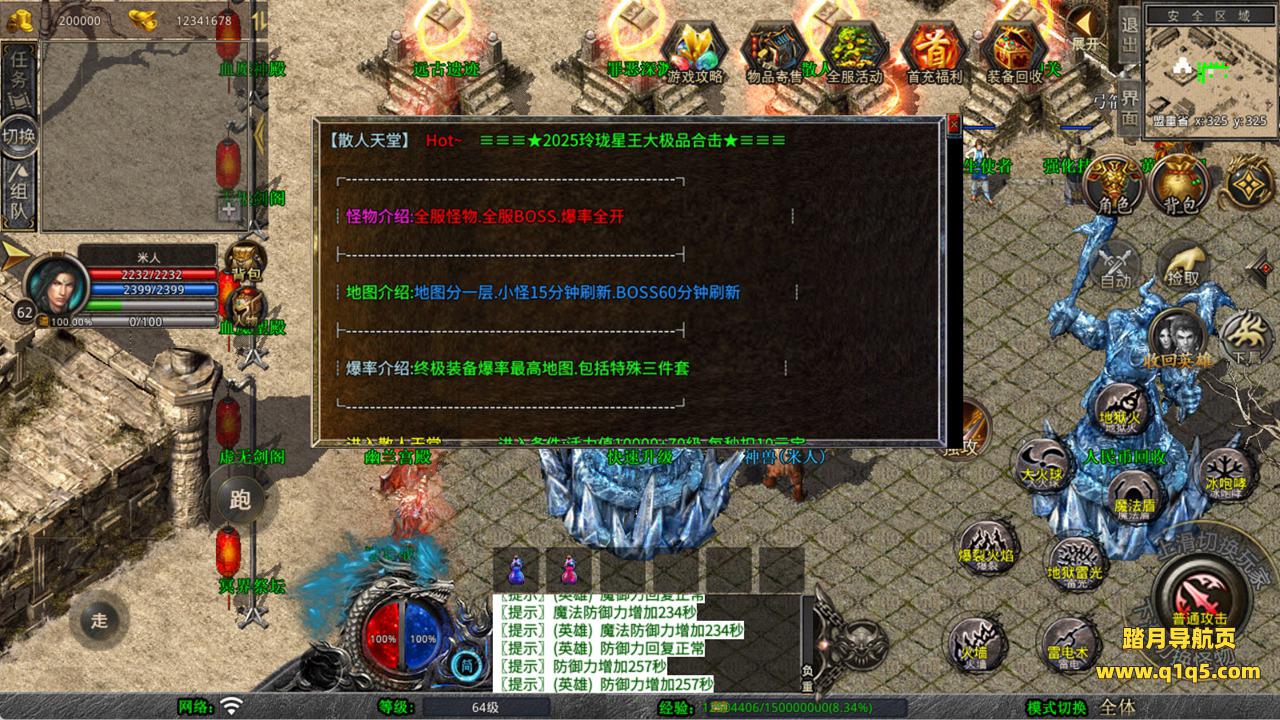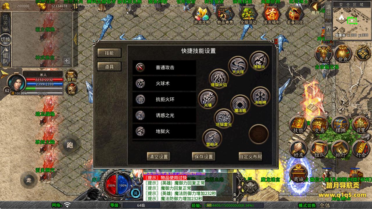 下面我们来测试下游戏里的功能看看。好了,其他功能就自行测试吧。更多的游戏资源可以访问www.q1q5.com下载,我们每款游戏资源均单独制作了独立的视频架设教程,让小白也可以快速上手游戏架设,快来体验自己做GM的乐趣吧!